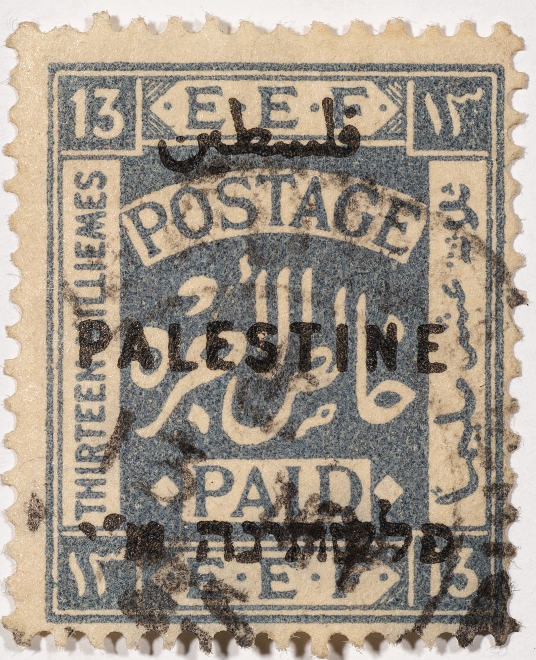 A postage stamp used in Palestine during the British Mandate
