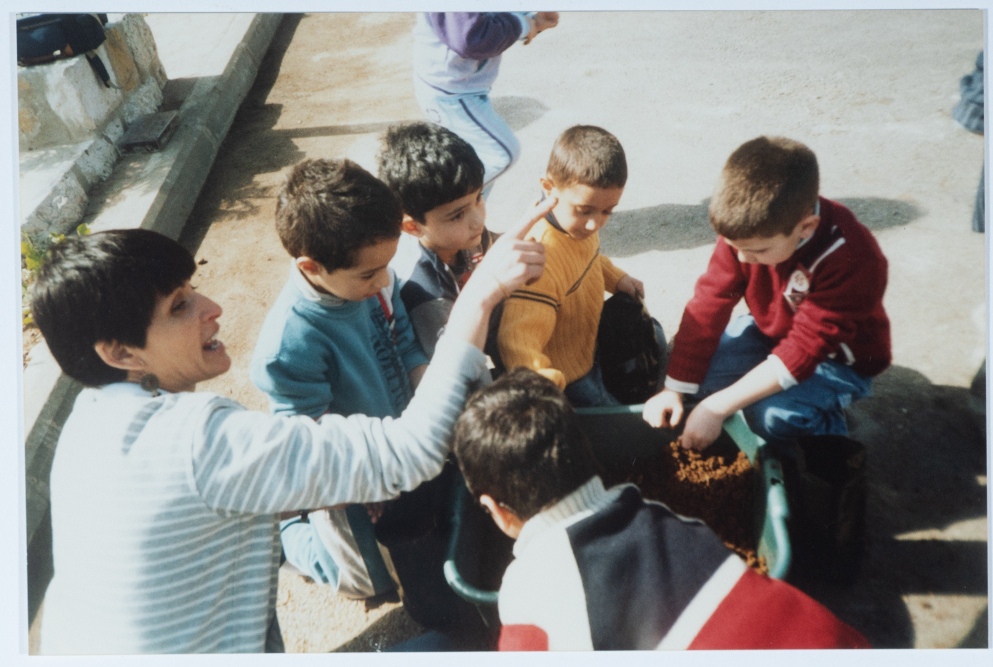 صورة ملونة يظهر فيها مجموعة أطفال في حديقة القيقب التابعة لمدارس الفرندز، وُجِدت الصورة في مجموعة مدرسة الفرندز.