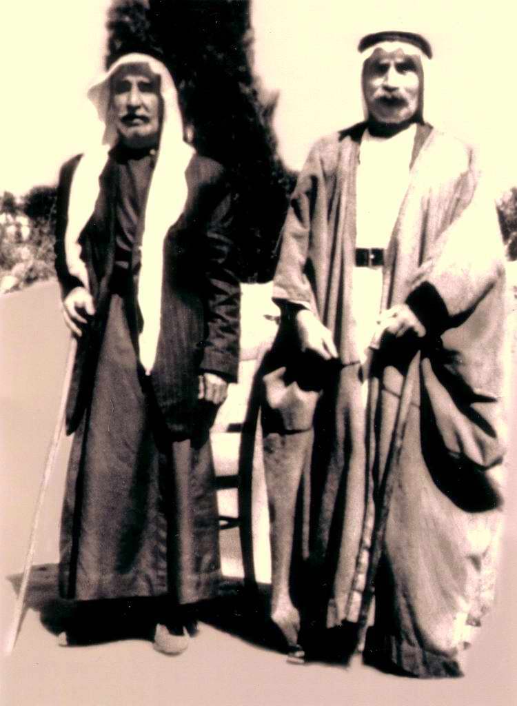 A black-and-white photograph that shows, from right to left, Ibrahim al-Ahmad Kana'na and Abu al-'Abd Musa Isma'il.