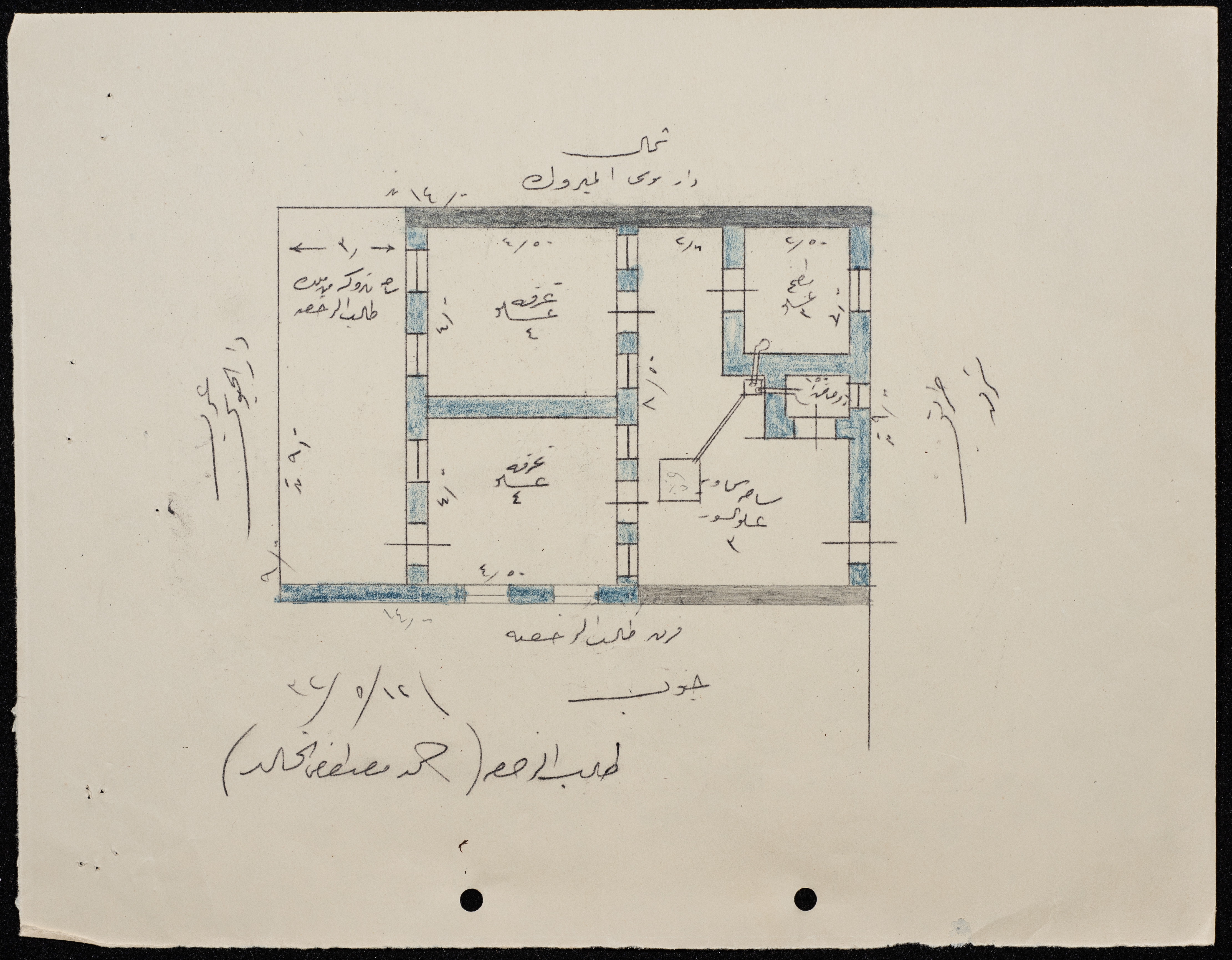A sketch of a construction plan for Mahmoud Haj Qassem confiscated by the Municipality of Tulkarm in 1941