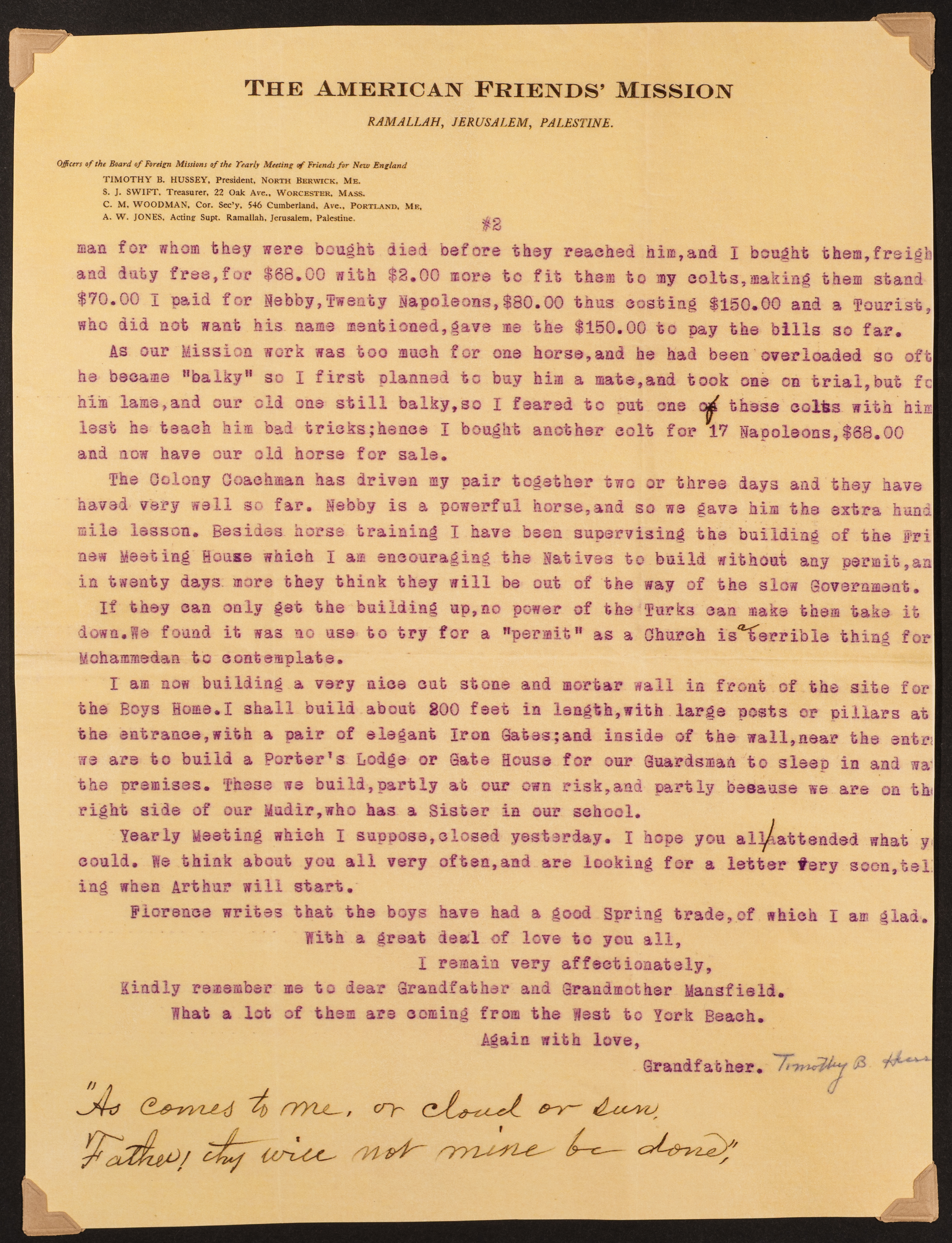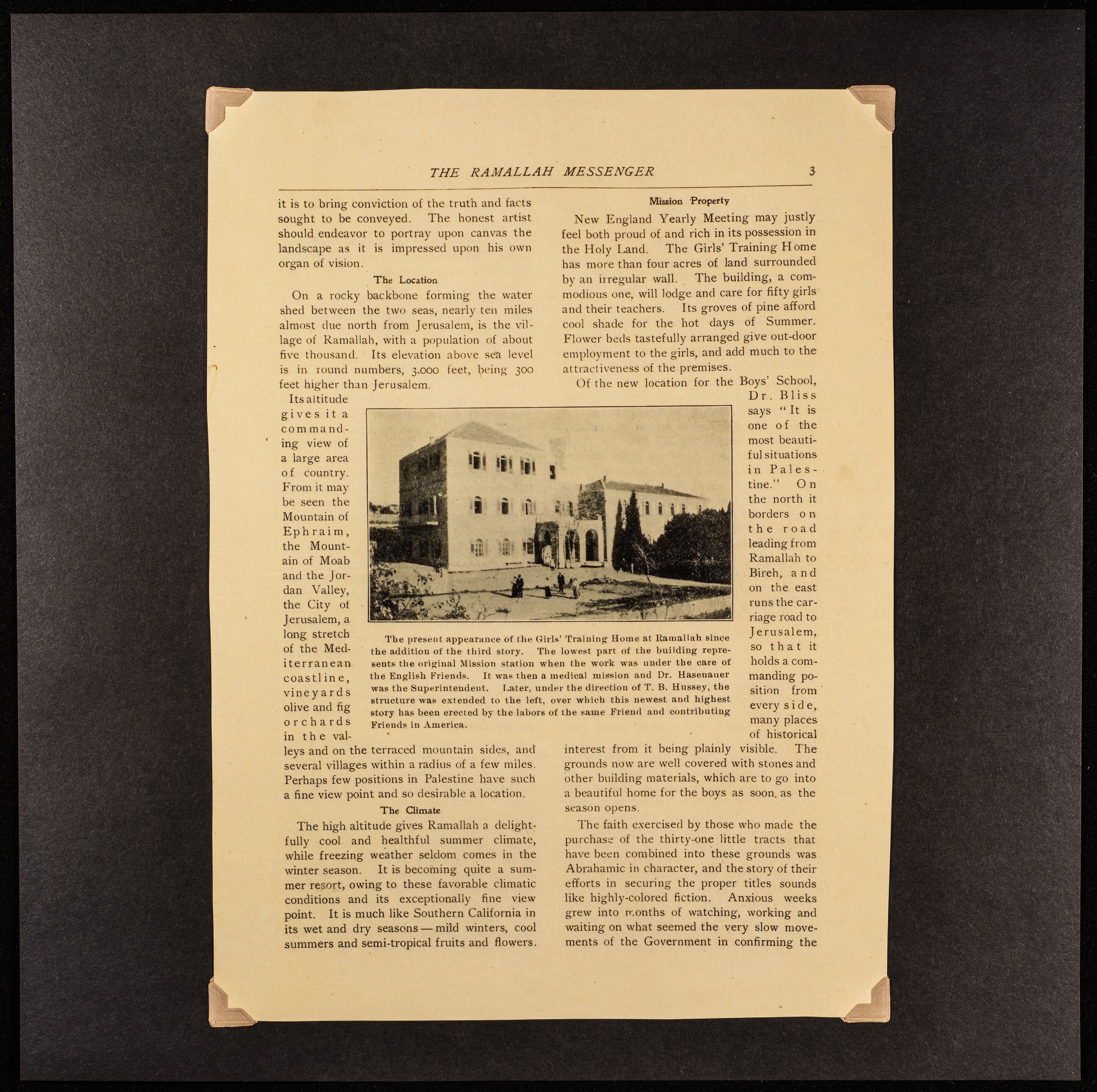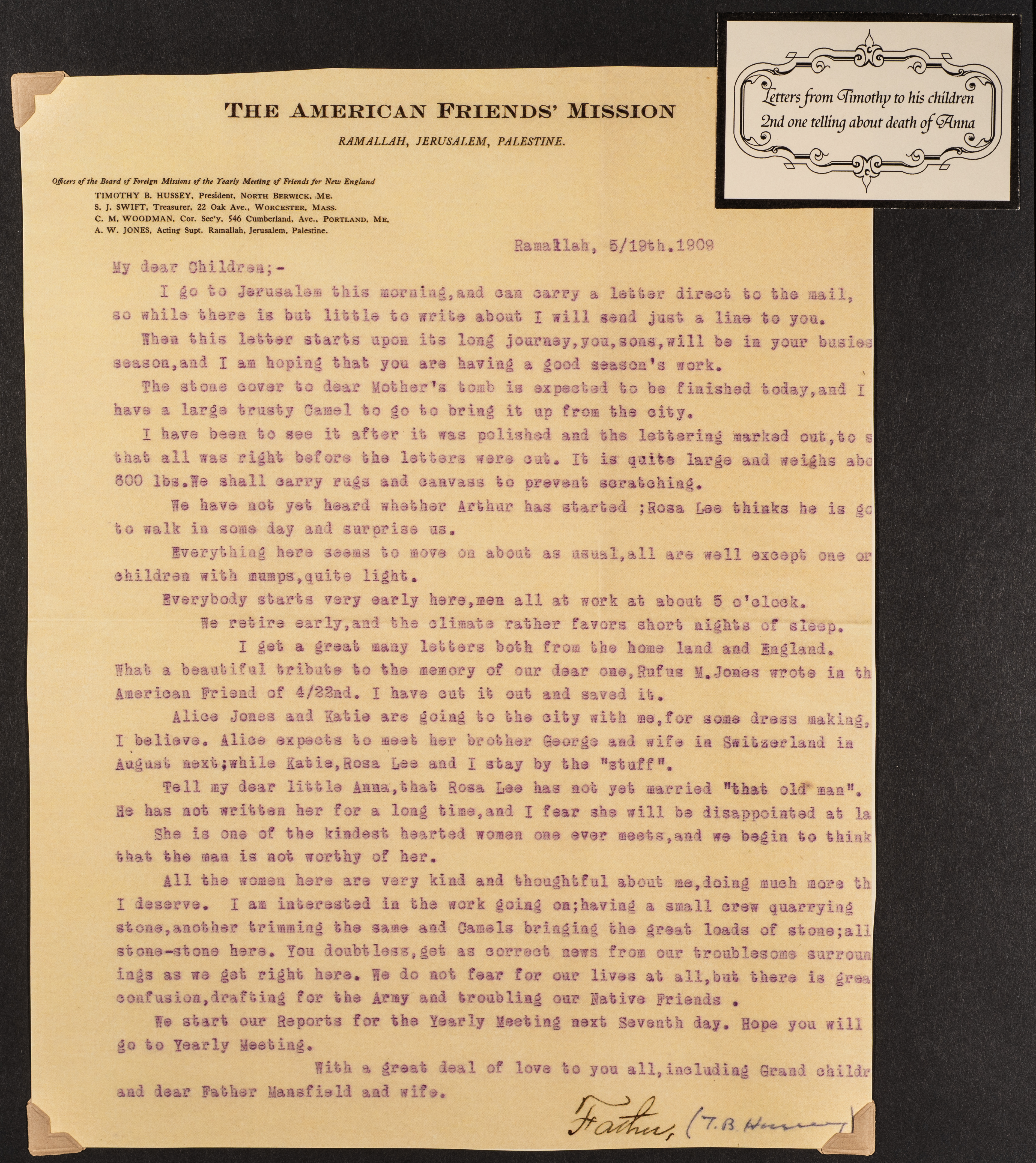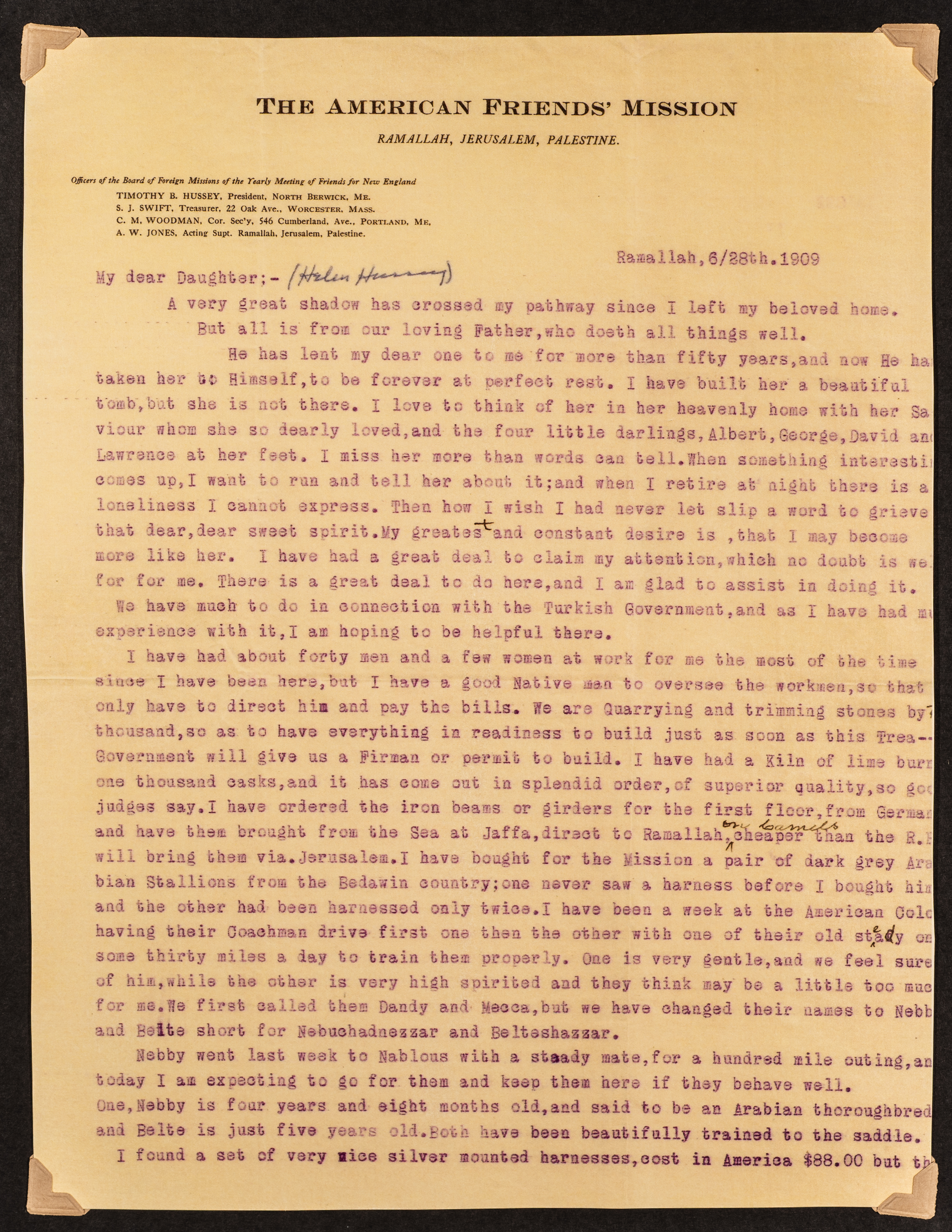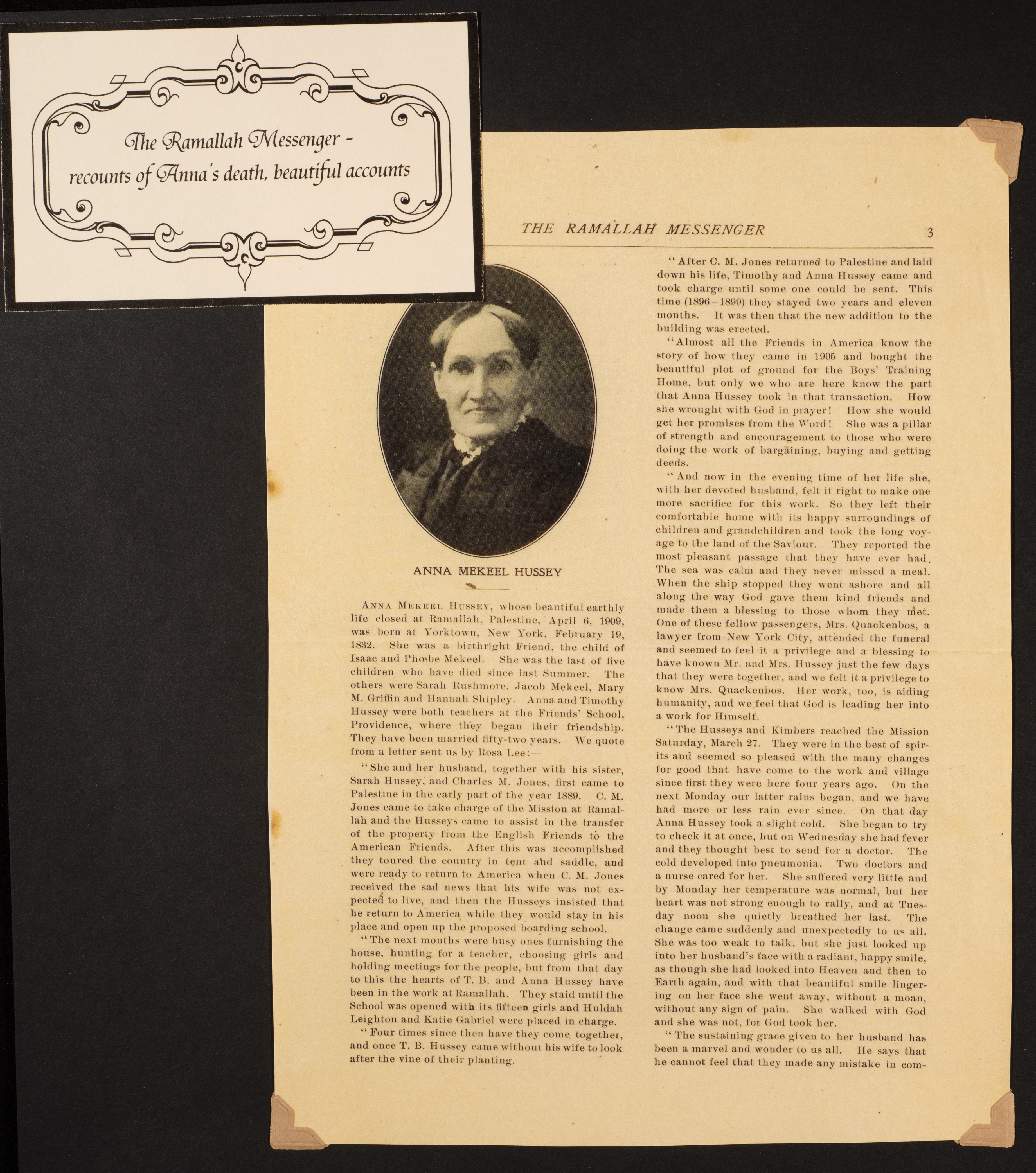 A collection that tells the story of Timothy and Anna Hessie with the Friends School in Ramallah