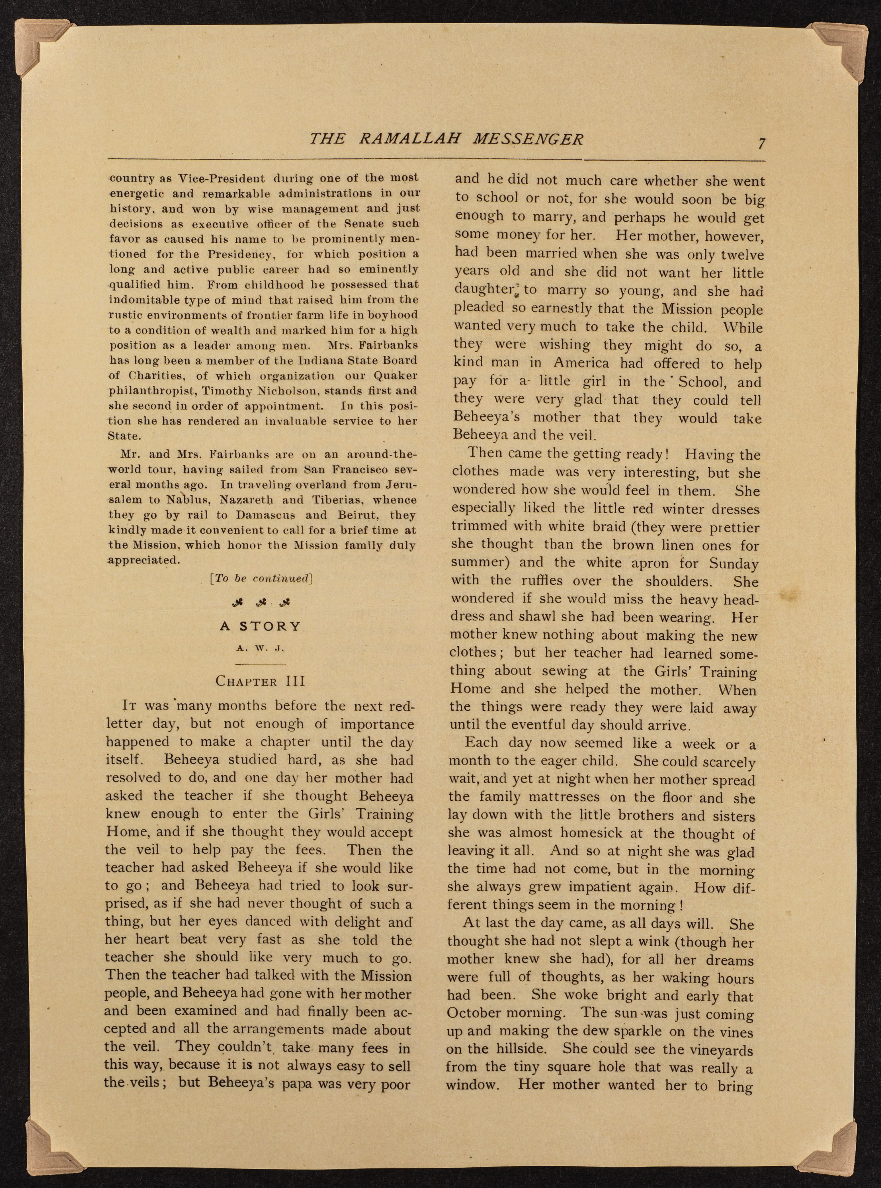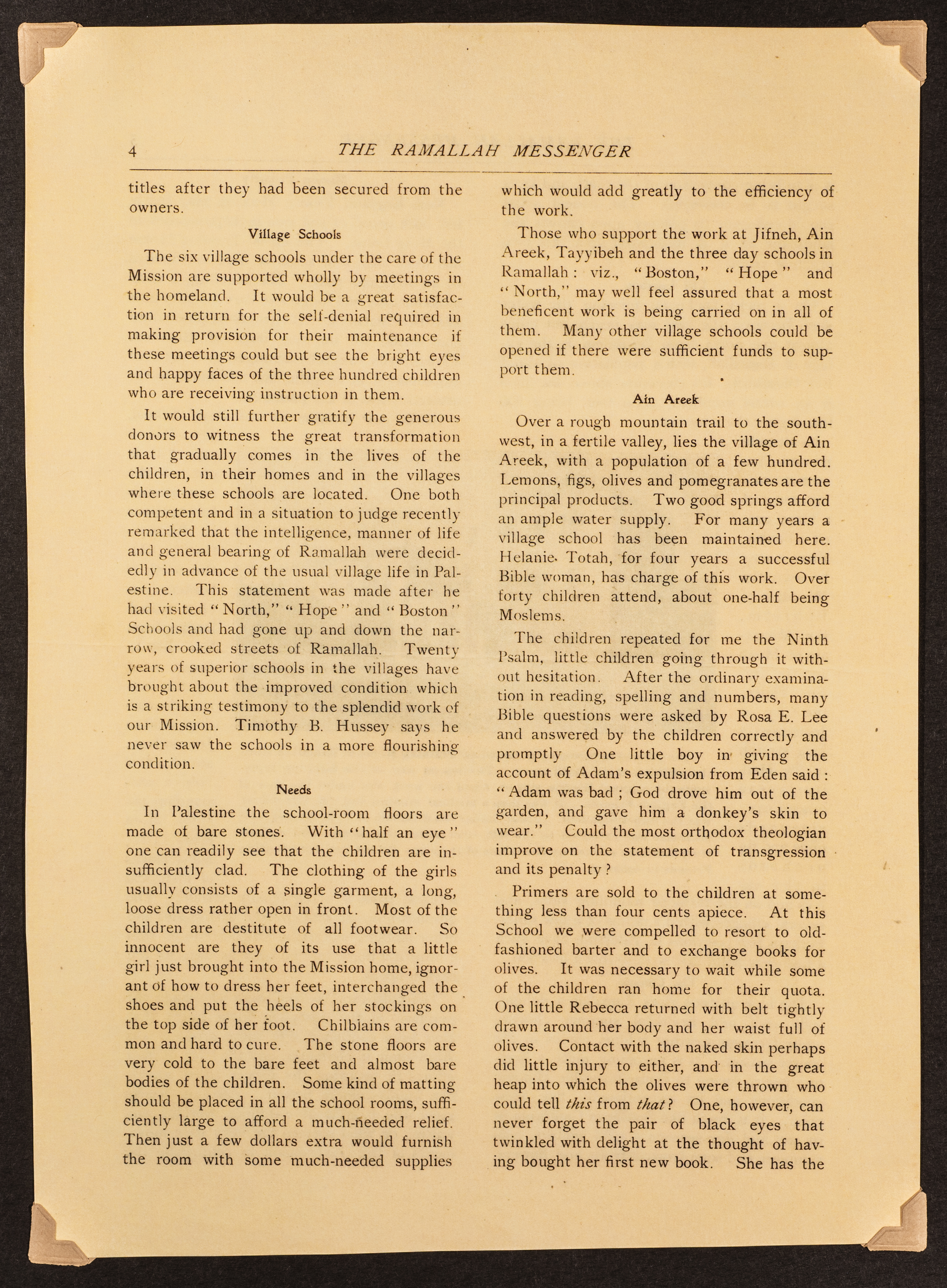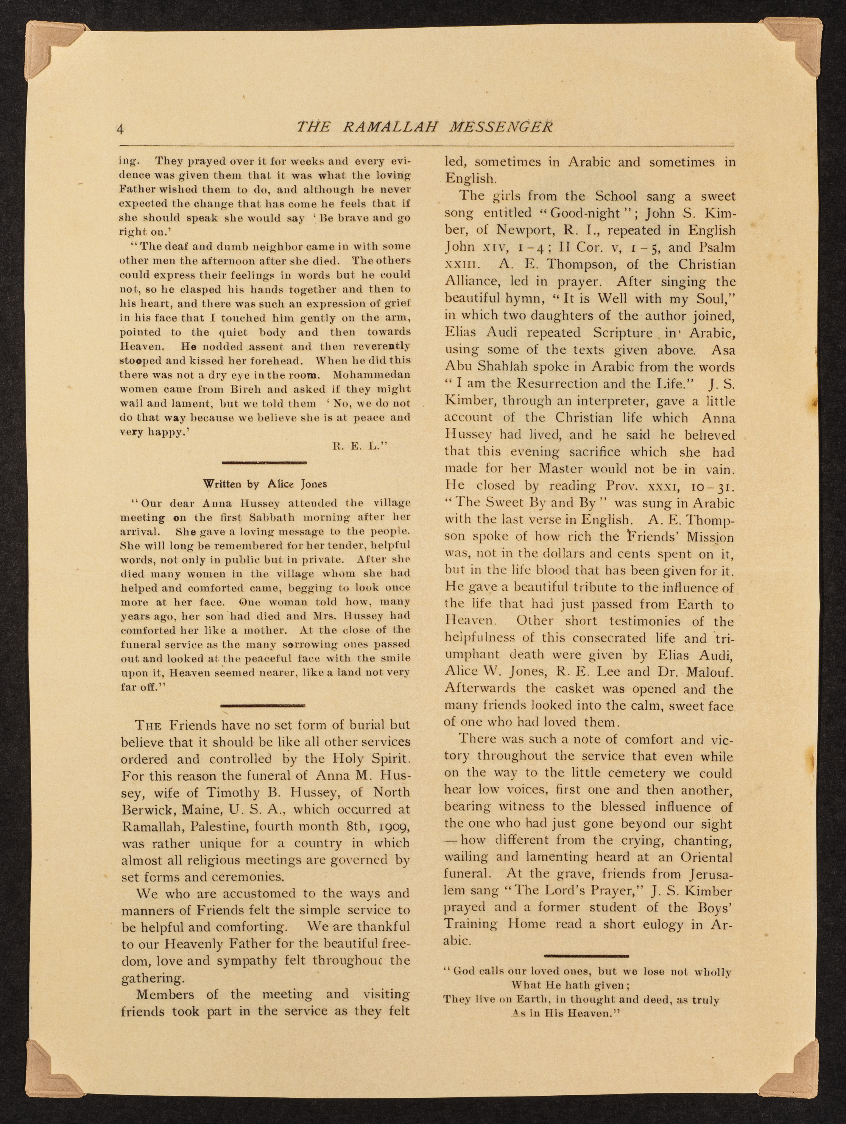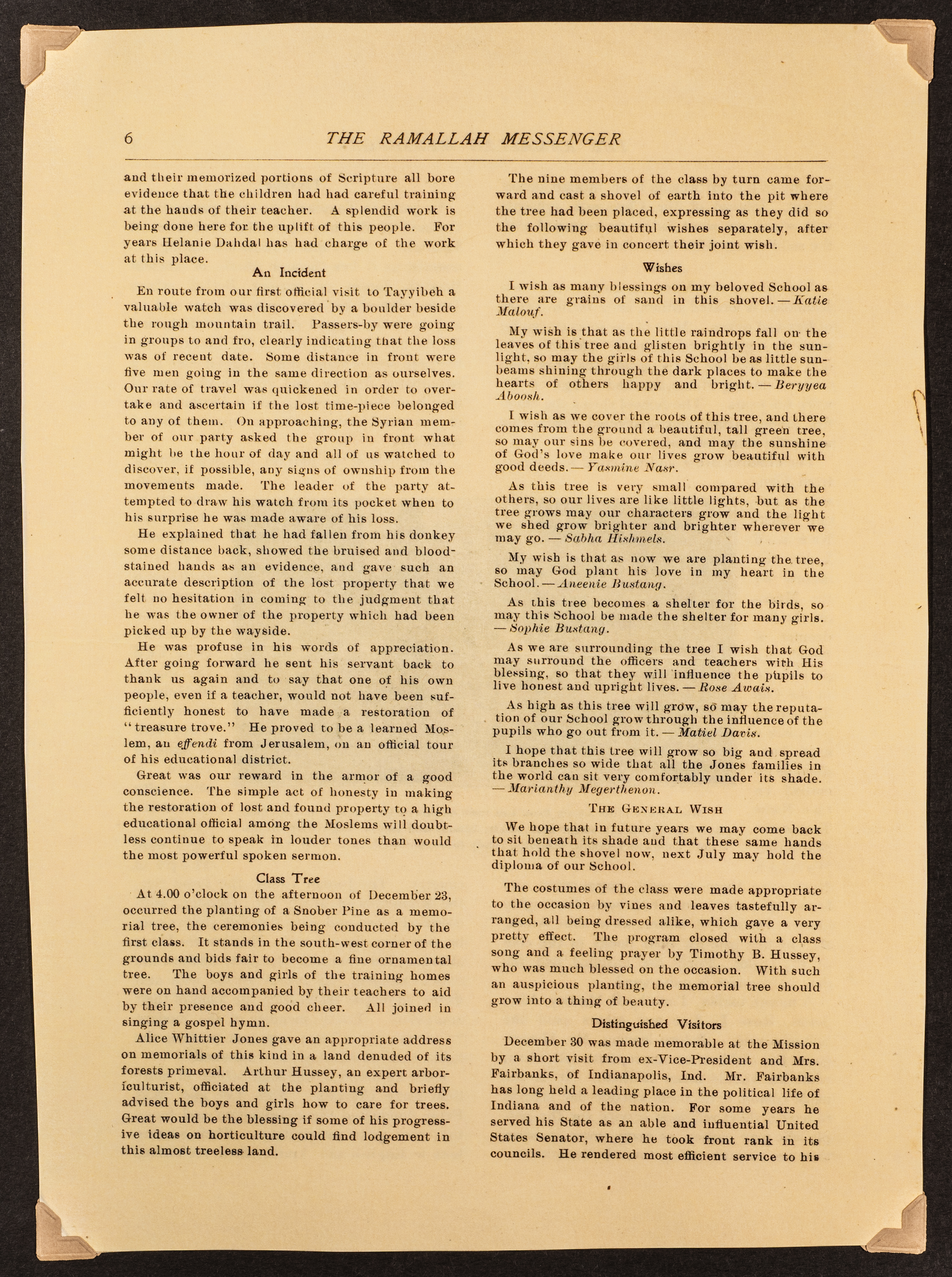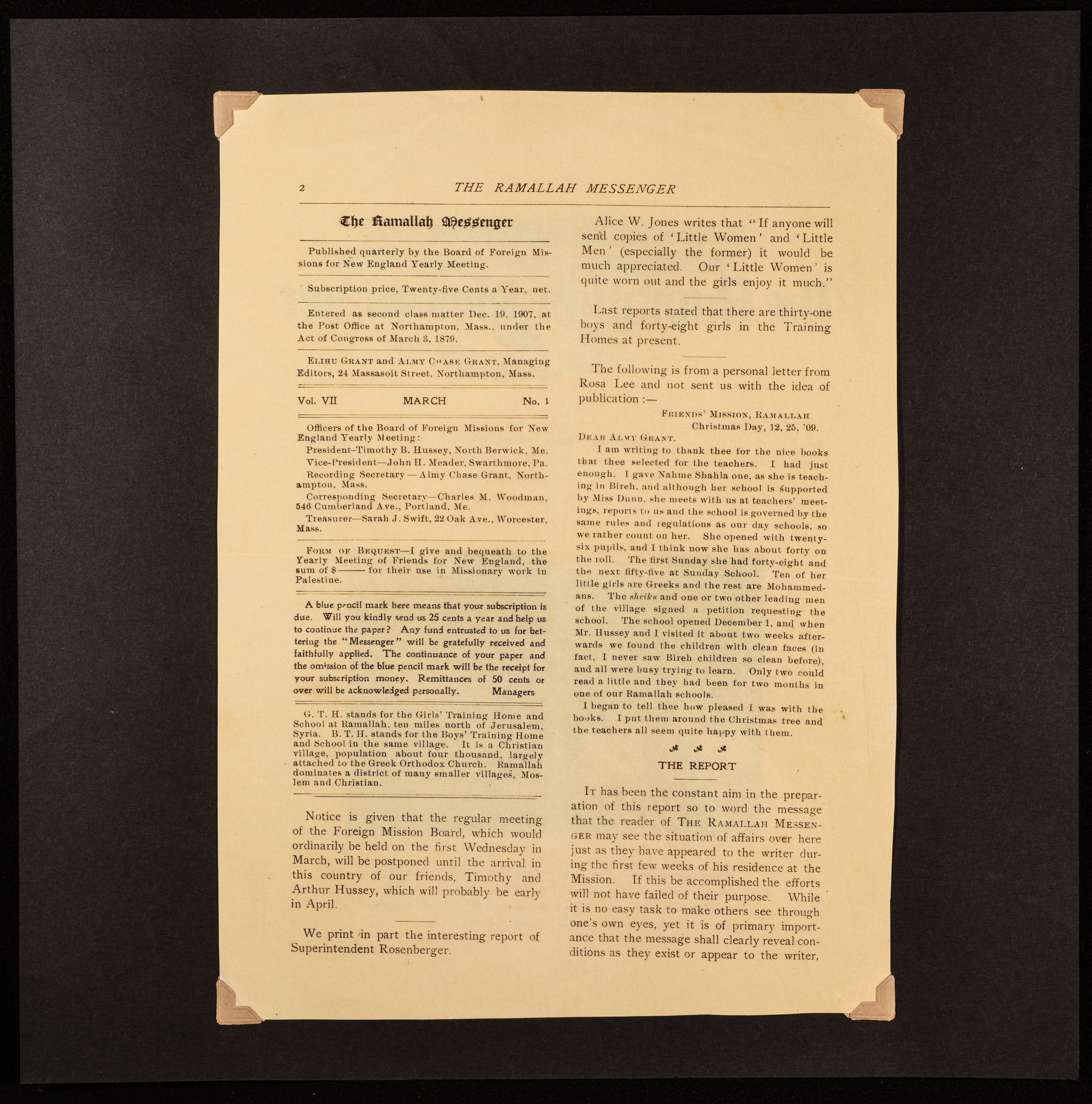 A collection that tells the story of Timothy and Anna Hessie with the Friends School in Ramallah
