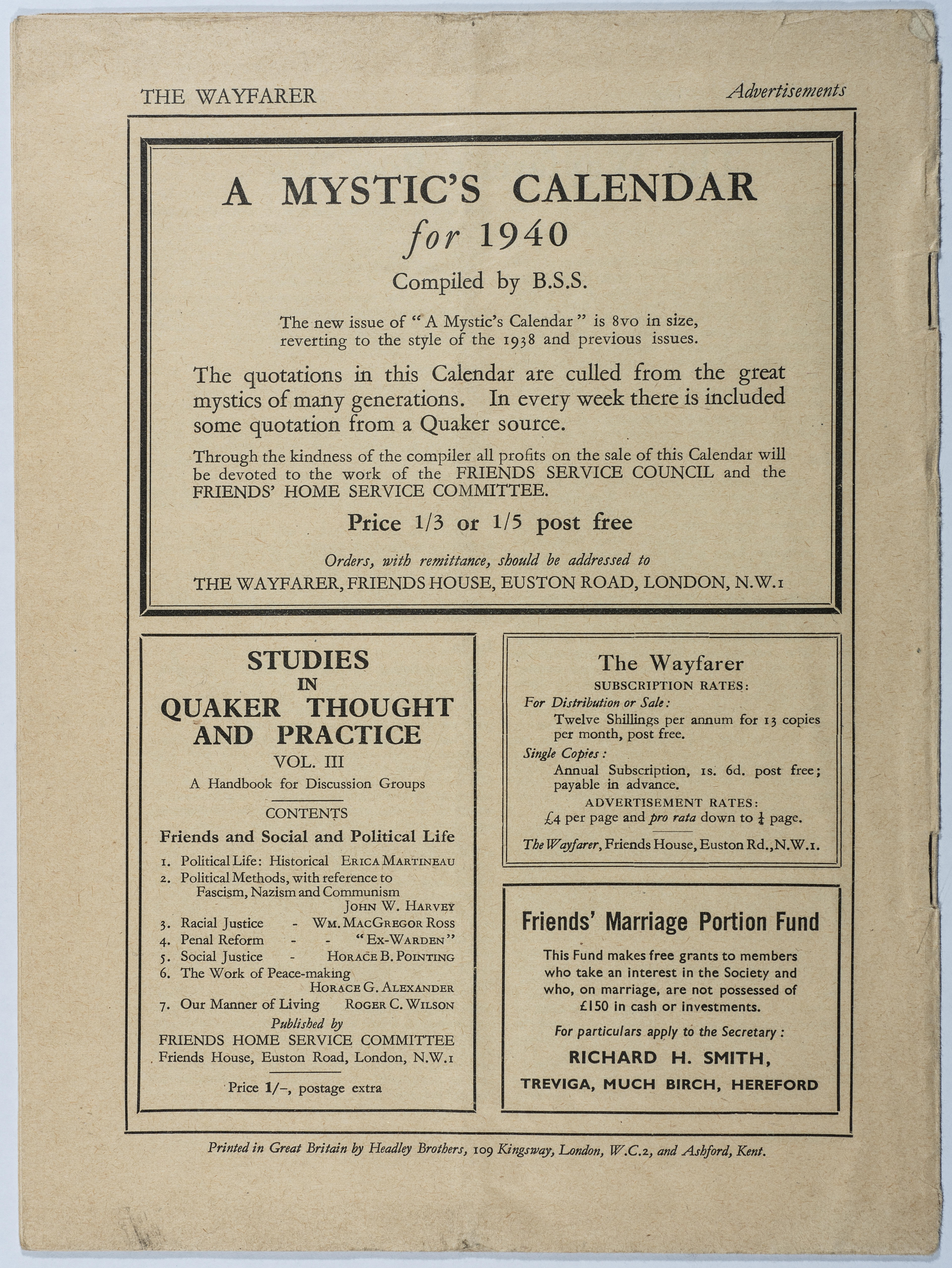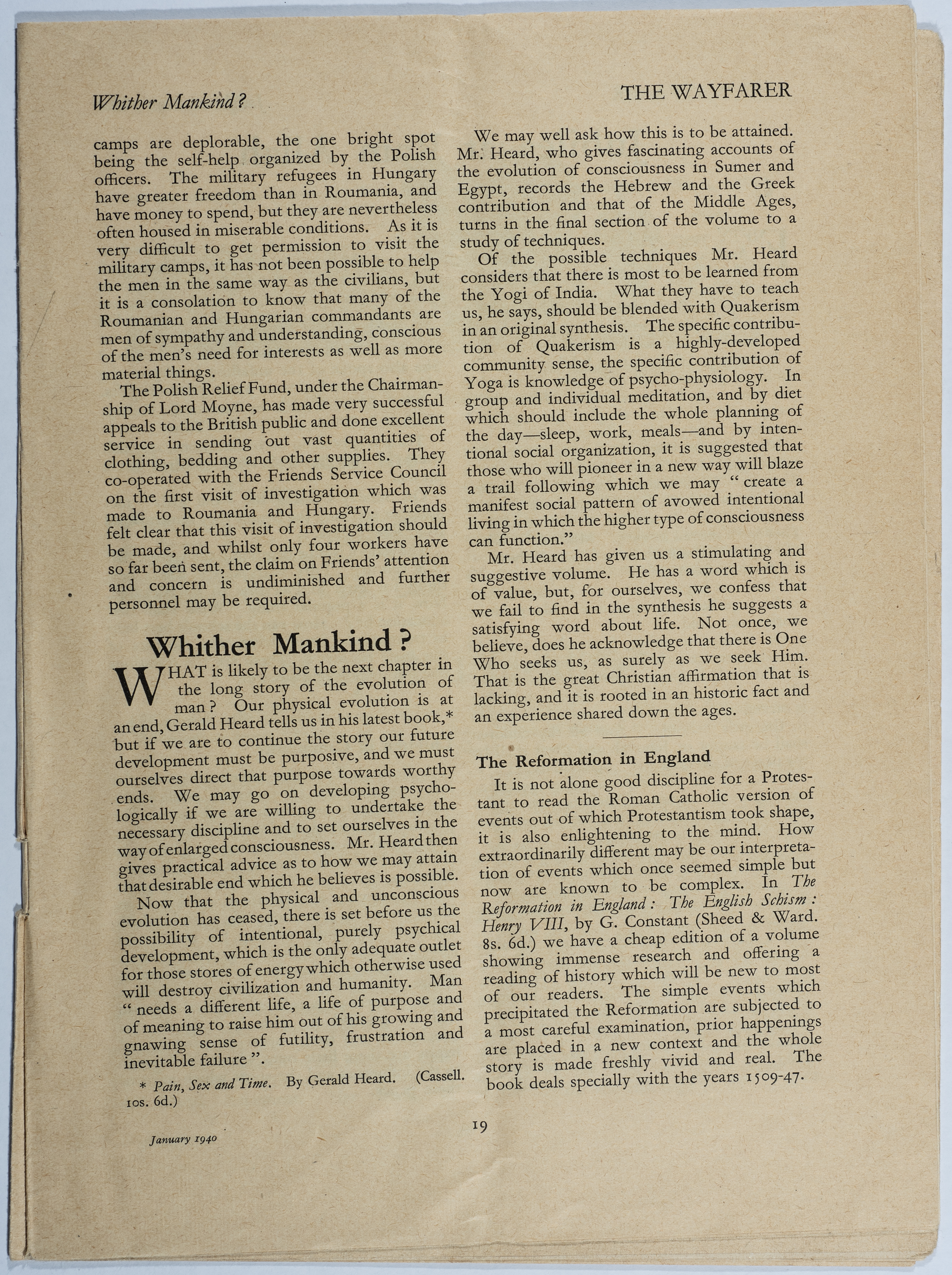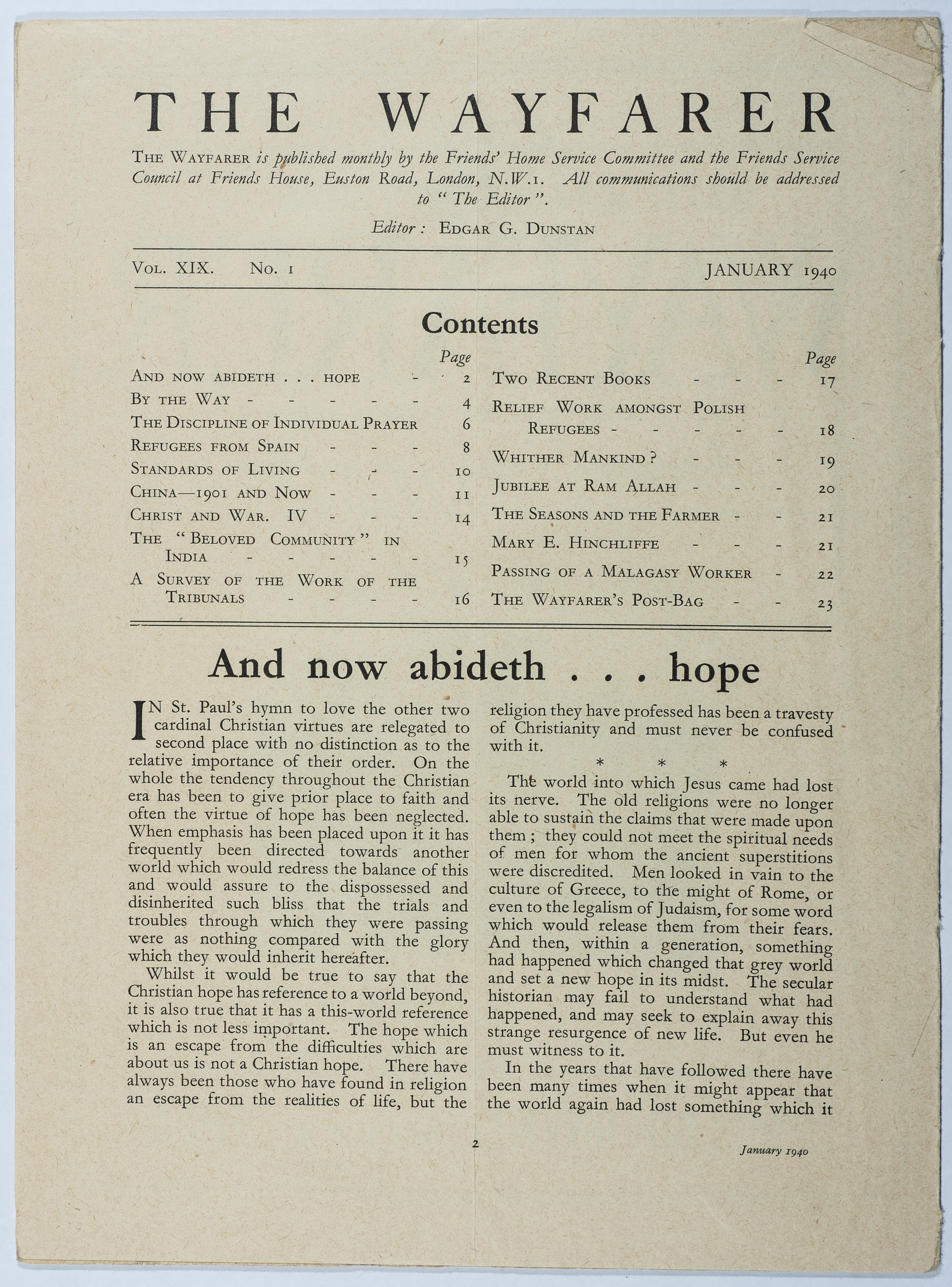 Waifrer magazine is the first issue of Volume 19. It is a magazine published in London under the supervision of the House of Friends Service Committee