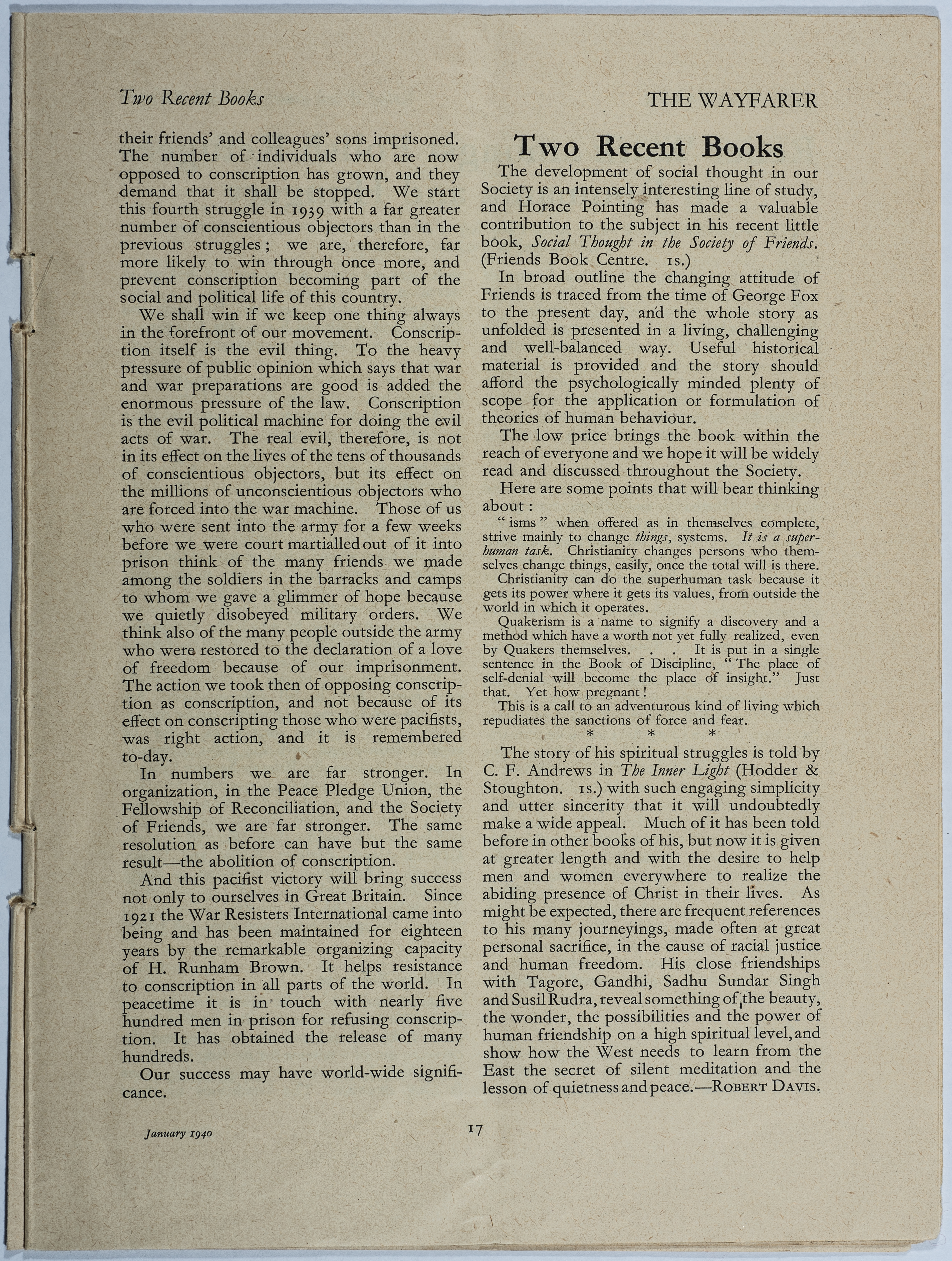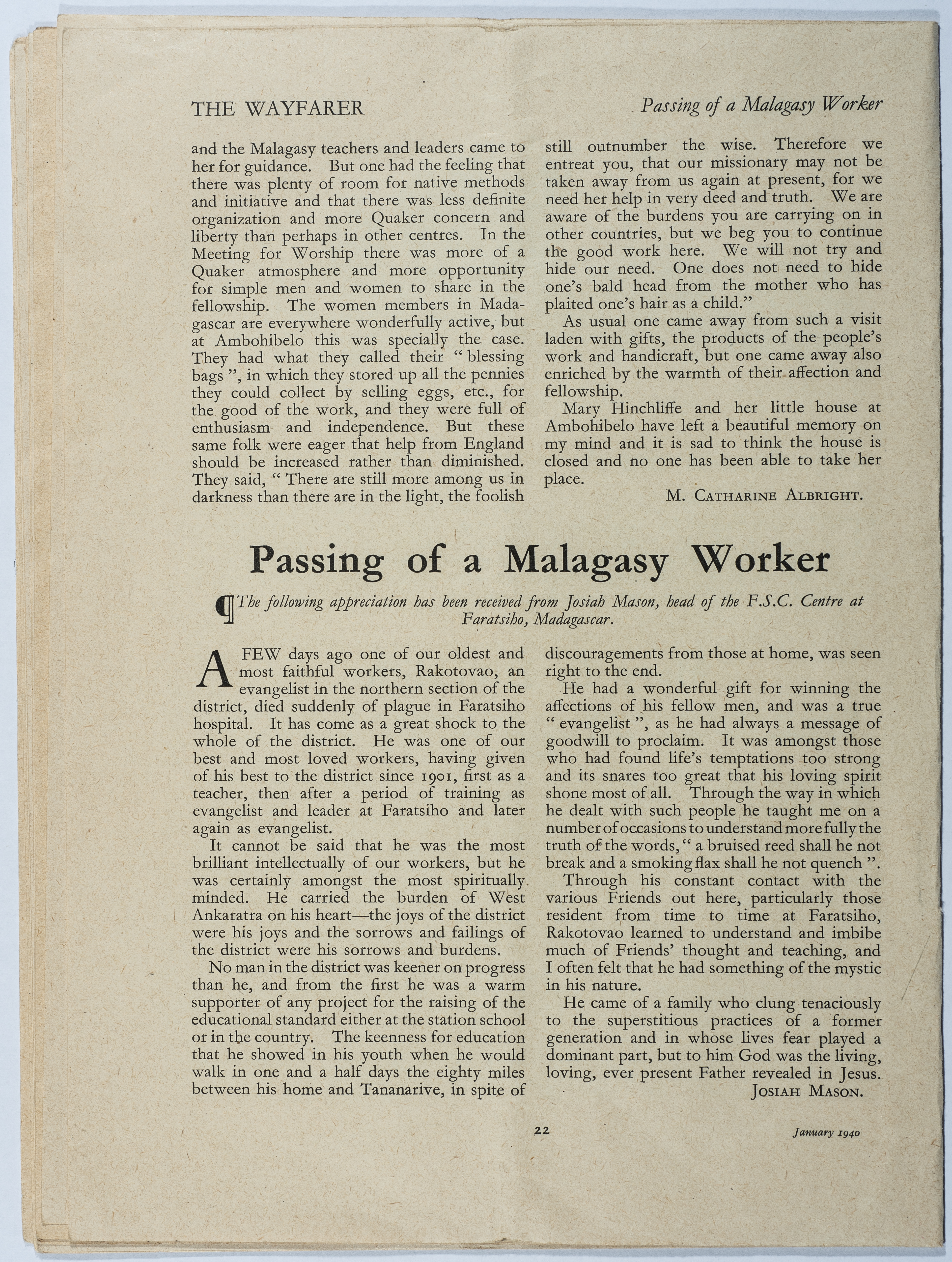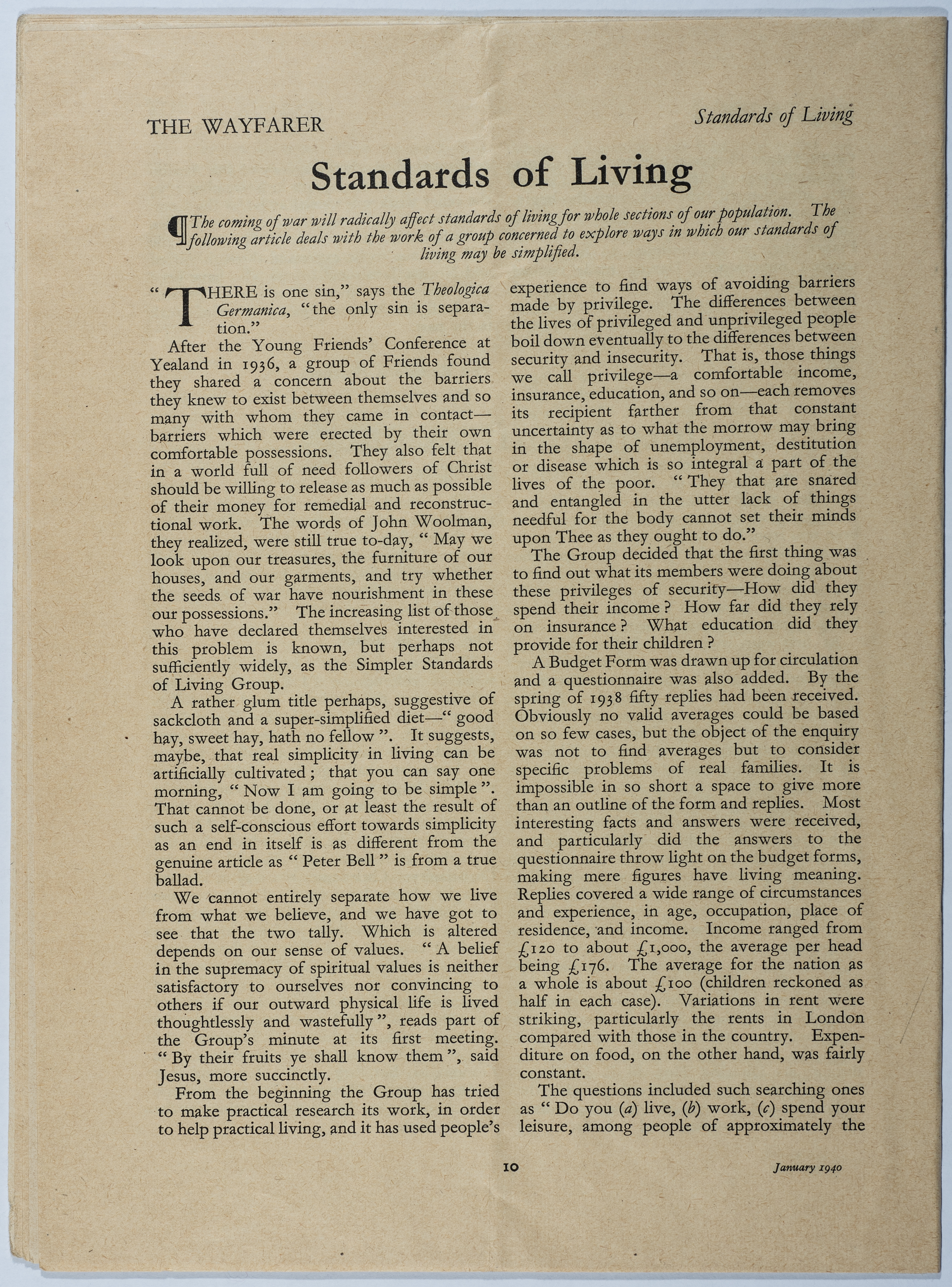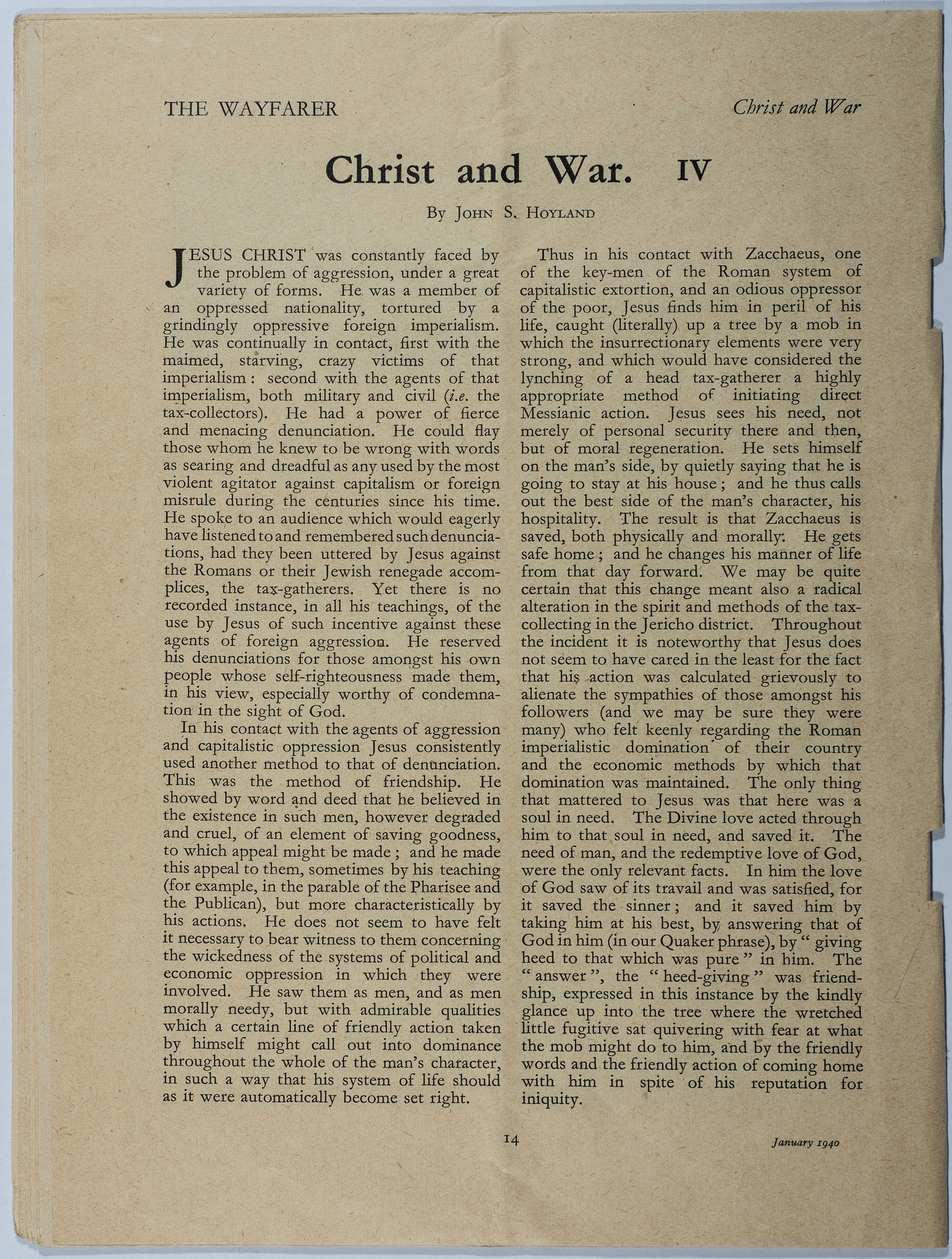 Waifrer magazine is the first issue of Volume 19. It is a magazine published in London under the supervision of the House of Friends Service Committee