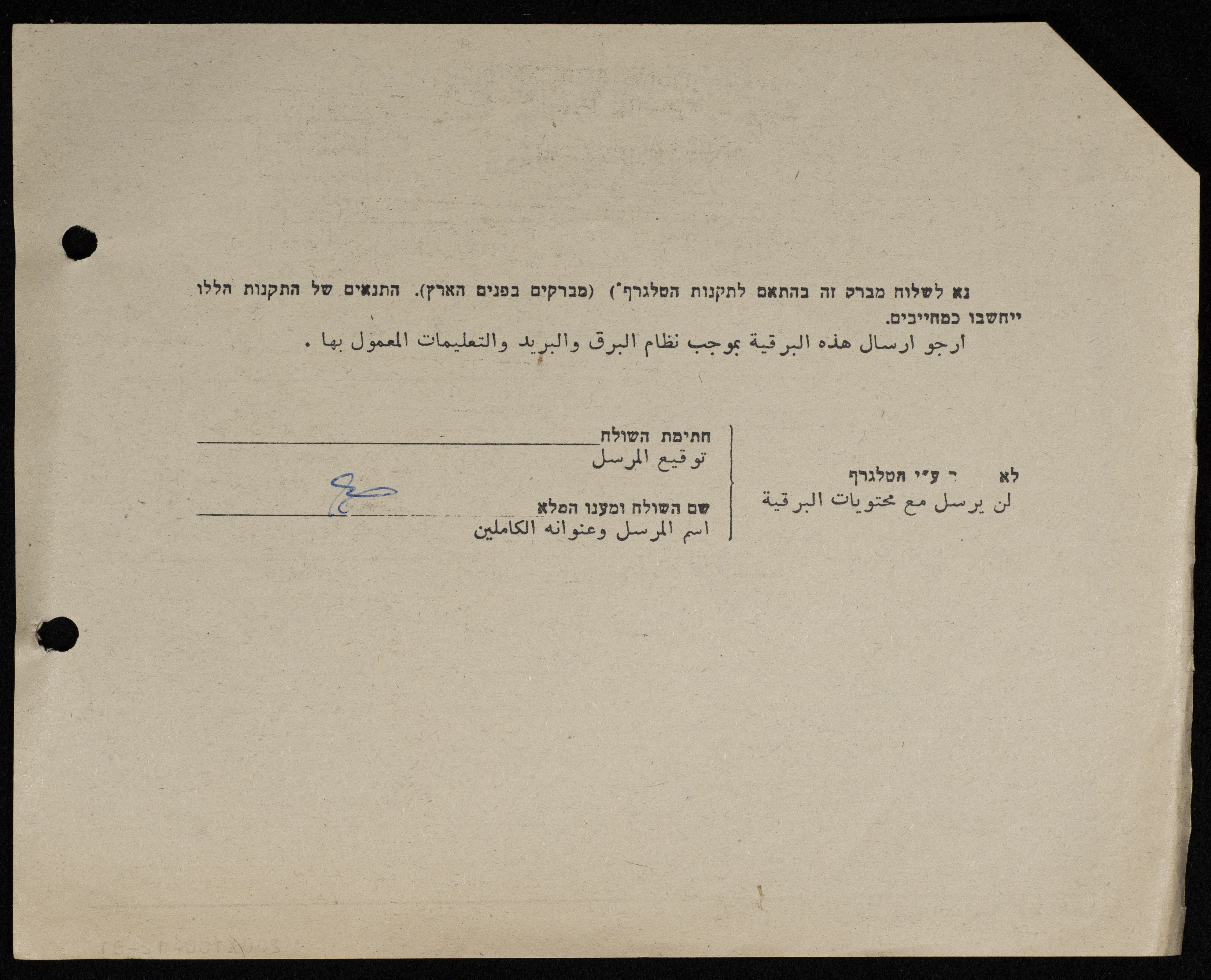 A Telegram Sent by the Mayor of Tulkarm to Osama at-Taher