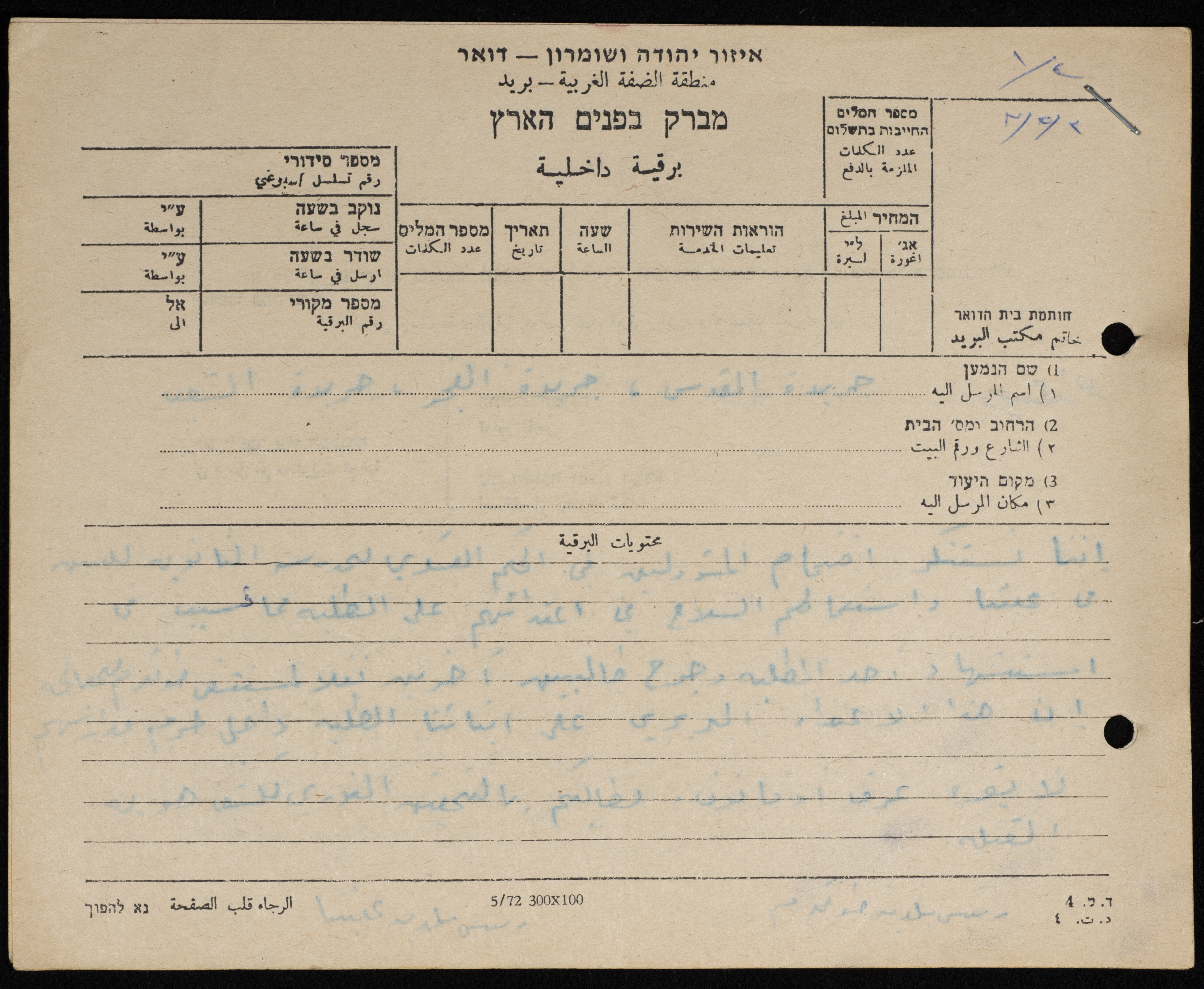 وثيقة مكونة من صفحة واحدة نتتضمن برقية من حلمي حنون، رئيس بلدية طولكرم، إلى الصحف المحلية الفلسطينية، الشعب والفجر والقدس، طلب حلمي حنون في البرقية نشر موقف البلدية الرافض لما قامت به قوات الاحتلال من اقتحام لمدرسة بنين عنبتا الثانوية.