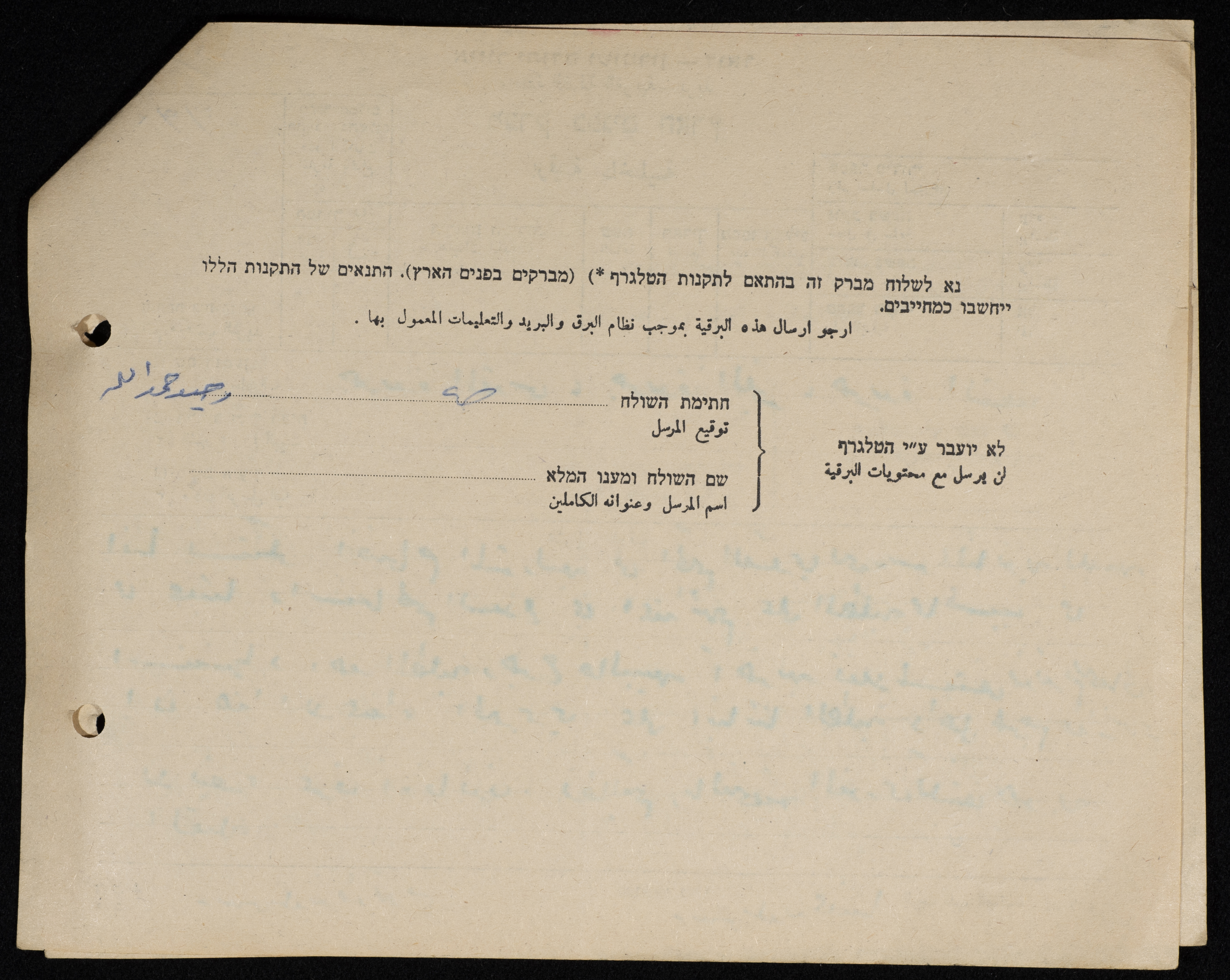 برقية مرسلة من رئيس بلدية طولكرم إلى الصحف المحلية الفلسطينية