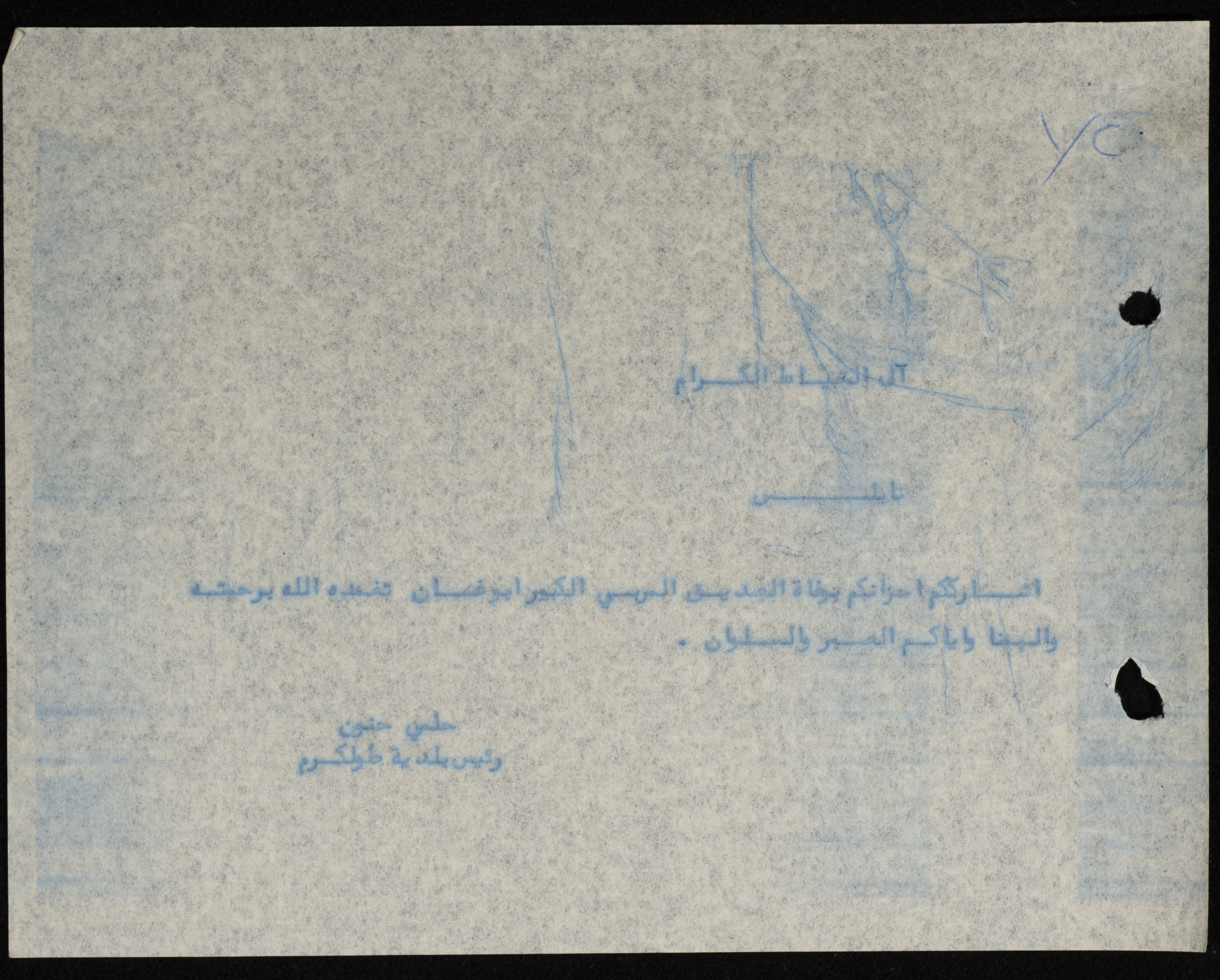 برقية مرسلة من رئيس بلدية طولكرم إلى آل الخياط