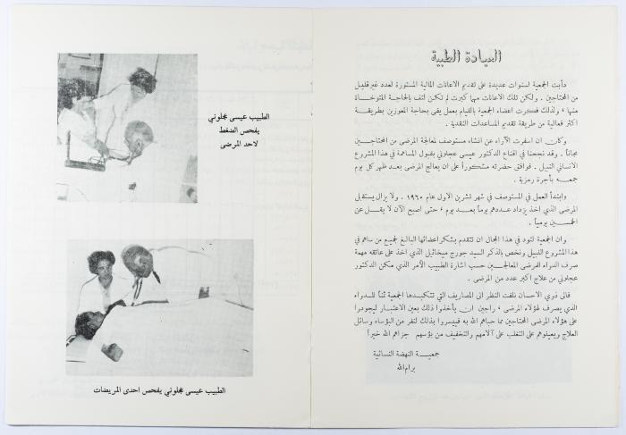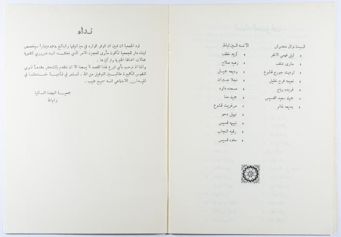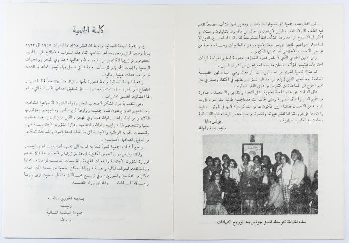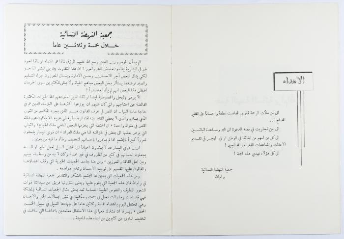 "جمعية النهضة النسائية"، كتيّب صادر عن جمعية النهضة النسائية، رام الله، 1962