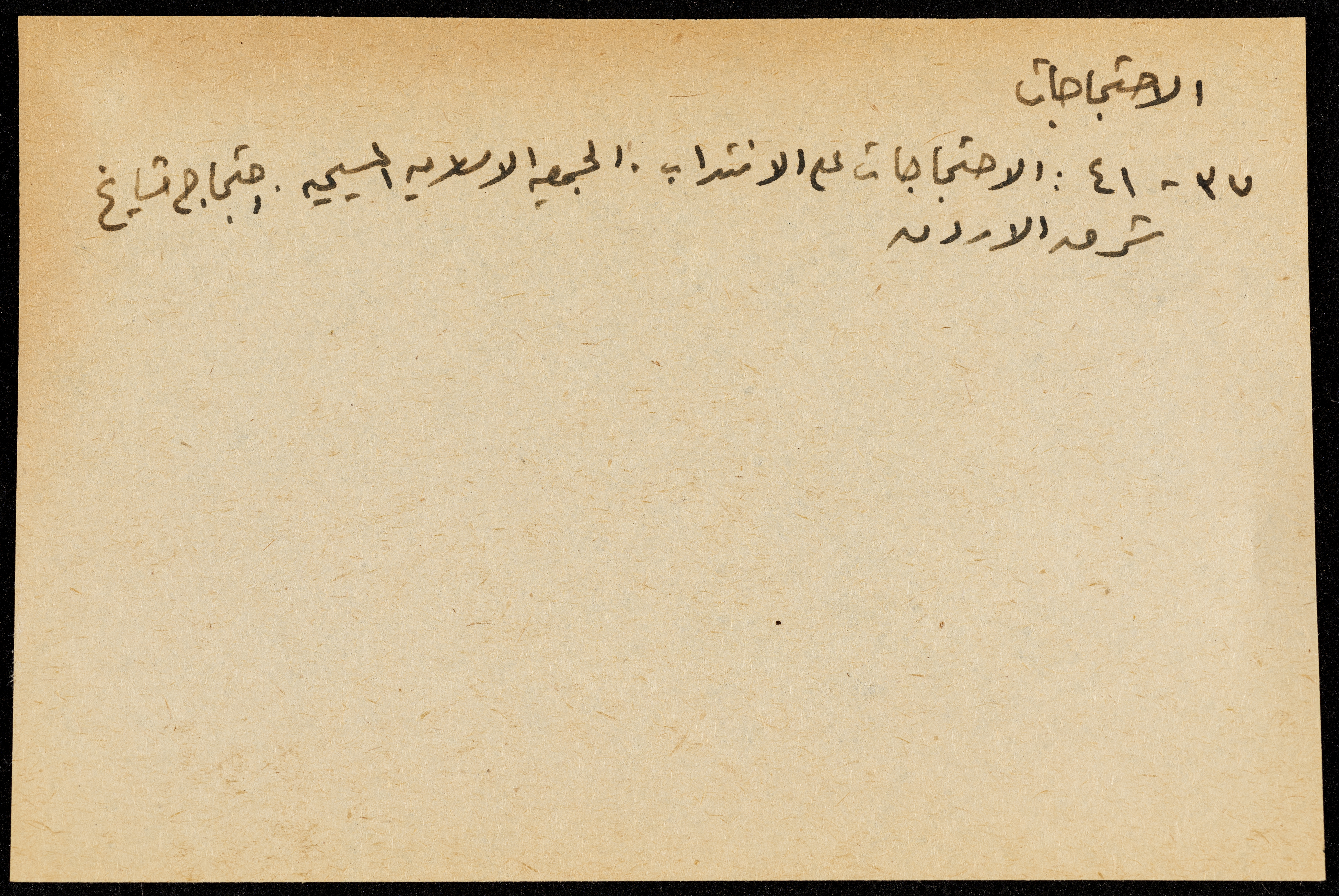صورة ملونة لقصاصة ورقية كتبت بخط اليد باللغة العربية بعنوان الاحتجاجات،وفيها ارقام وأسماء جمعيات.