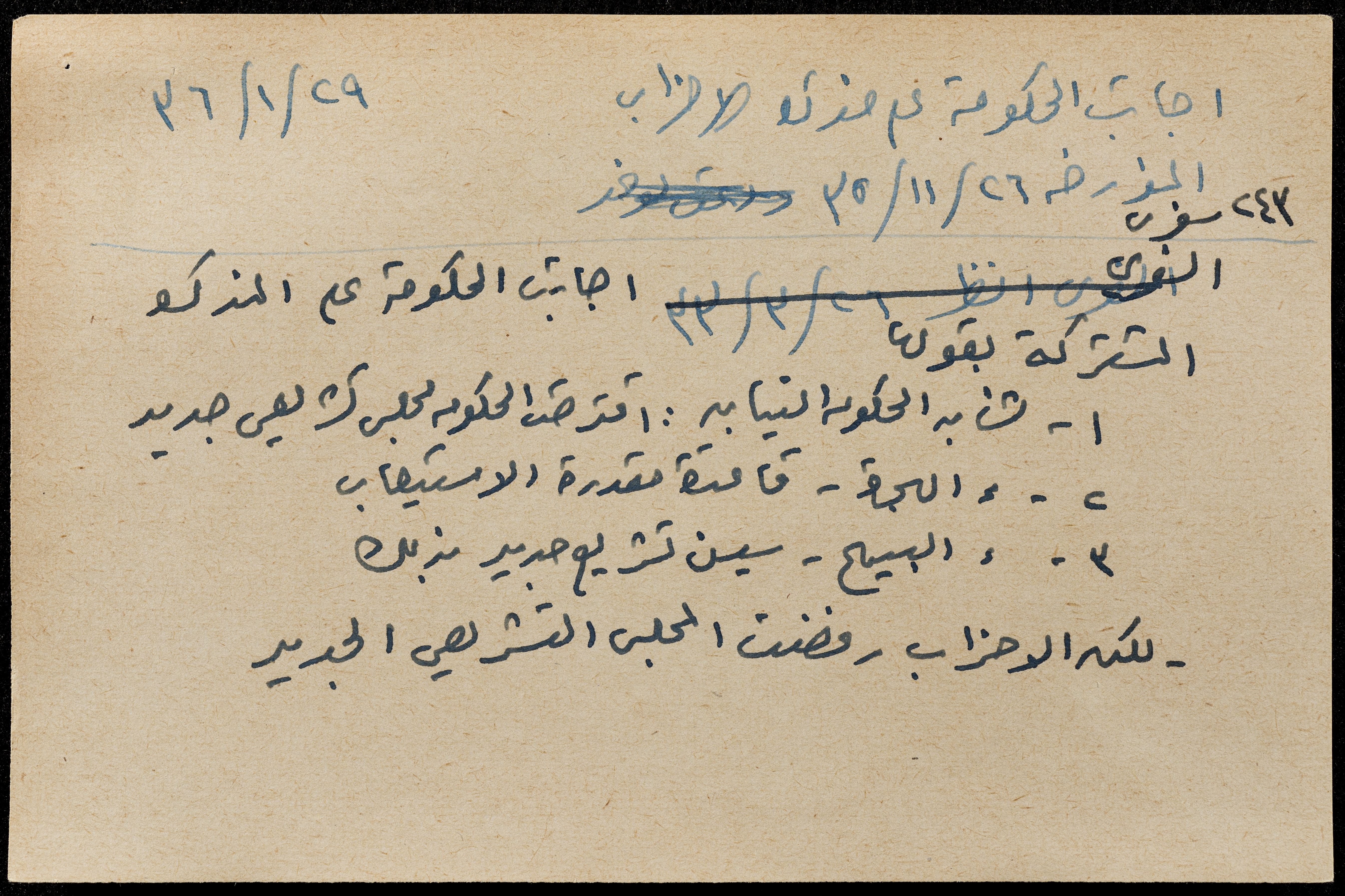 قصاصة ورقية بعنوان:رد الحكومة على مذكرة الأحزاب