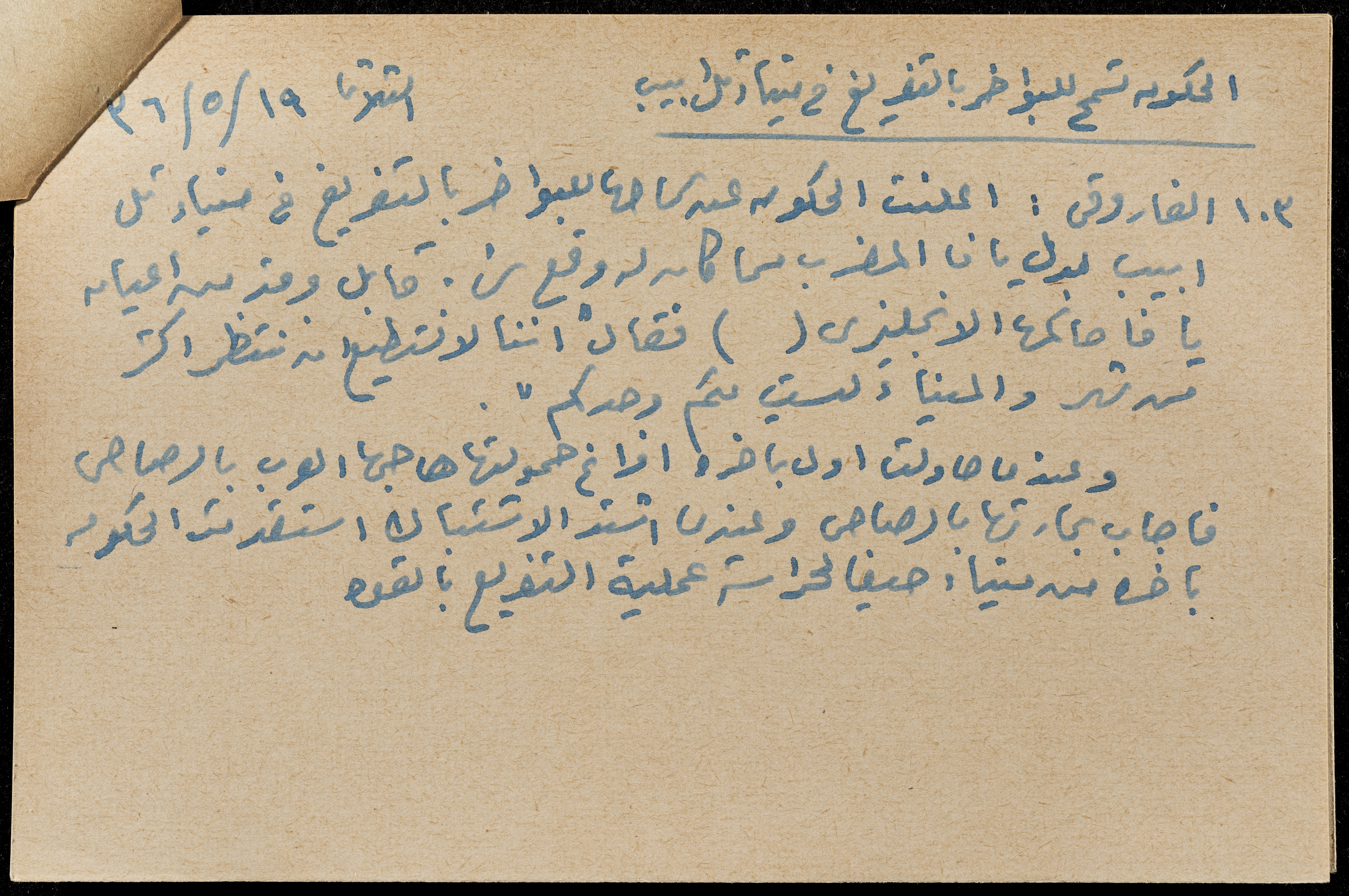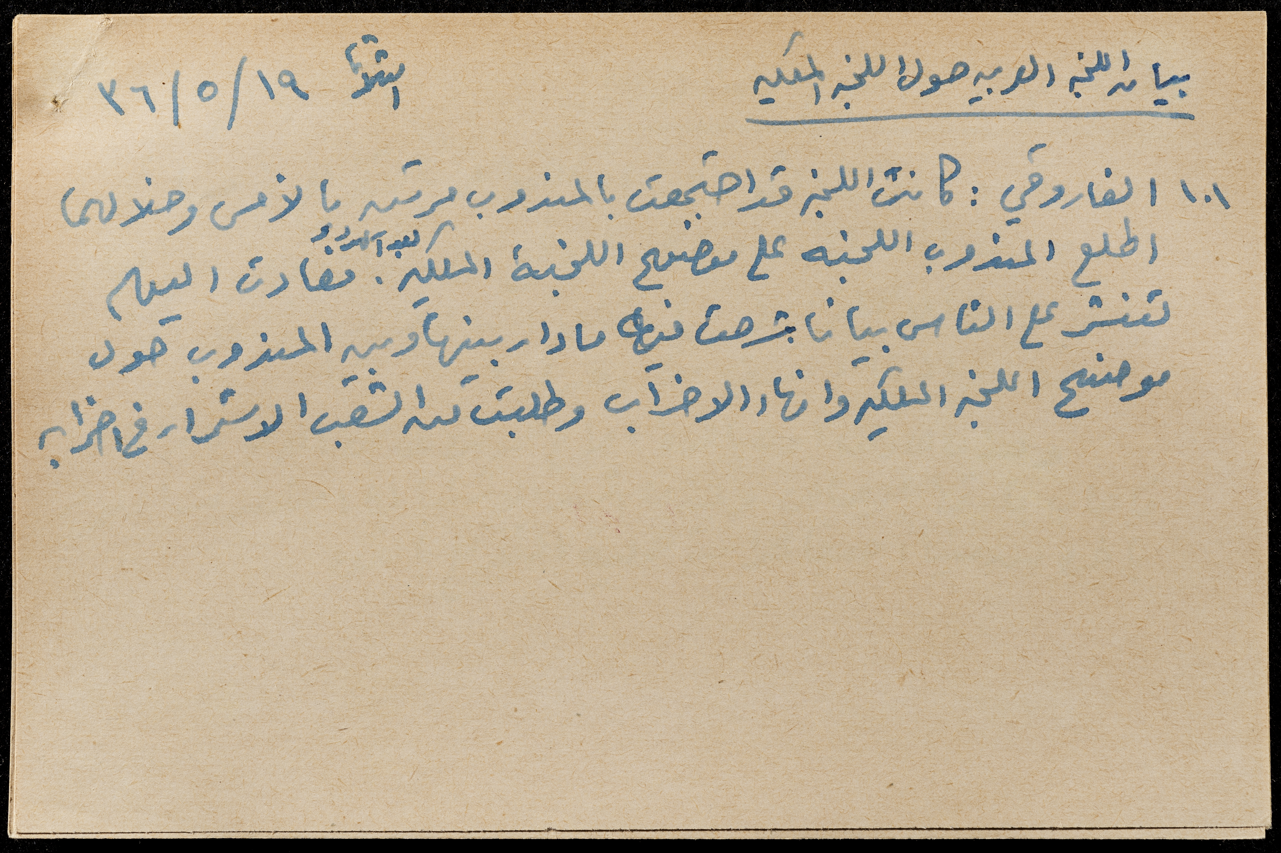 قصاصة ورقية بعنوان: بيان اللجنة العربية حول اللجنة الملكية
