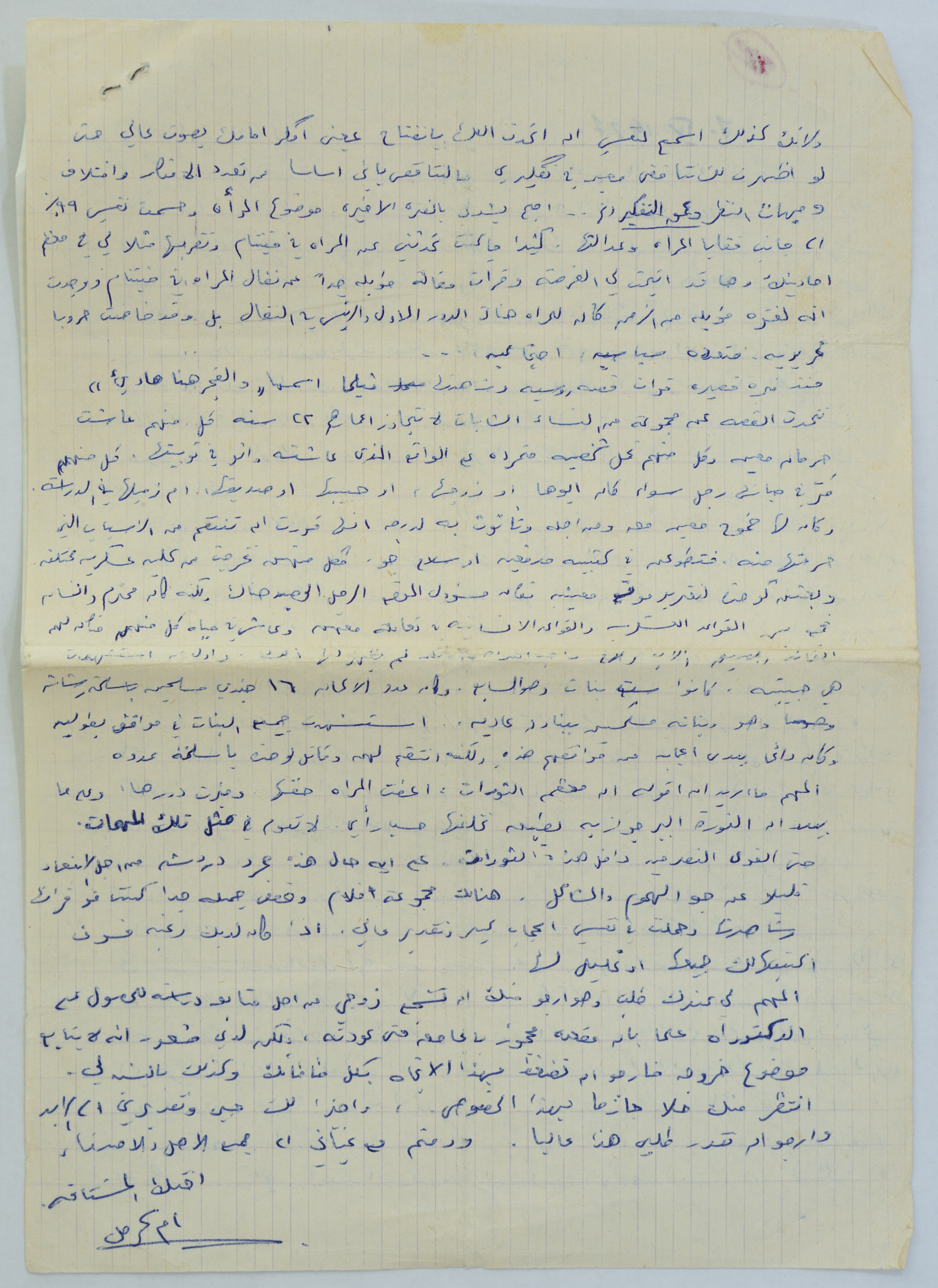 A Letter from Amal al-Qasim to Omar al-Qasim, Jerusalem, 1987