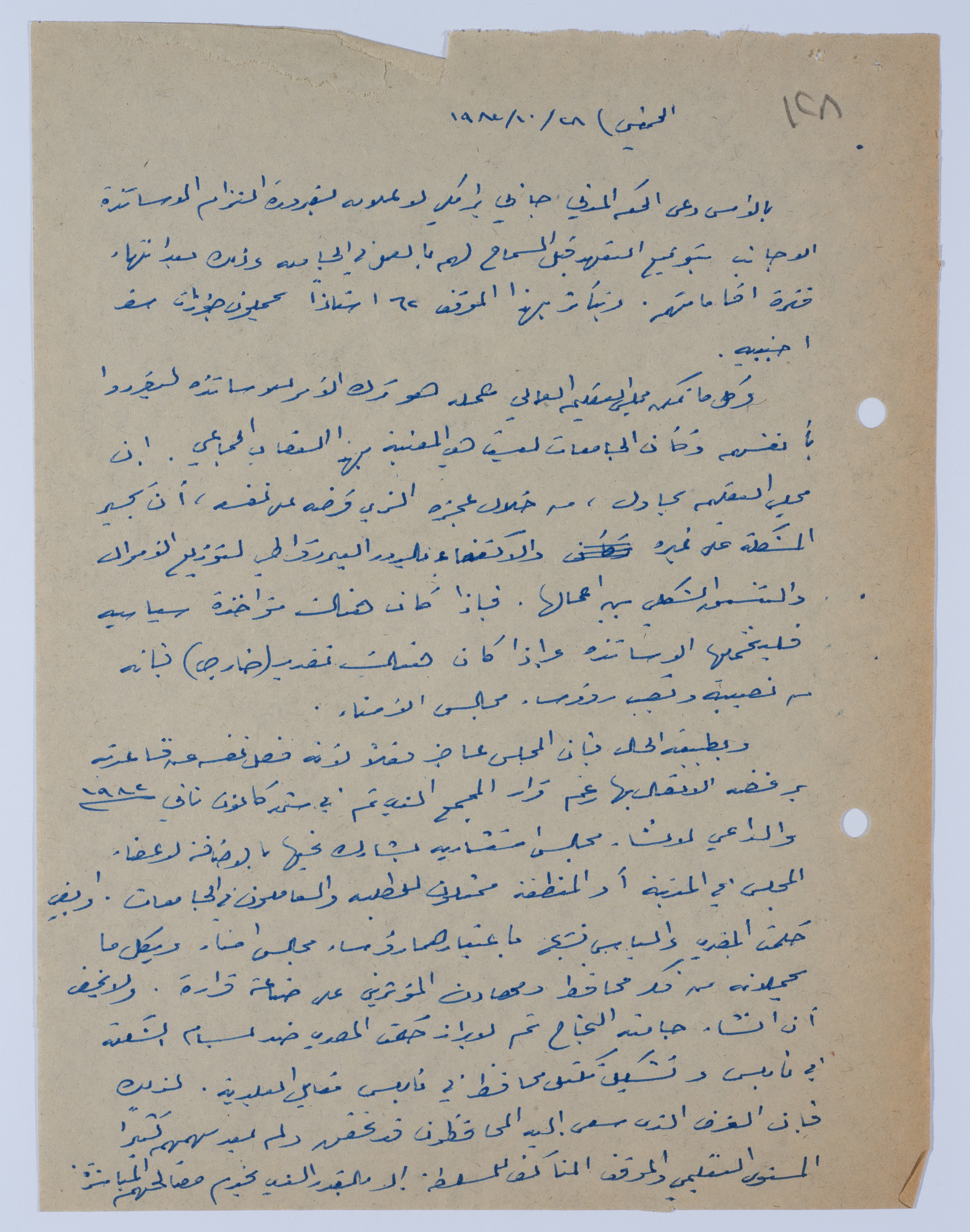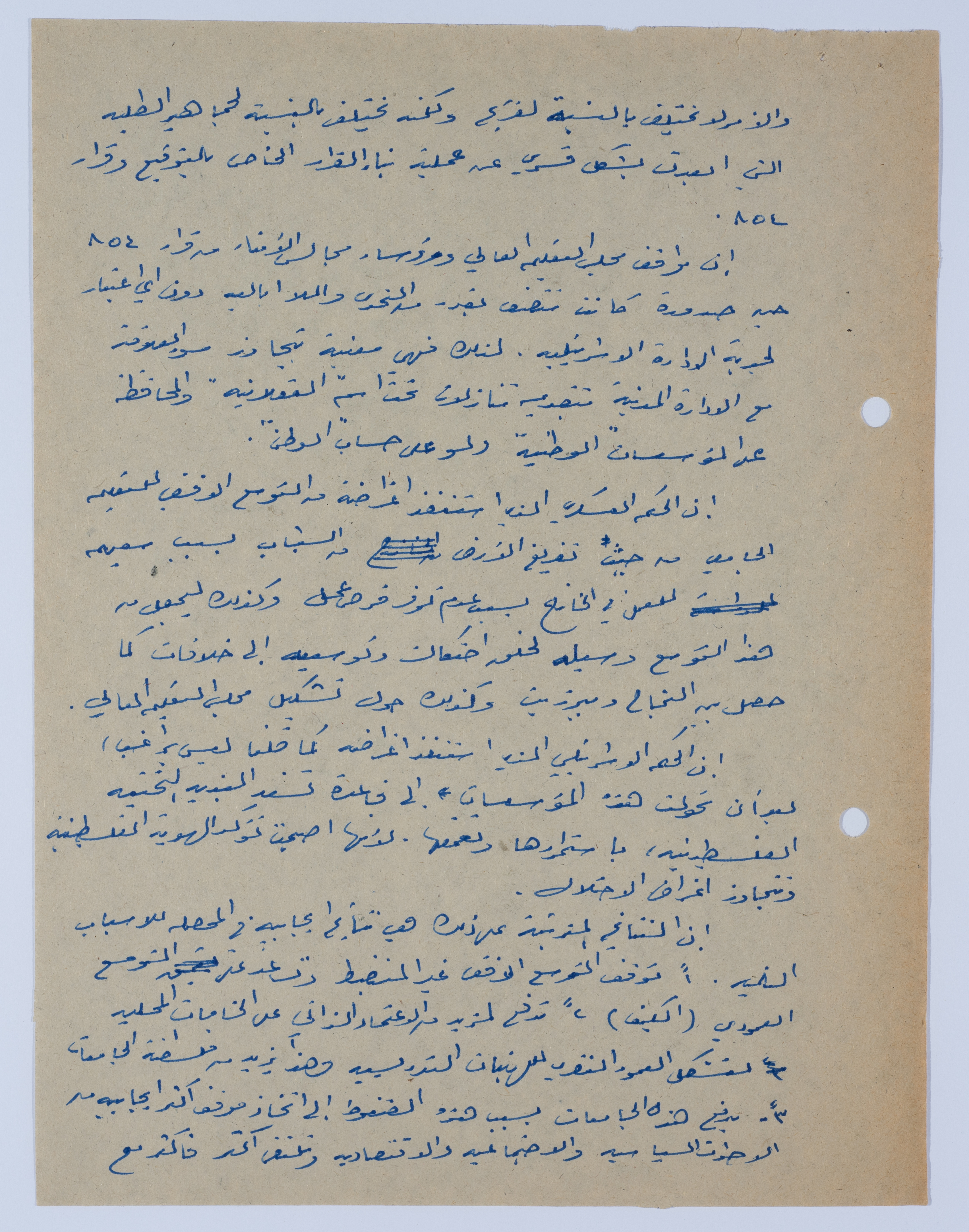 Written on October 28, 1982, this document is a three-page article in Arabic on the condition that foreign staff members have to sign an undertaking that allows them to work at An-Najah National University.
