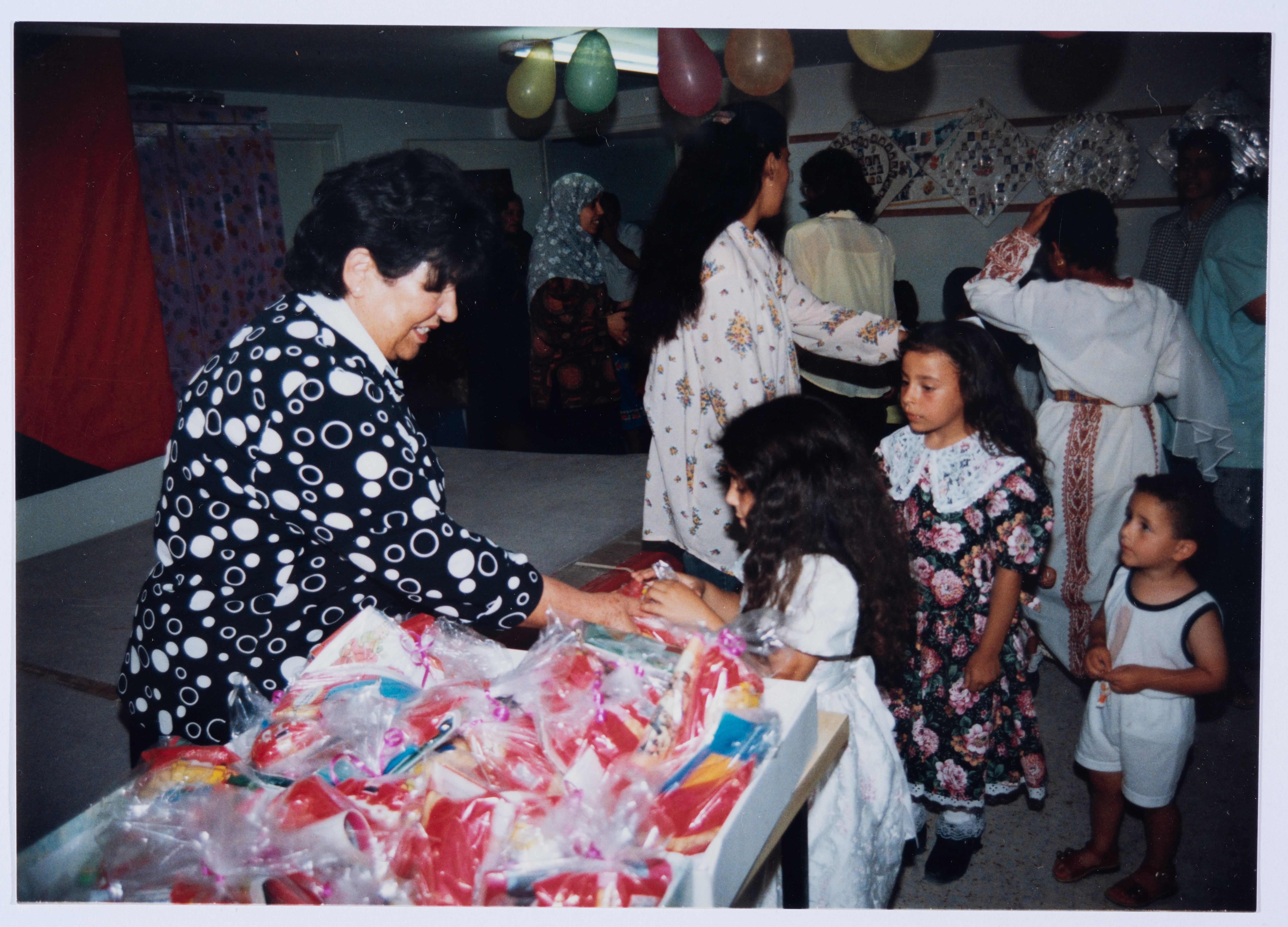 صورة ملونة، من مشاركة عضو الهيئة الادارية السيدة خديجة فرحان في أنشطة جمعية مخيم قلنديا النسائية التعاونية.