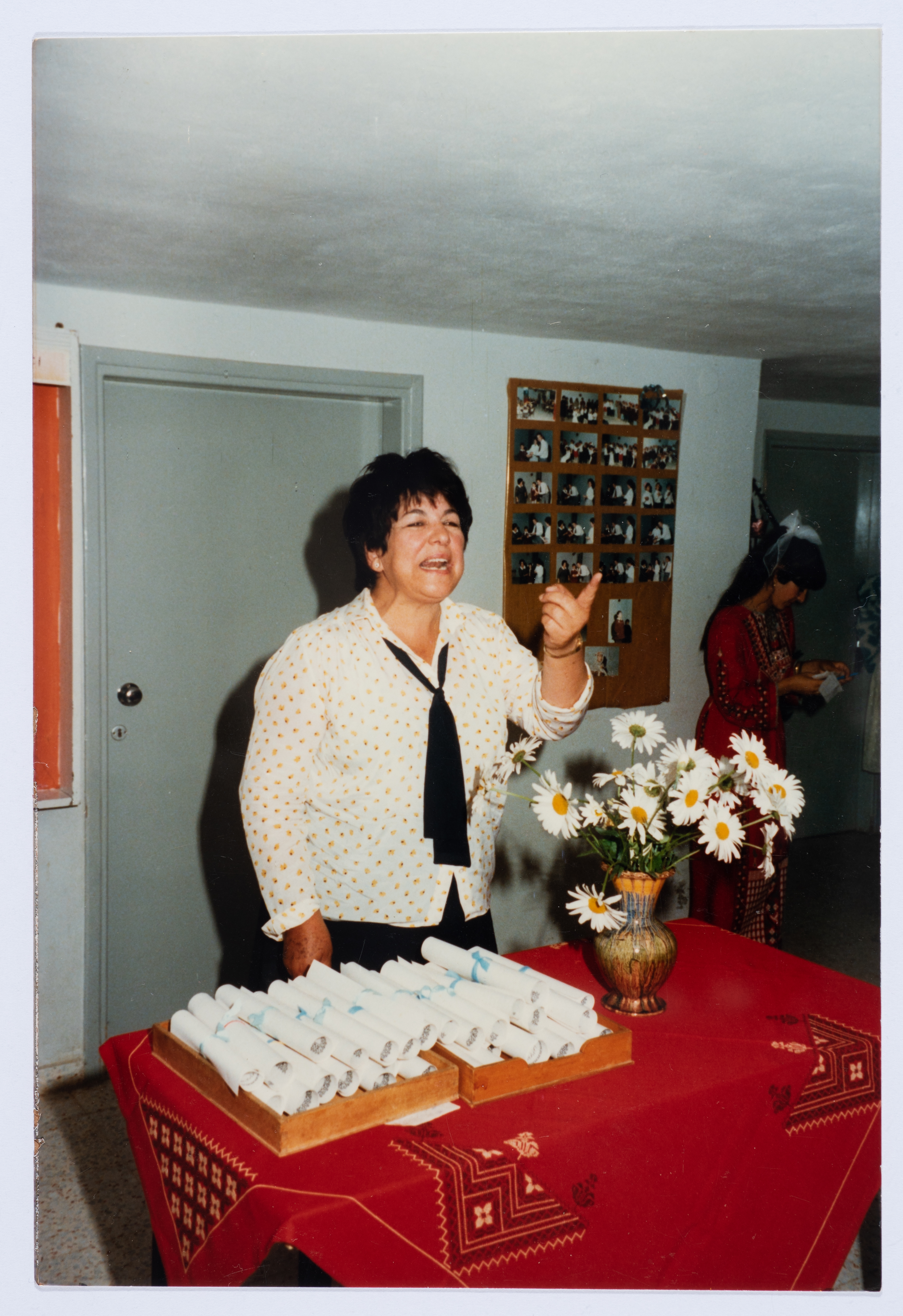 صورة ملونة، من مشاركة عضو الهيئة الادارية السيدة خديجة فرحان في أنشطة جمعية مخيم قلنديا النسائية التعاونية.