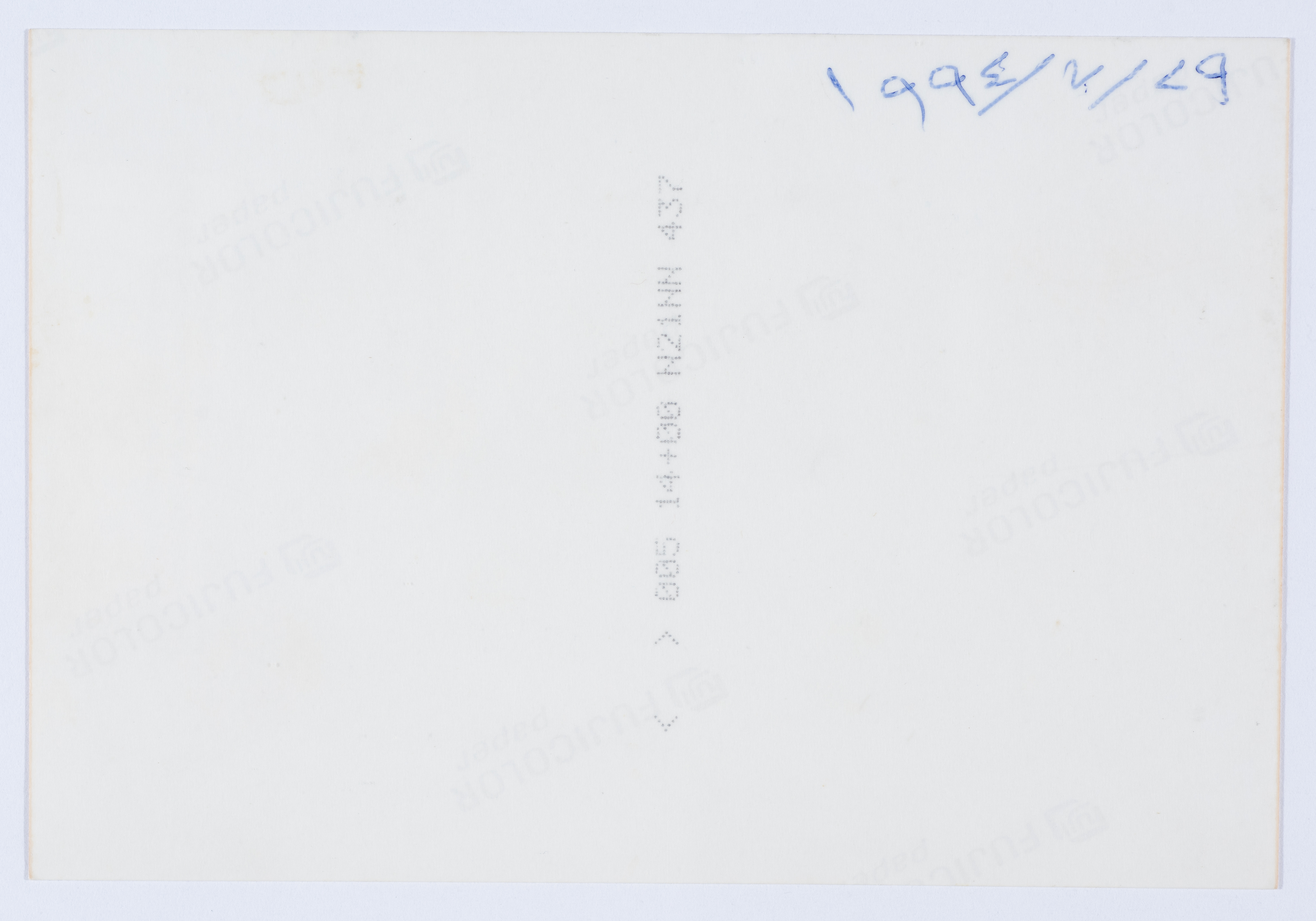 صورة ملونة، بتاريخ 29 آب 1994 من زيارة أعضاء الهيئة الادارية والهيئة العامة لجمعية مخيم قلنديا النسائية التعاونية، ممثلة برئيسة الجمعية السيدة خديجة فرحان ، للرئيس ياسر عرفات في قطاع غزة.
