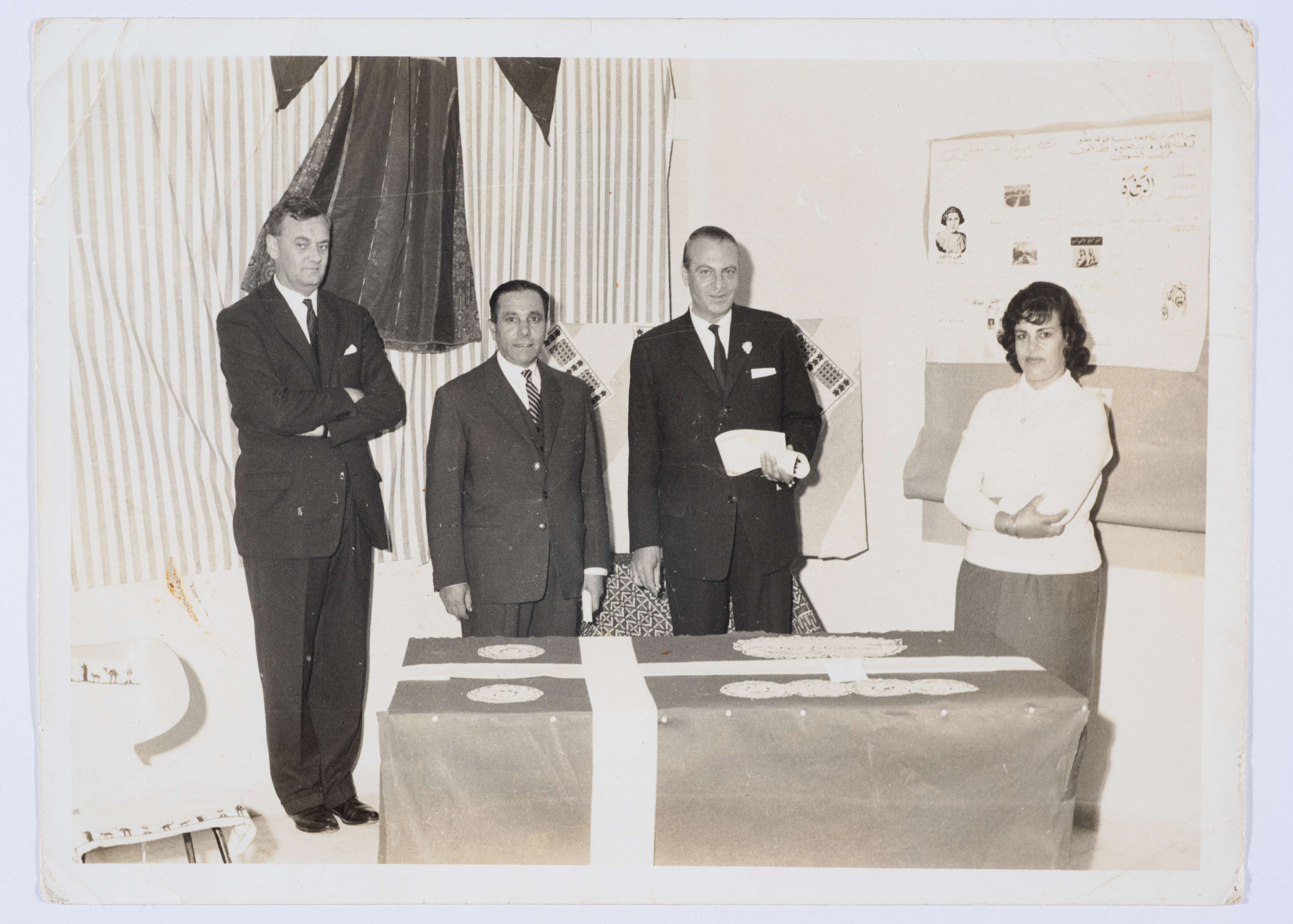 صورة أسود وأبيض، من مشاركة السيدة خديجة فرحان عضو الهيئة الادارية في جمعية مخيم قلنديا النسائية التعاونية، في معرض لمنتوجات المركز النسوي التابع لوكالة الغوث الدولية فترة عملها في الوكالة.