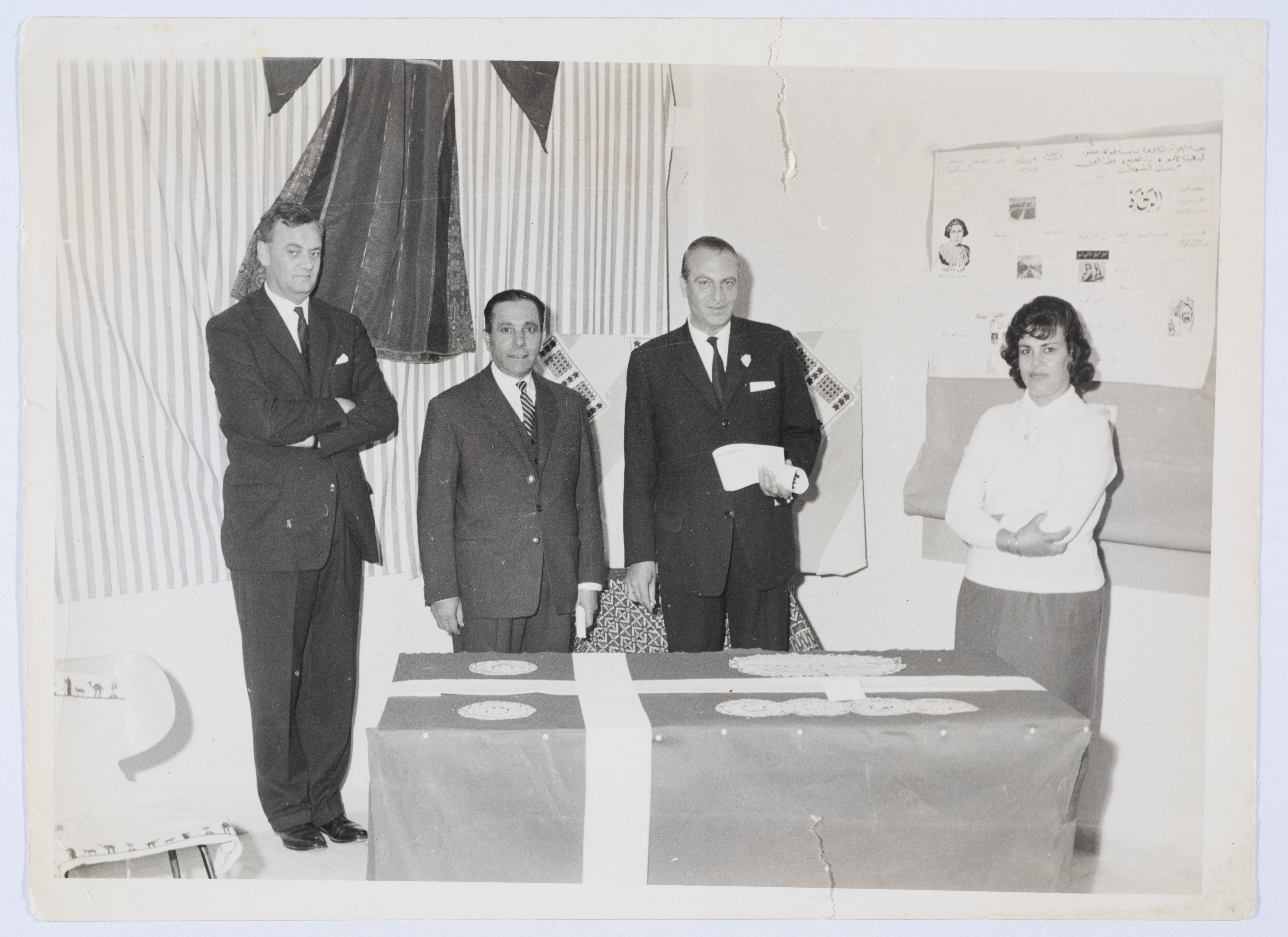صورة أسود وأبيض، من مشاركة السيدة خديجة فرحان عضو الهيئة الادارية في جمعية مخيم قلنديا النسائية التعاونية، في معرض لمنتوجات المركز النسوي التابع لوكالة الغوث الدولية فترة عملها في الوكالة.