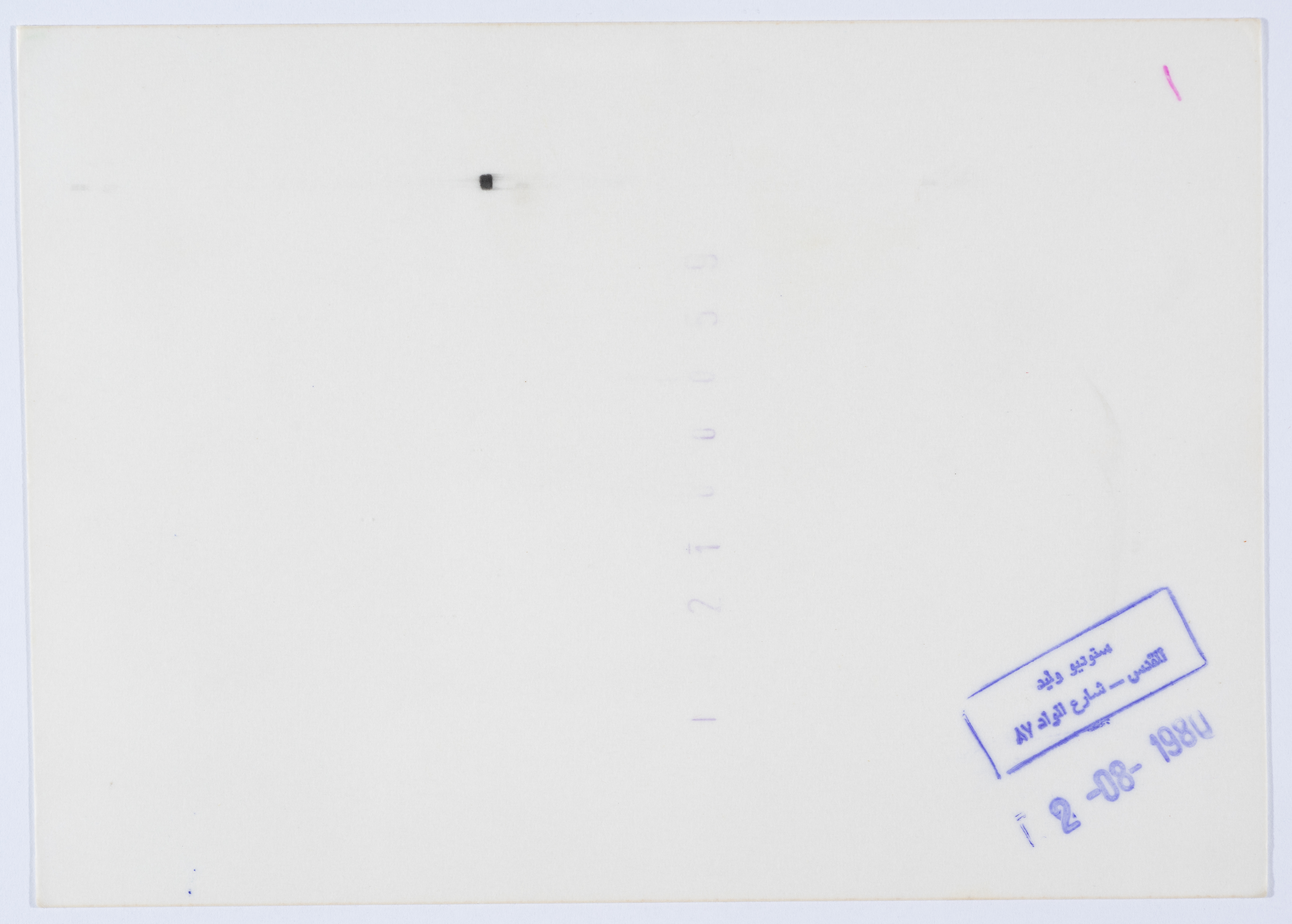 A black-and-white photograph of the members of the Board of Directors of Qalandiya Camp Women Handicraft Cooperative Society at an exhibition of Palestinian embroideries at the Society HQ.