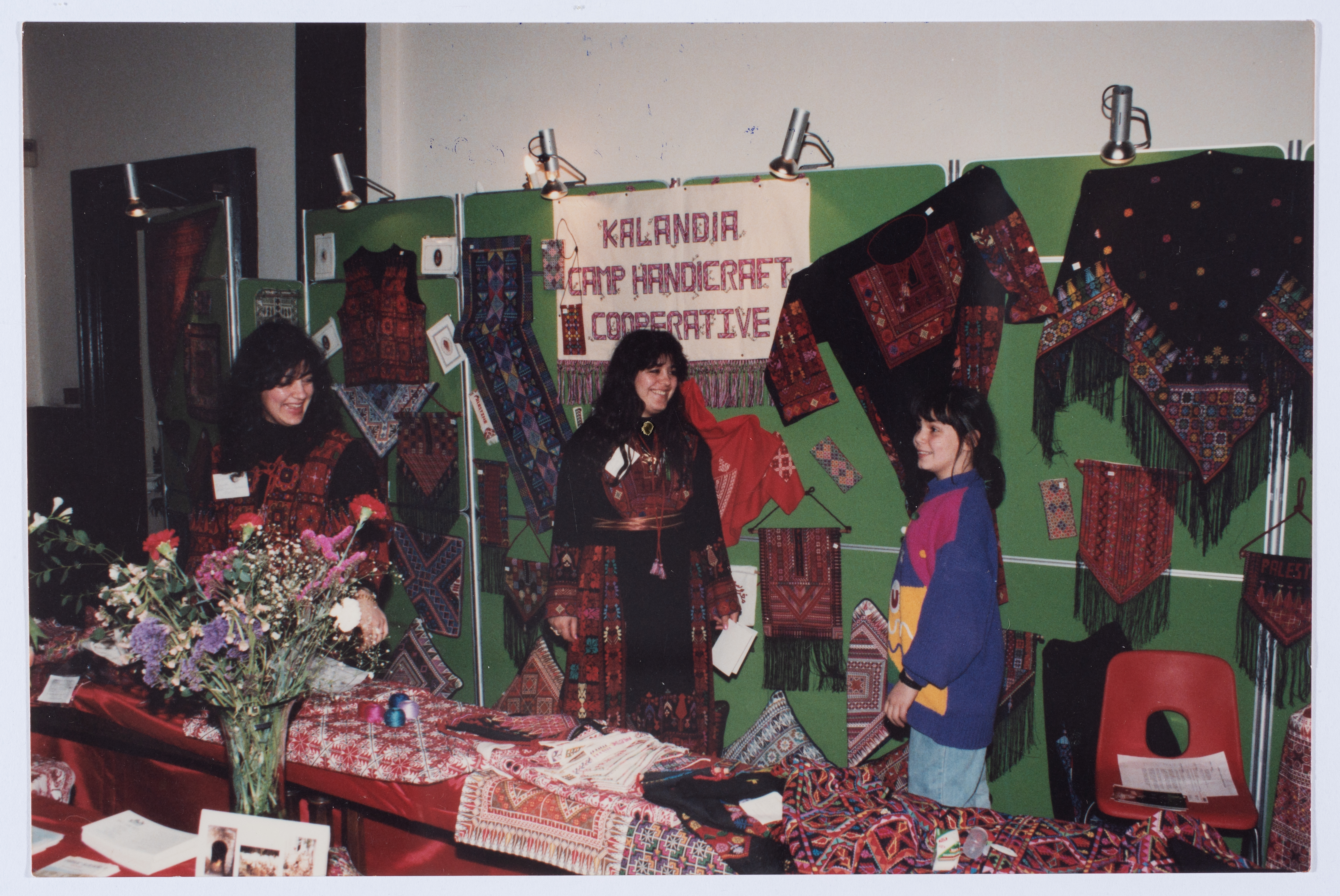 مشاركة جمعية مخيم قلنديا النسائية التعاونية في معرض للتطريز الفلسطيني في بريطانيا 1993