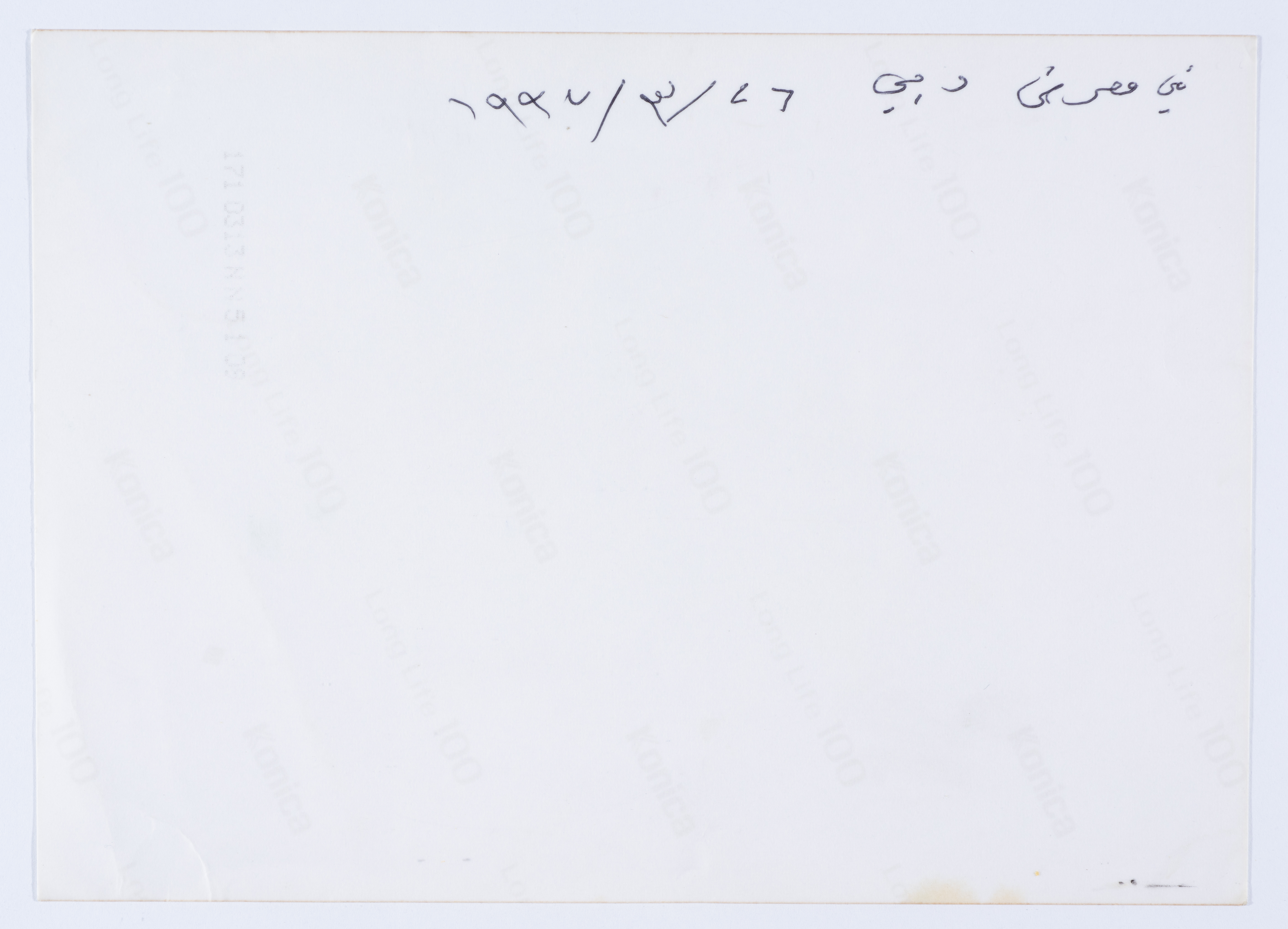 A colour photograph of Mr. Khadija Farhan with members of the General Authority of Qalandiya Camp Women Handicraft Cooperative Society at the Dubai Shopping Festival where they presented Palestinian products and traditional dresses. The photo was taken on 26/3/1997