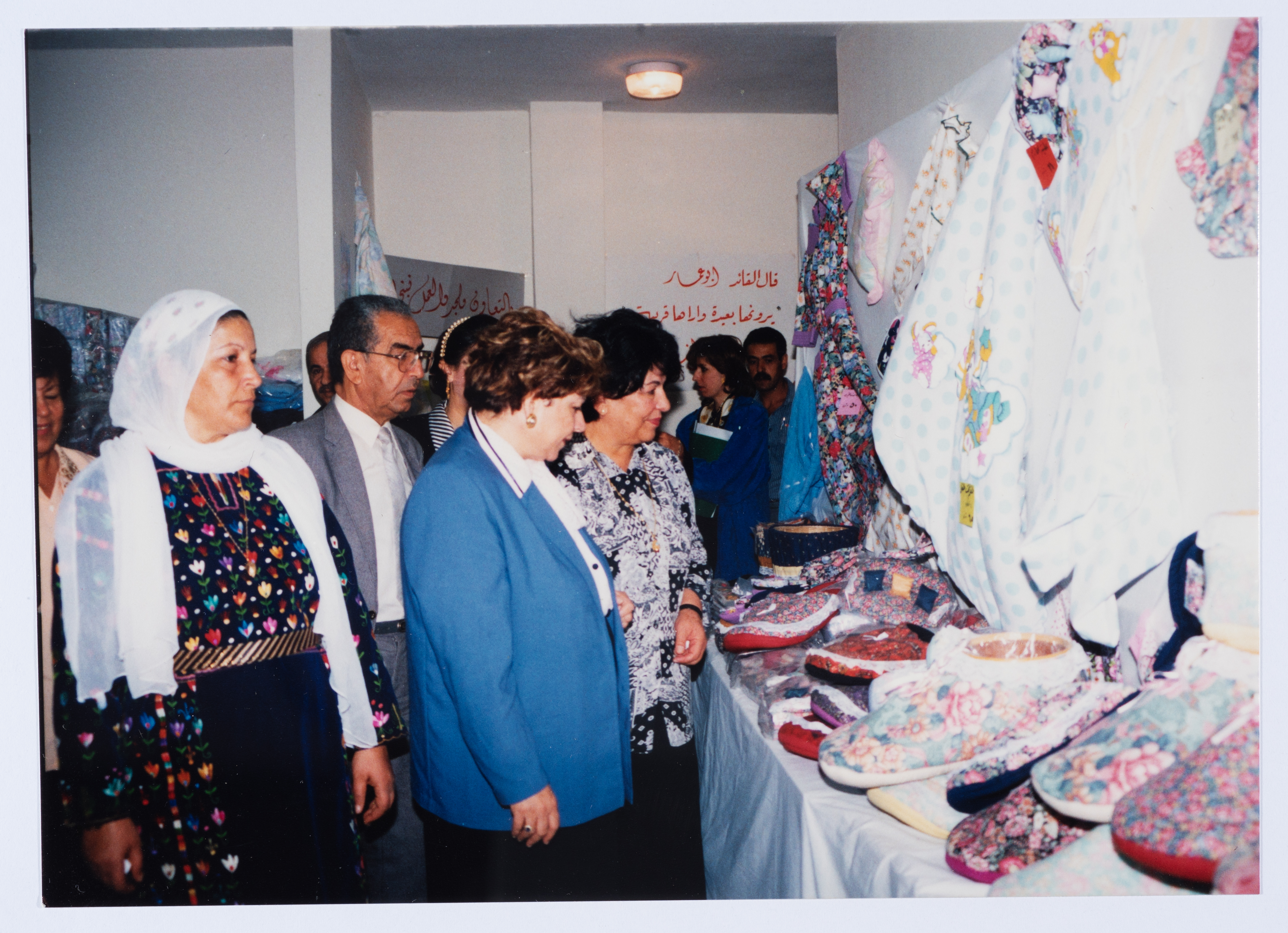 Mrs. Intisar al-Wazir "Um Jihad" on a visit to the Qalandiya Camp Women Handicraft Cooperative Society HQ in 1996