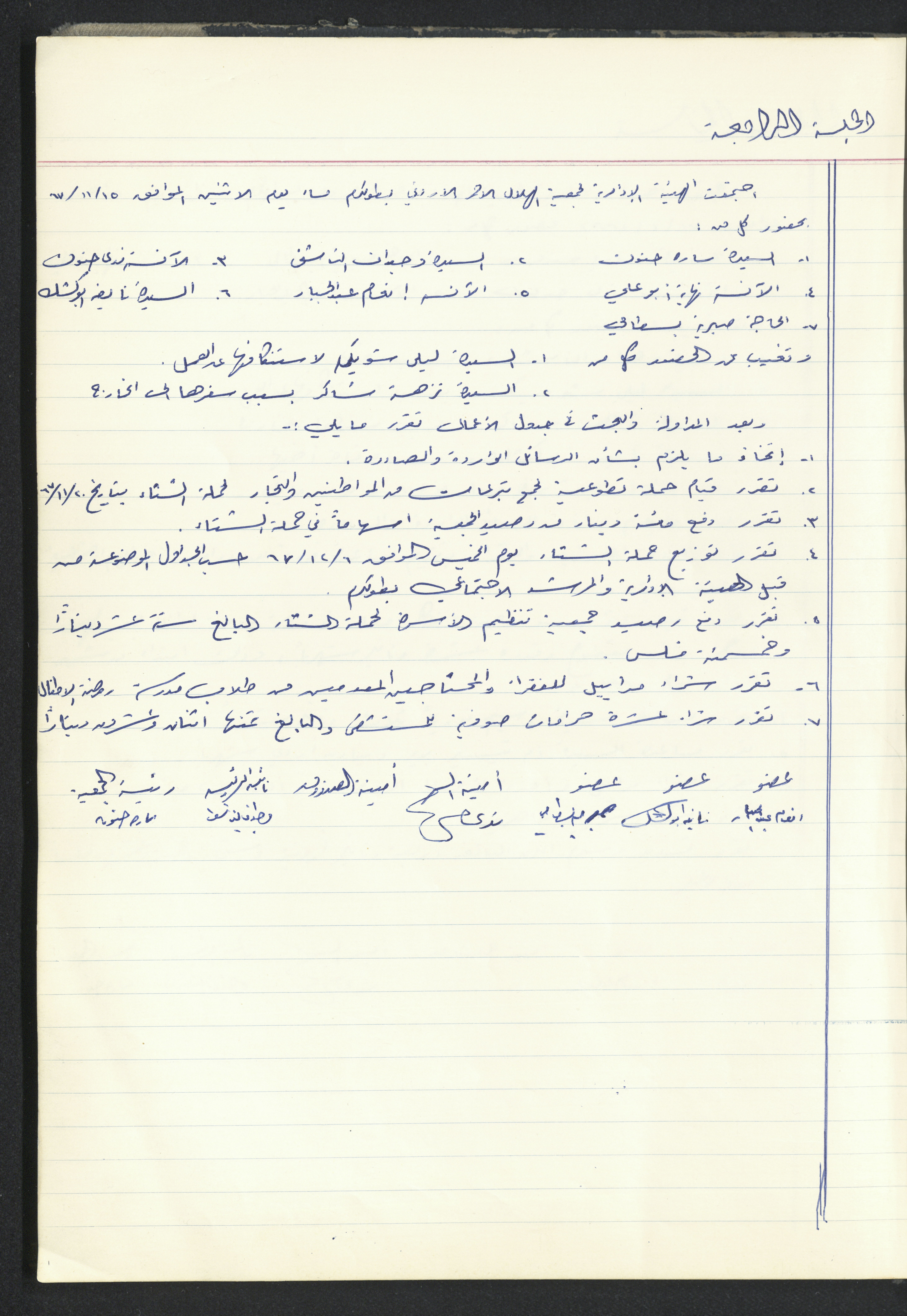 محضر جلسة من جلسات الهيئة الإدارية لجمعية الهلال الاحمر الاردن / طولكرم لعام 1967
