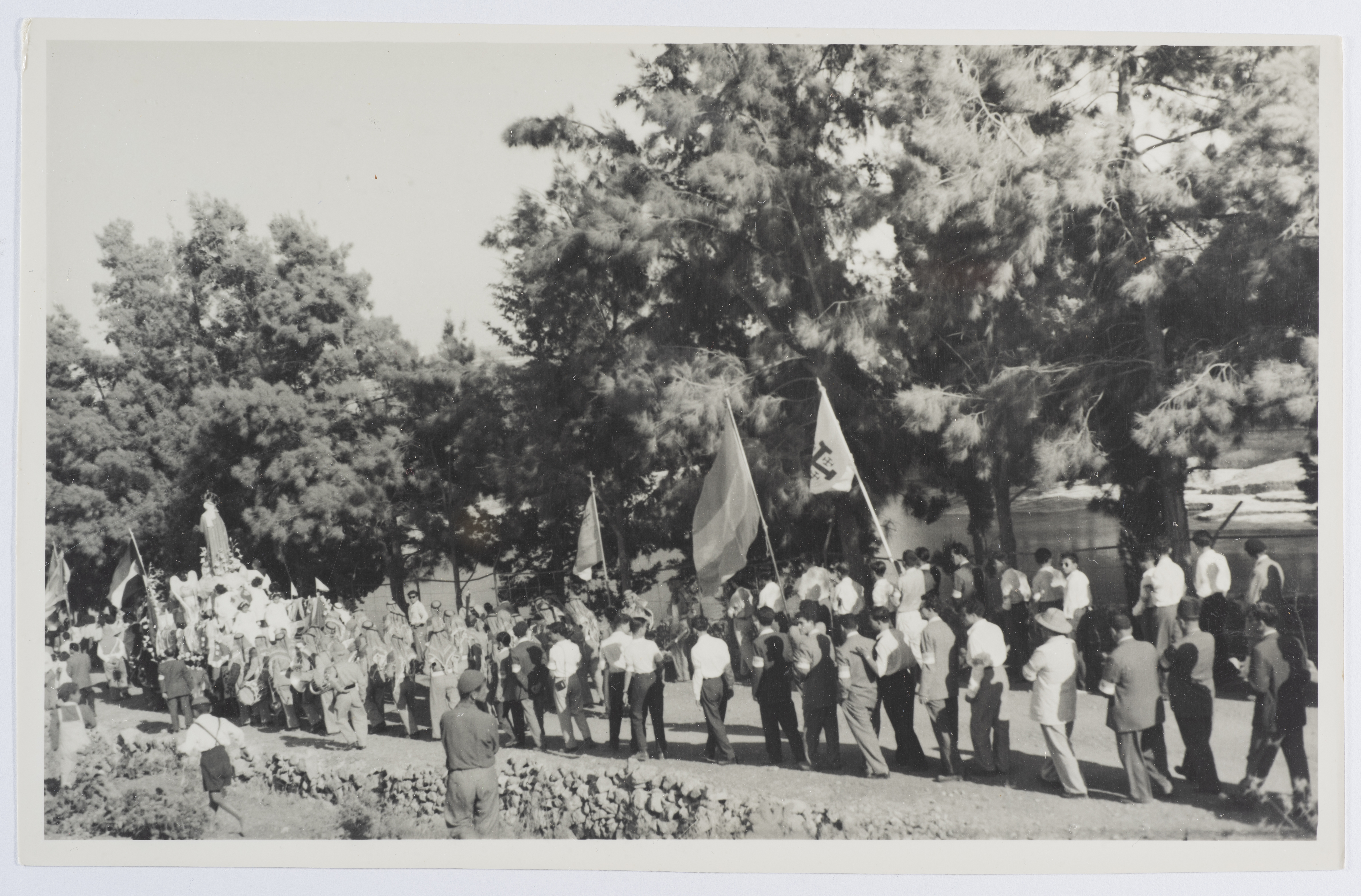 بطاقة بريدية يظهر فيها مسير بمناسبة دينية مسيحية، صدرت عن ستوديو سمعان السحار