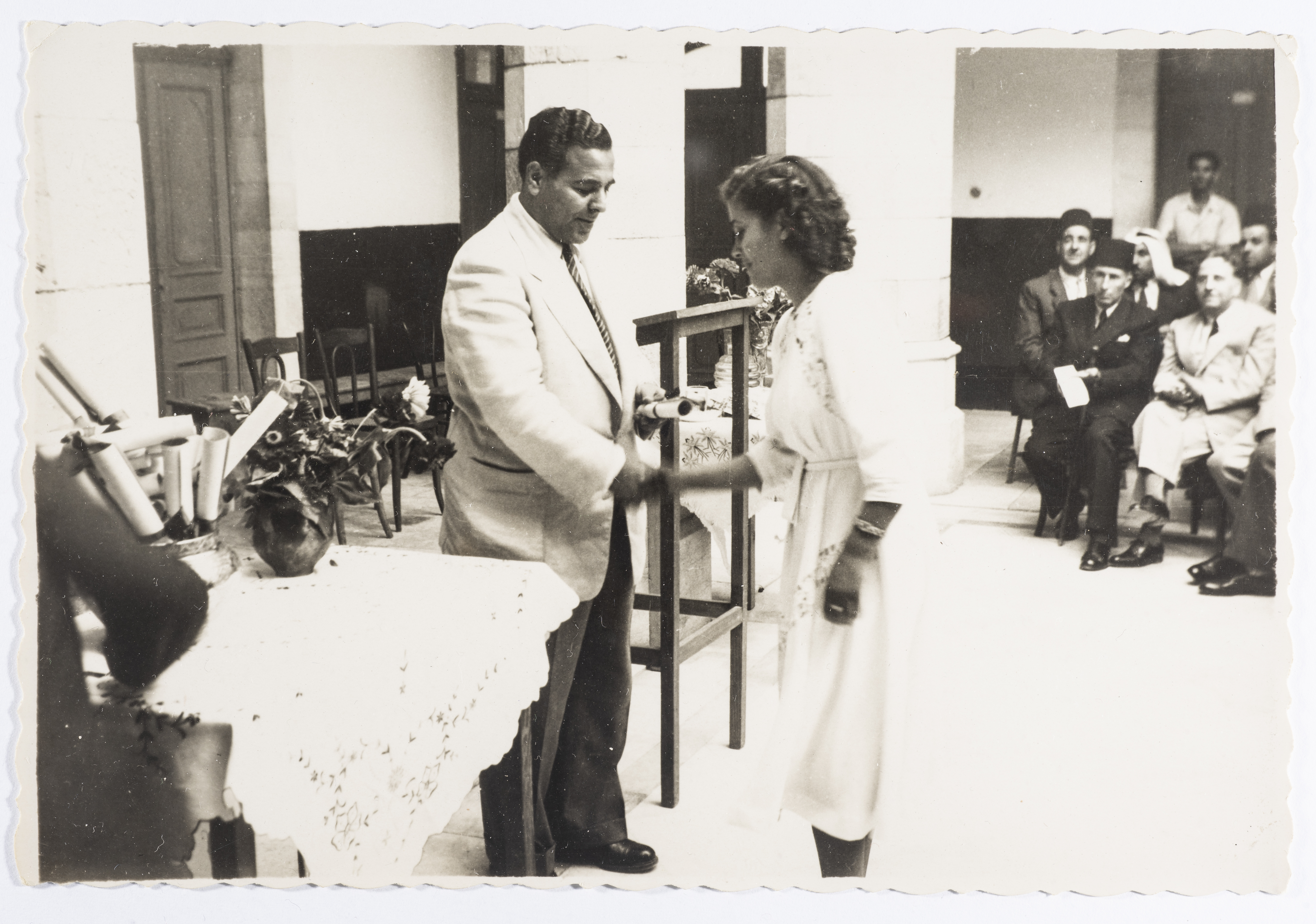 Issued by Saman Sahar Photo Studio, this black-and-white postcard features footage from one of the social occasions. No information attached regarding this occasion and when it was held.