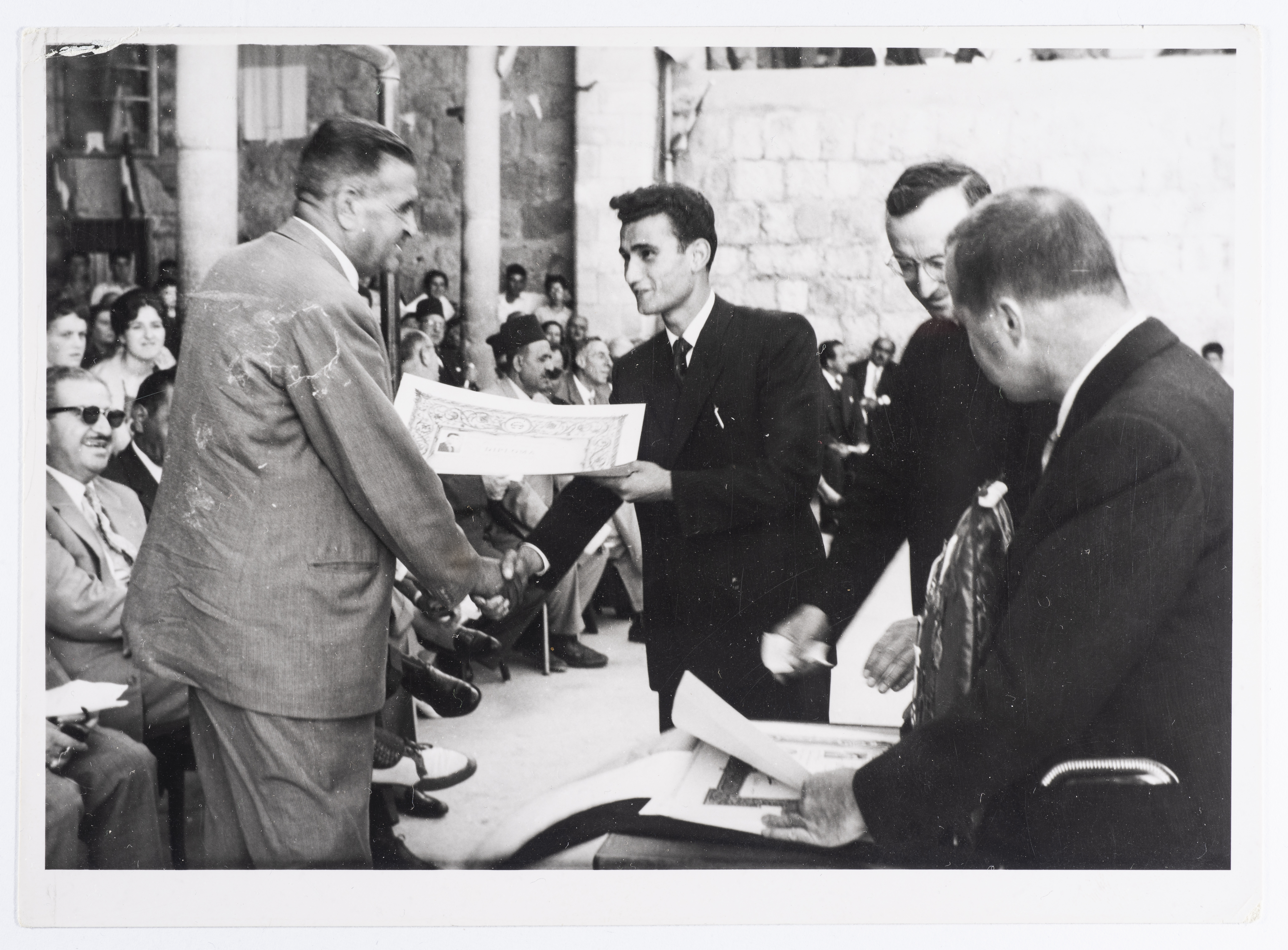 بطاقة بريدية تظهر فيها مناسبة رسمية في مدينة بيت لحم، صدرت عن ستوديو سمعان السحار