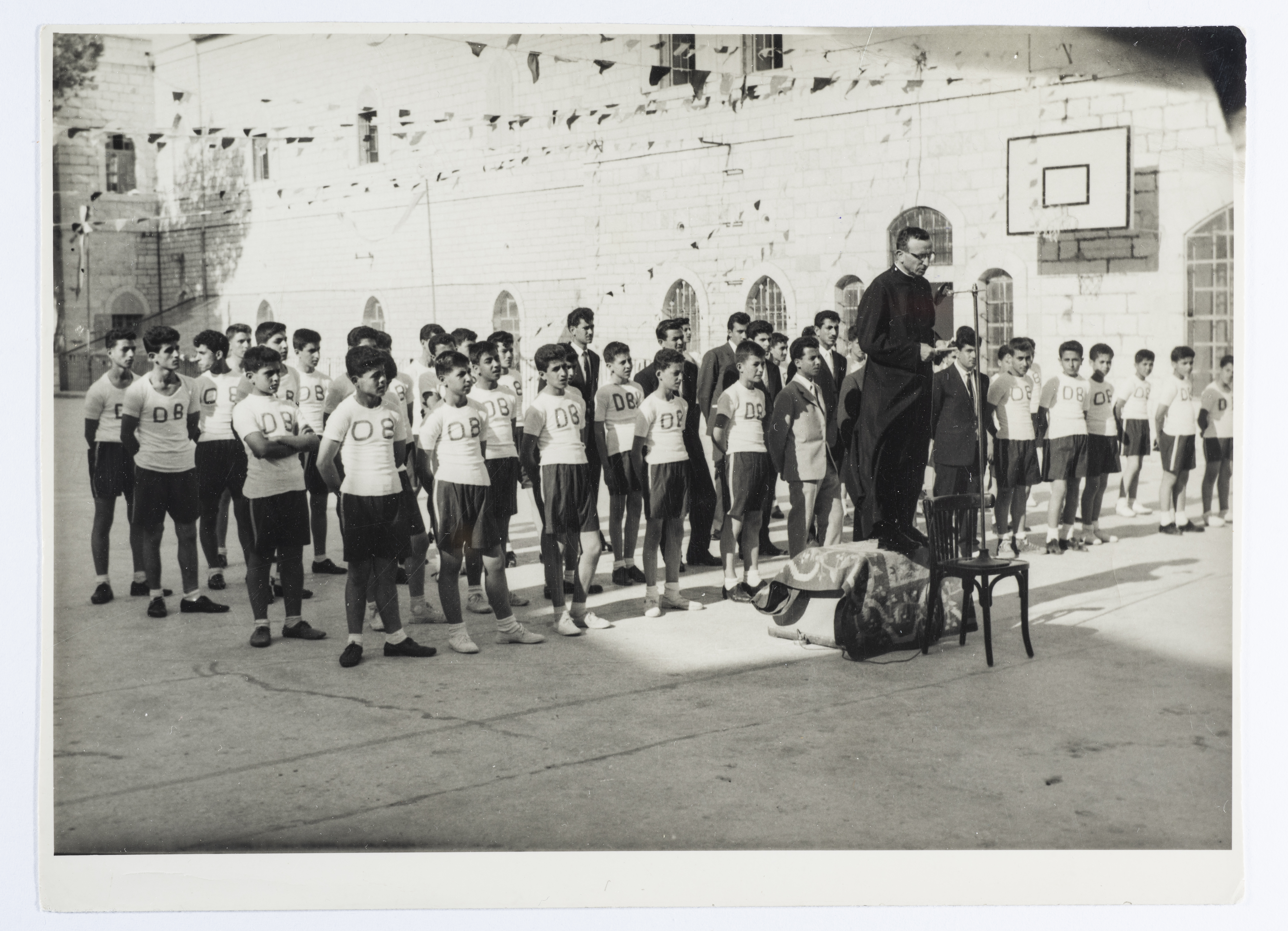 Issued by Saman Sahar Photo Studio, this black-and-white postcard features physical activity.