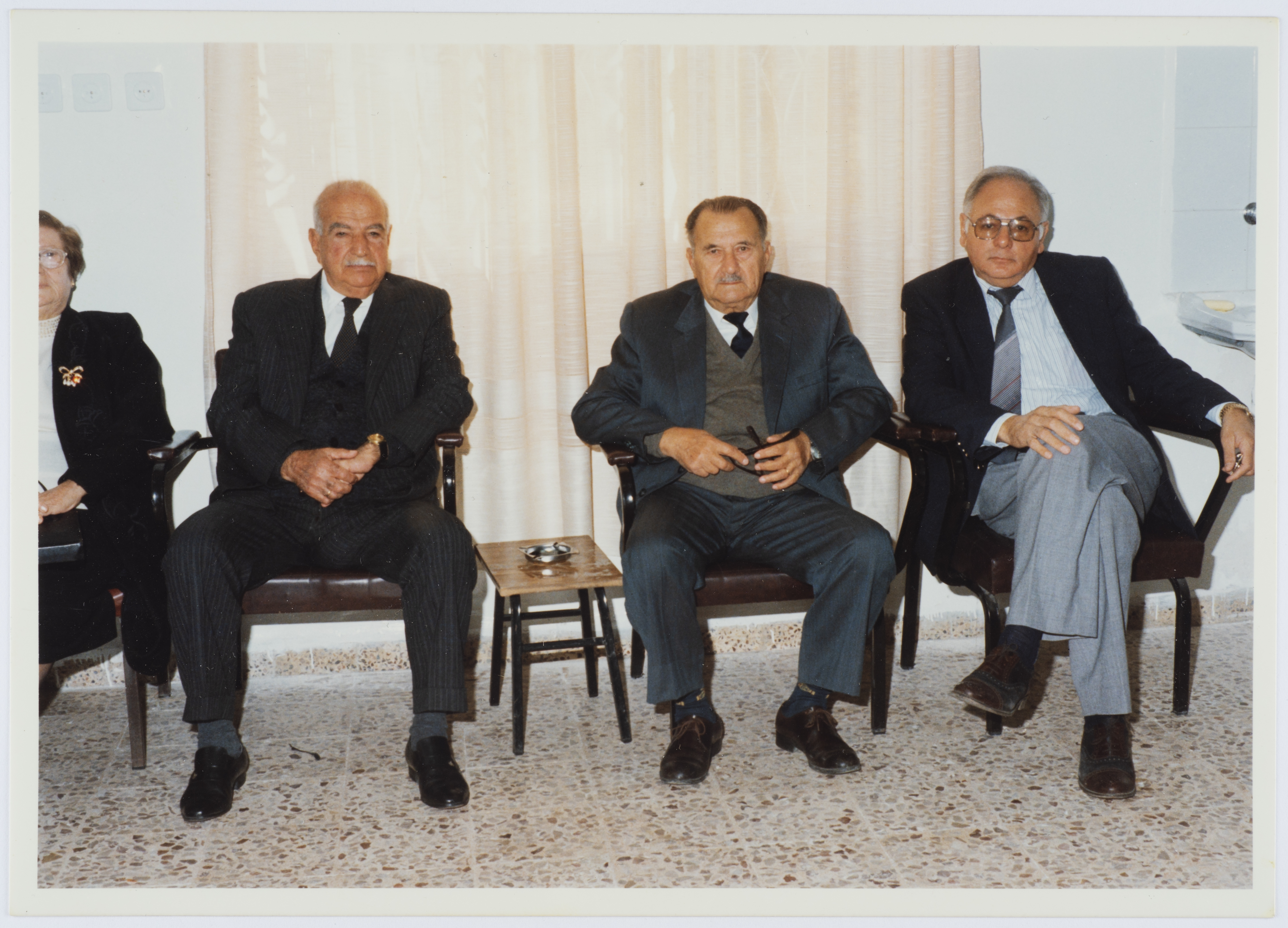 .صورة ملونة، يظهر فيها فتحي شديد وحلمي حنون رئيس بلدة طولكرم و فواز الظاهر رئيس الغرفة التجارية سابقا في التسعينات