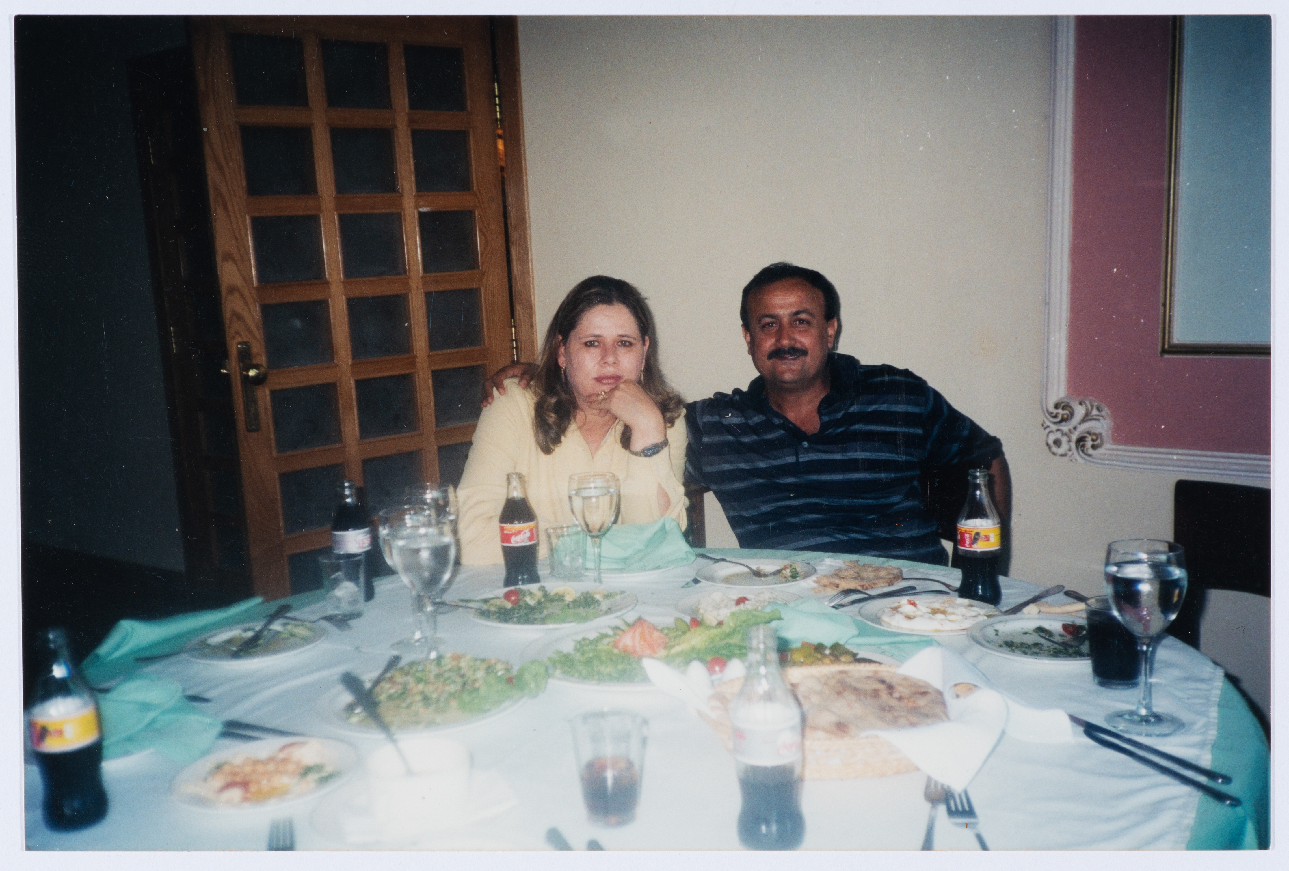 صورة ملونة لمروان وفدوى البرغوثي في غداء عائلي، في فندق الجراند بارك في رامالله.