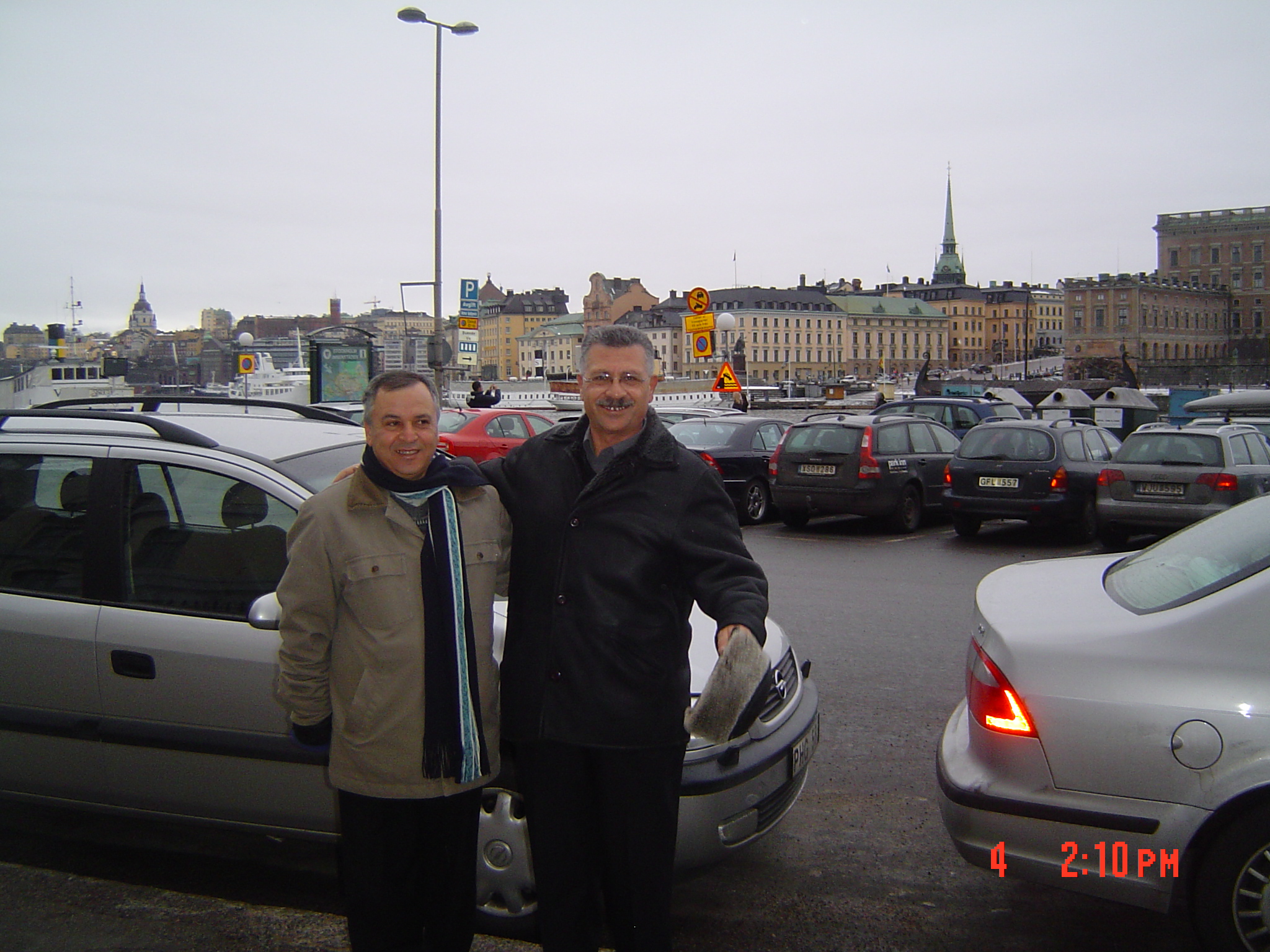 صورة ملونة يظهر بها أحمد مسلماني وشخص آخر معه خلال زيارة بريطانيا.