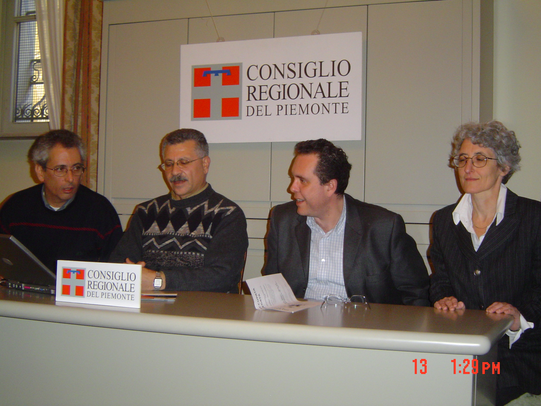 A colour photograph of Ahmad al-Maslamany's participation during a lecture; held by the Regional Council in Piedmont, Italy.