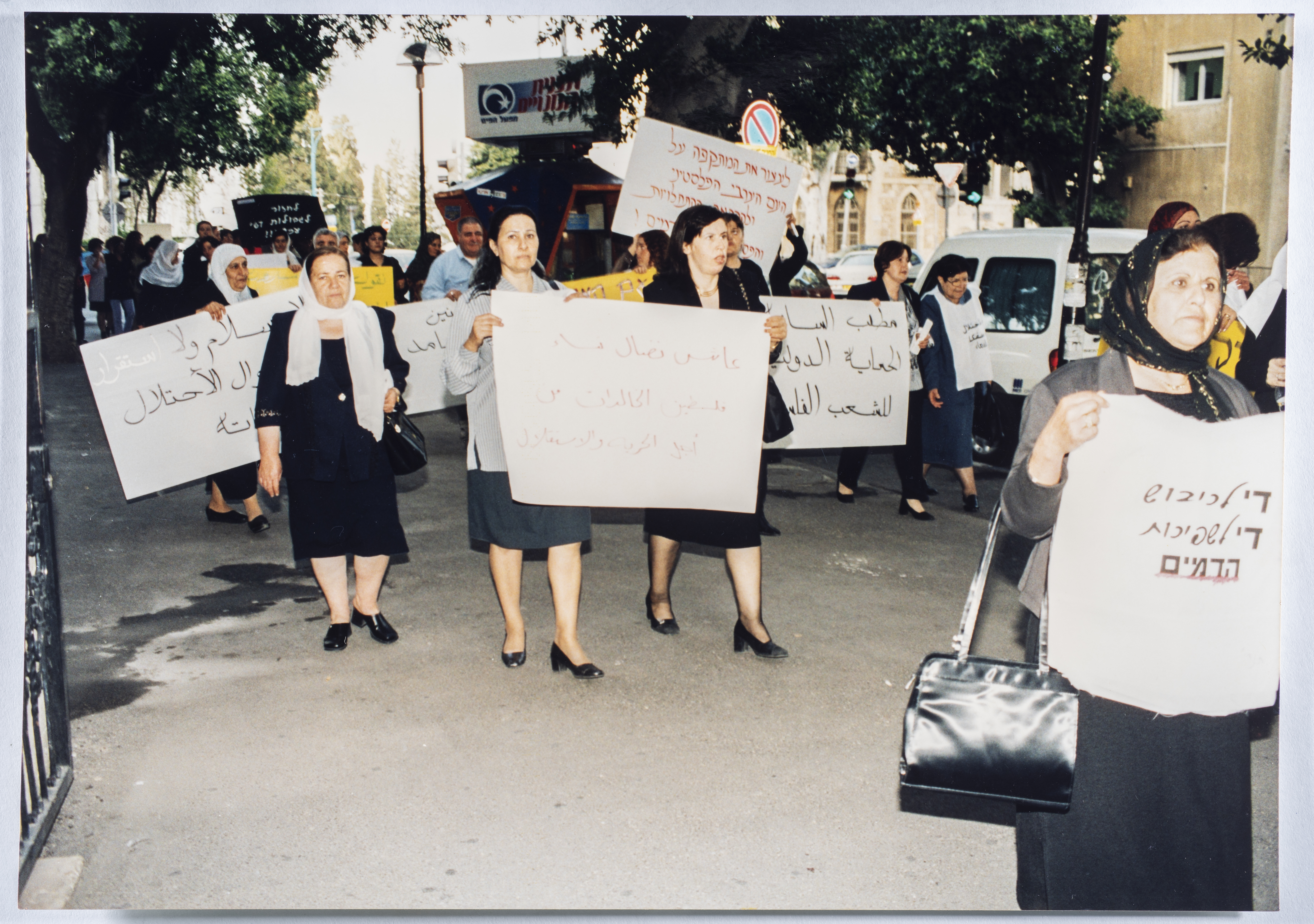 .صورة ملونة، تظهر فيها مجموعة من النساء في مظاهرة يوم المراة العالمي بمشاركة نساء من الجولان