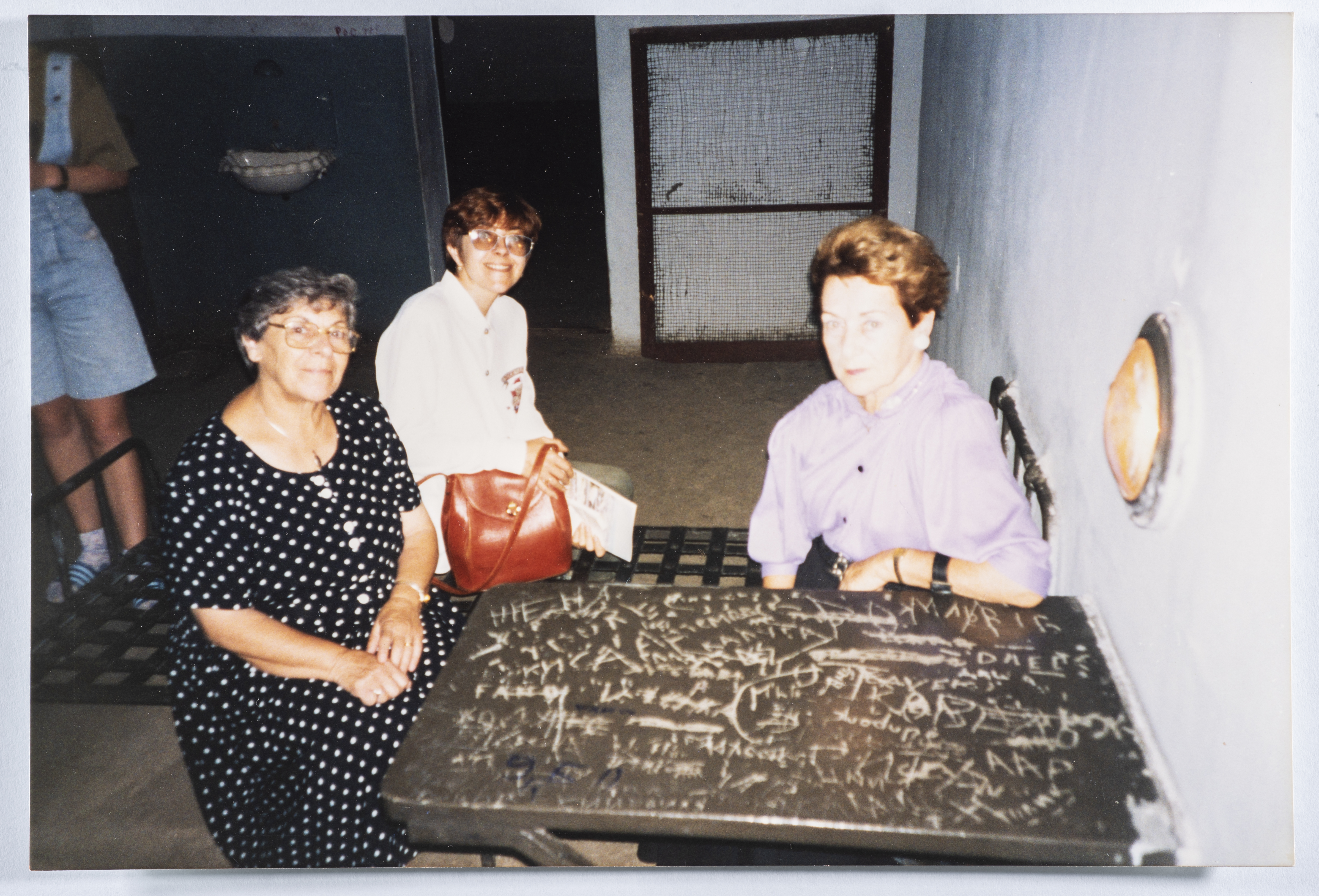 .صورة ملونة، تظهر فيها سميره خوري من اليمين ومايا زهافي رئيسة منظمة في أحد اللقاءات