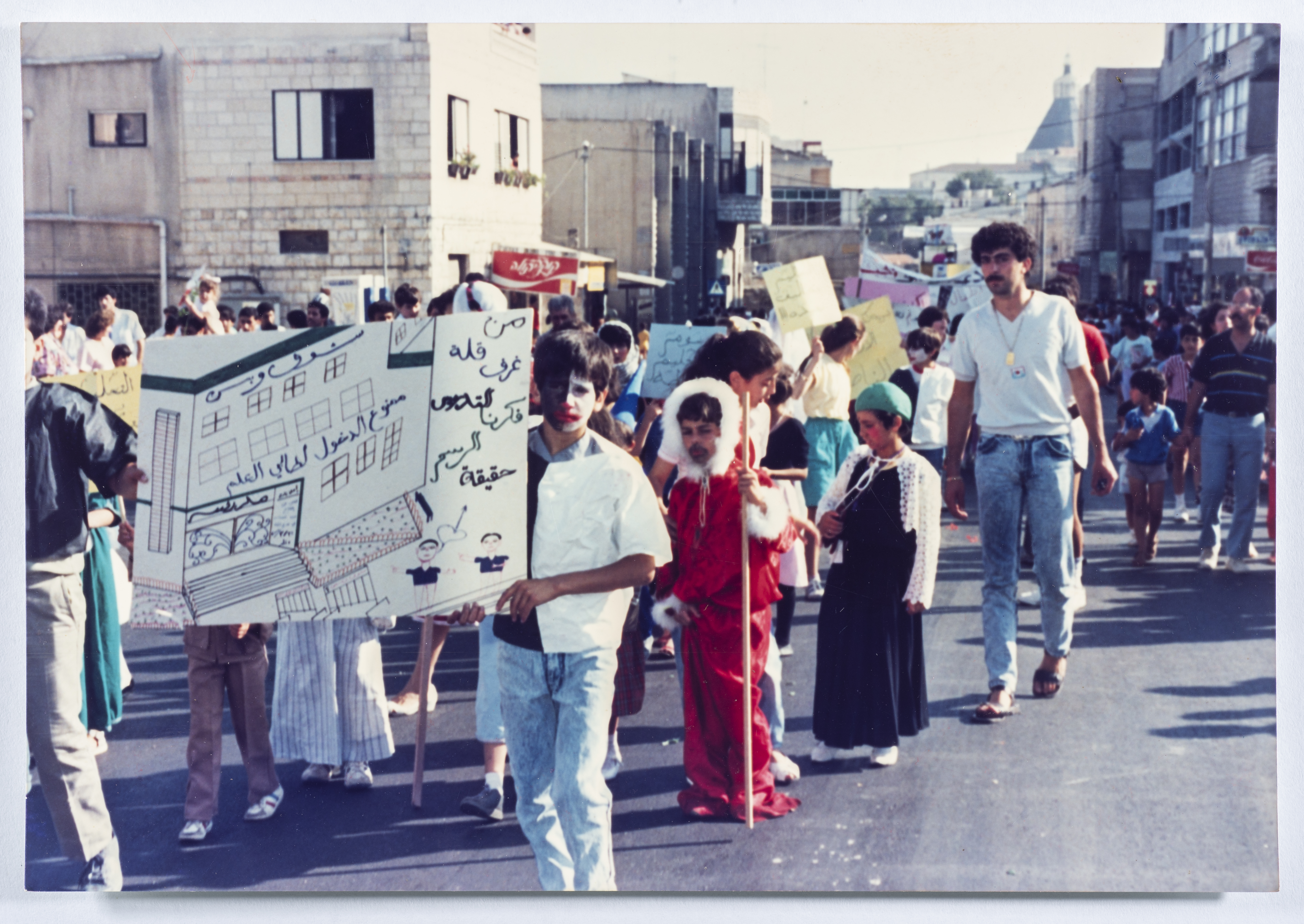 صورة ملونة، يظهر فيها مجموعة من الاطفال اثناء مهرجان الاطفال احتفالا بيوم الطفل العالمي في الناصرة