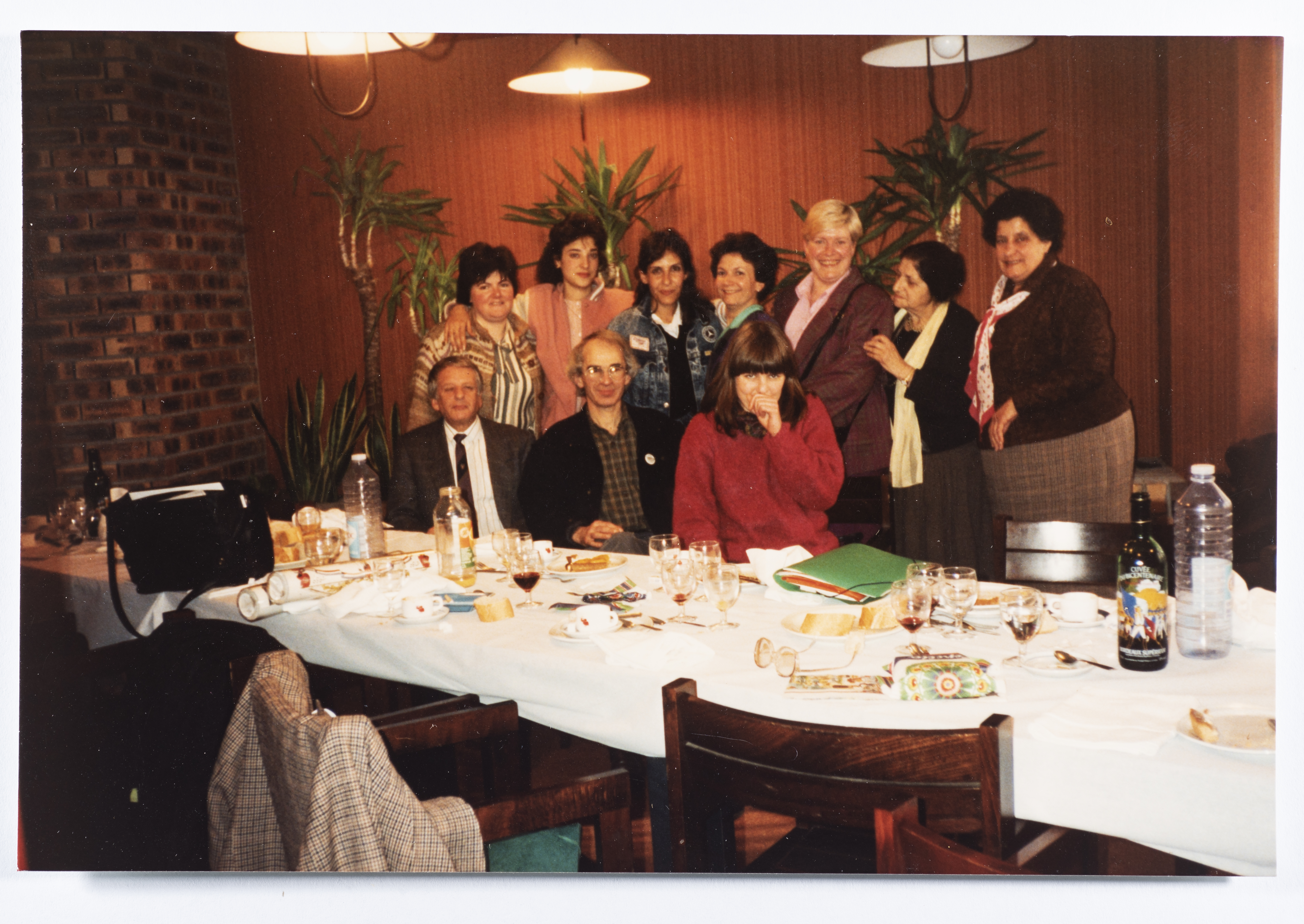 .صورة ملونة، يظهر فيها مجموعة من اليمين أوديت نمر و إيدا تندلر مسؤولة فرع القدس لحركة النساء الديمقراطيات