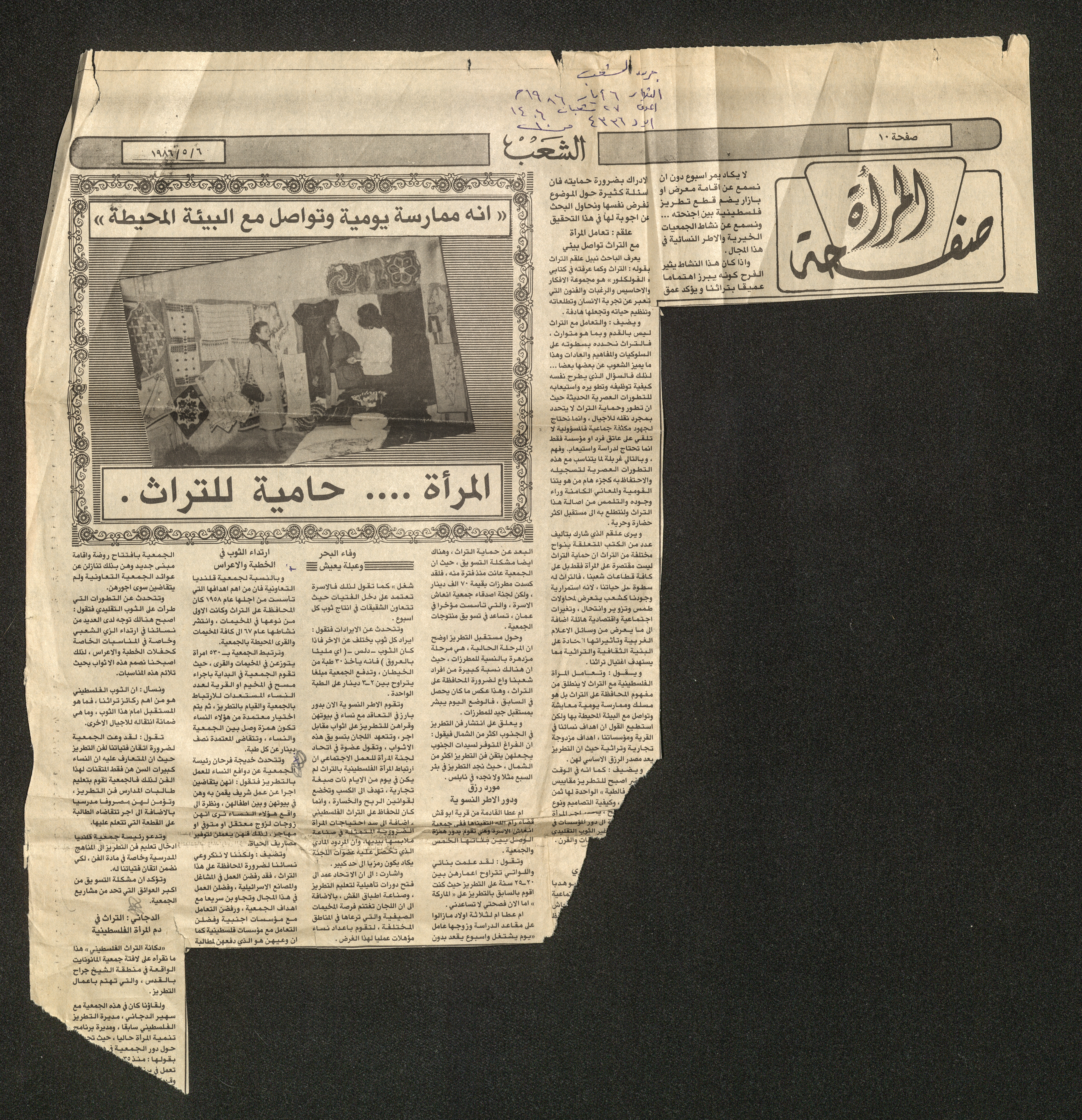 مادة مطبوعة باللغة العربية، وهي من جريدة الشعب، العدد 4336، صفحة 10، منشورة بتاريخ 6 أيار 1986، تتناول دور المرأة الفلسطينية والعمل النسوي في المخيم.