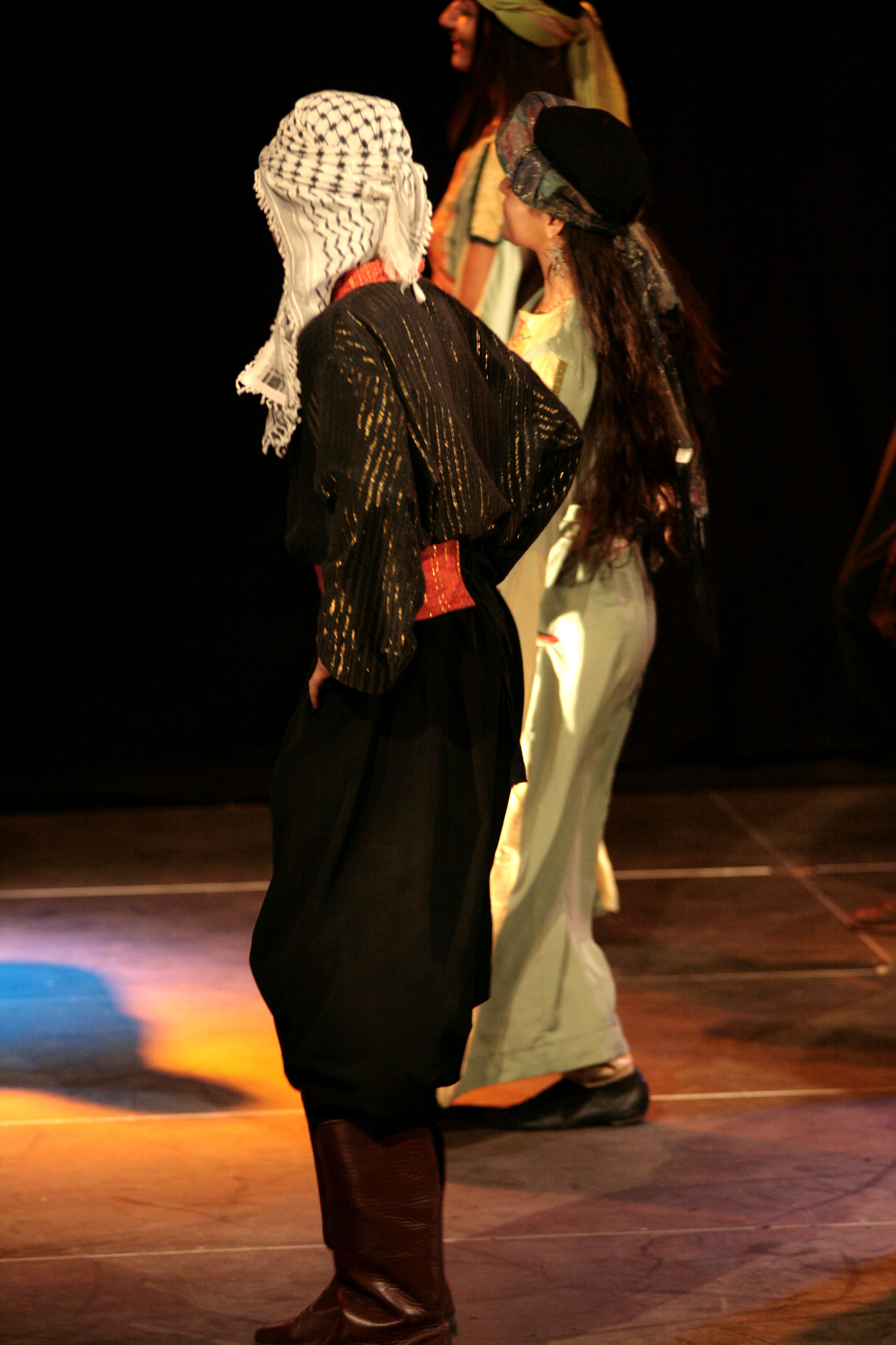 صورة ملونة ترصد ملمحاً من مشاركة فرقة الفنون الشعبية ضمن فعاليات مهرجان القدس 2008 بتنظيمٍ من مؤسسة يبوس في موقع قبور السلاطين الأثري.