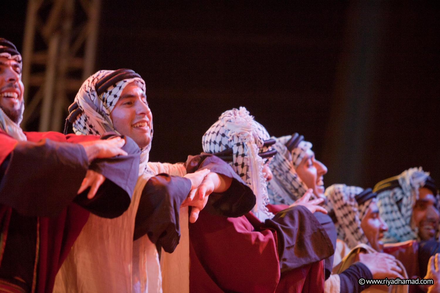 صورة ملونة ترصد لمحة من عرض فرقة الفنون الشعبية أثناء احتفالية جائزة ياسر عرفات للإنجاز عام 2011.