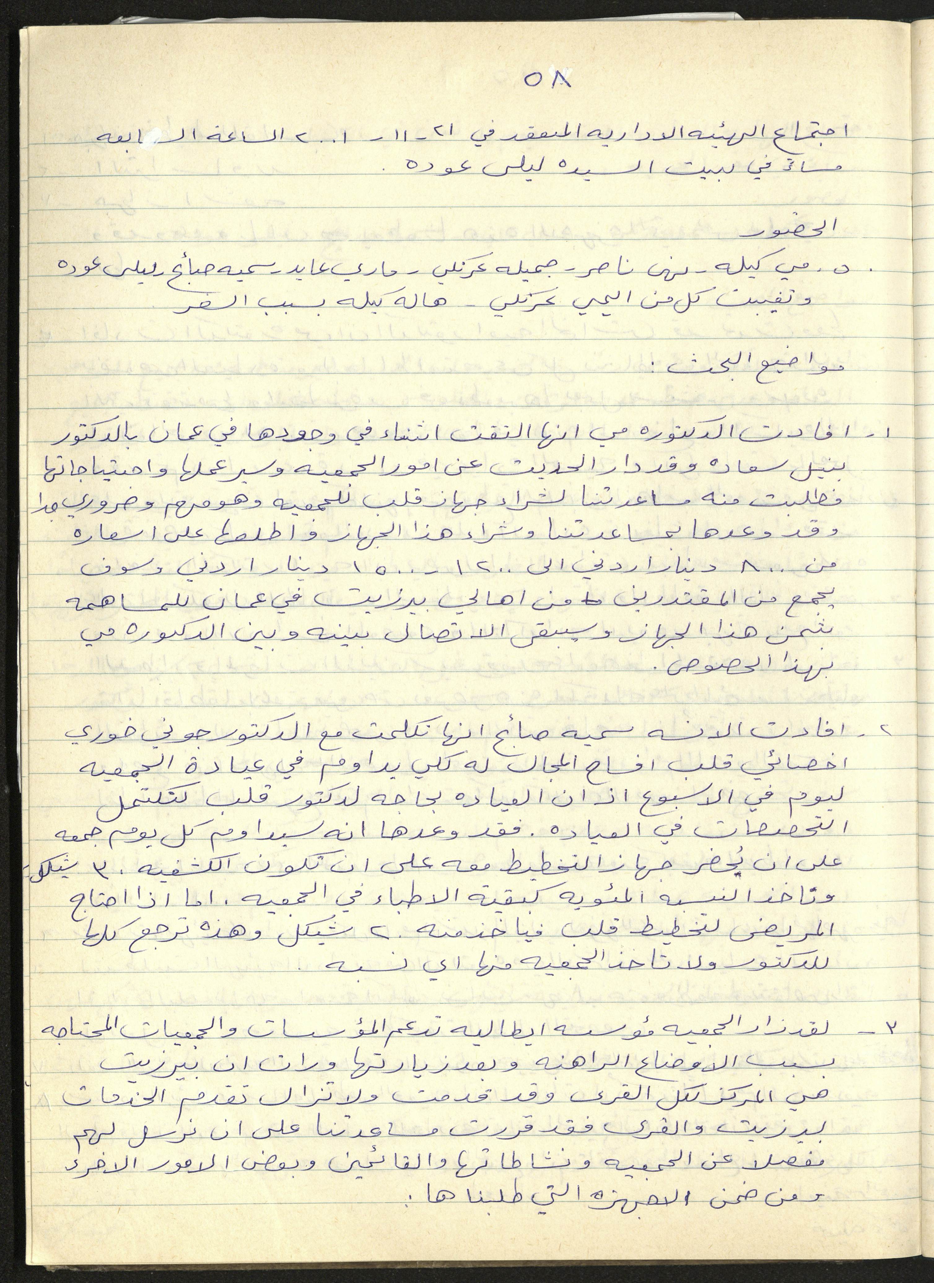 محضر اجتماع الهيئة الإدارية لجمعية سيدات بيرزيت رقم (58) لعام 2001