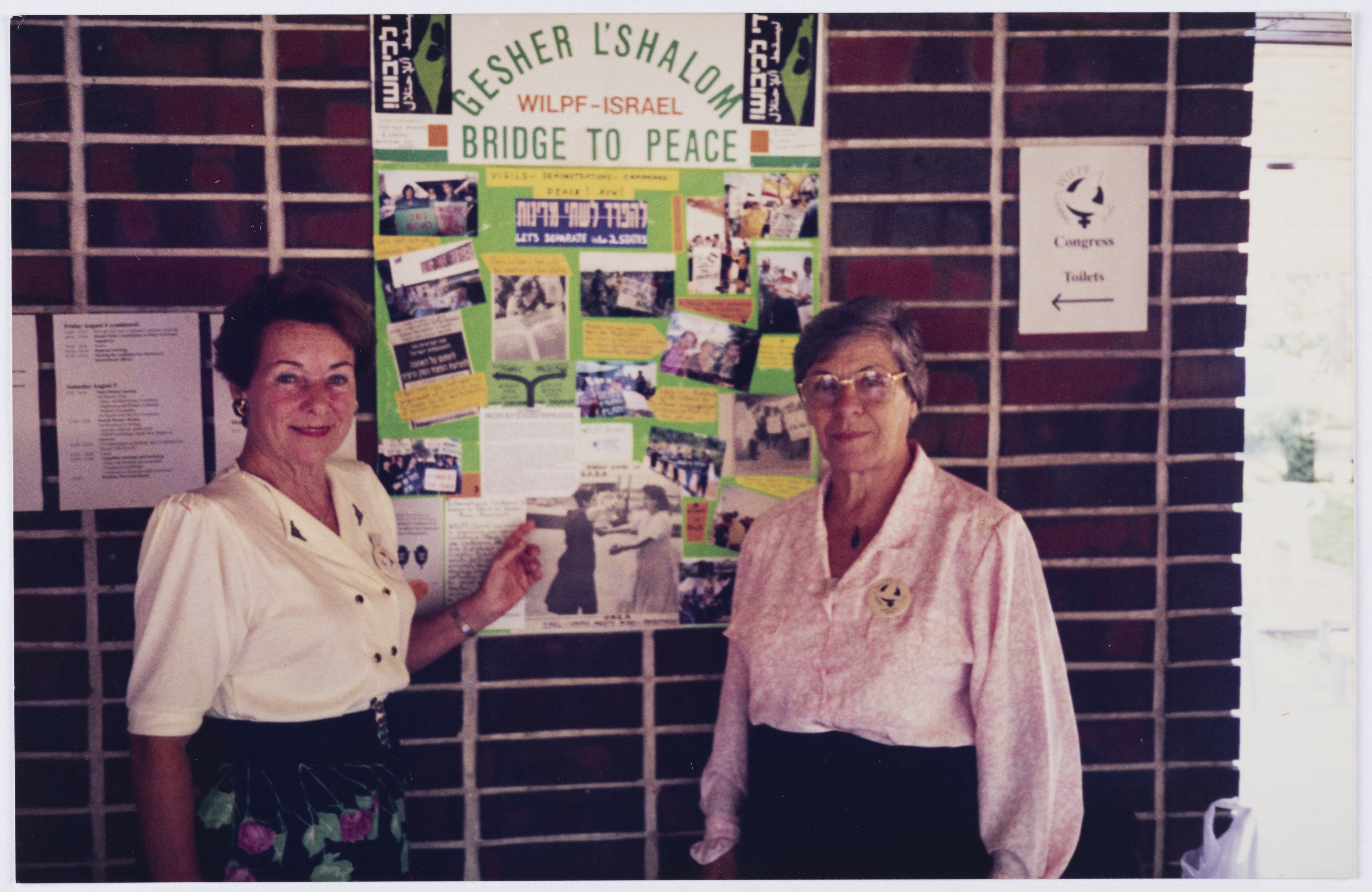 صورة ملونة، تظهر فيها مايا زهافي و سميره خوري وحنان عشراوي اثناء مؤتمر هلسكني عام 1995