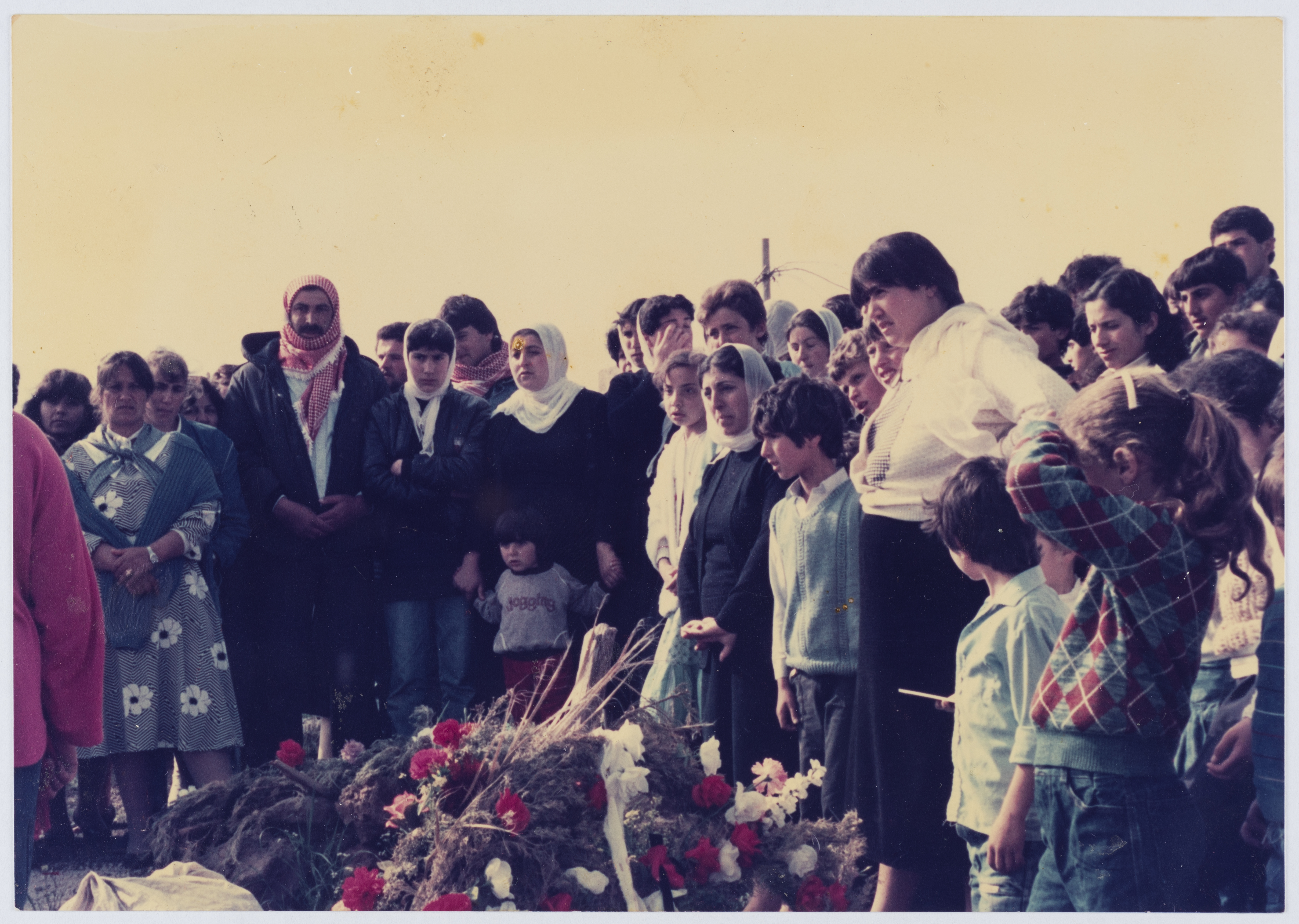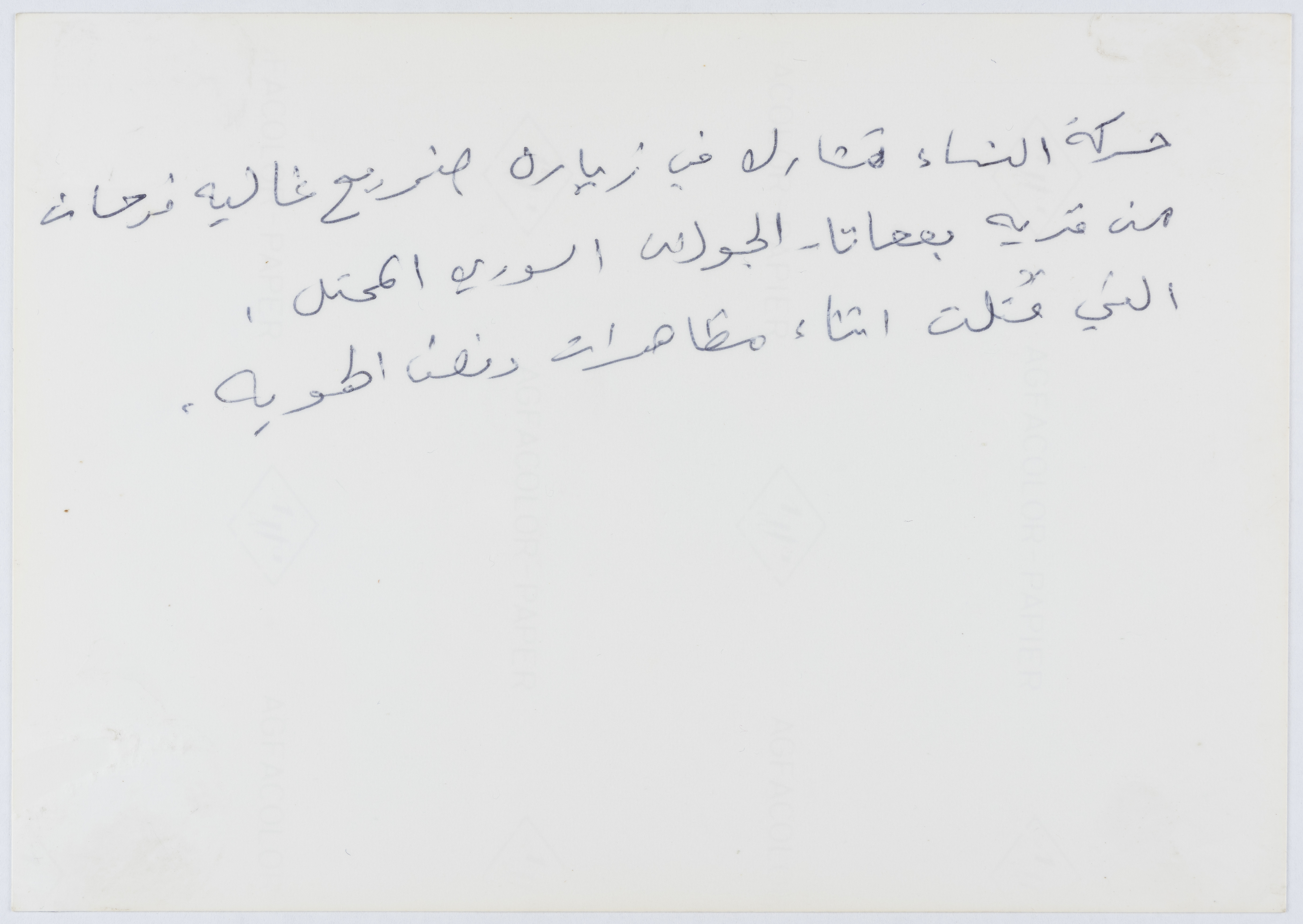 .صورة ملونة، تظهر فيها مجموعة من حركه النساء اثناء المشاركه في زيارة ضريح غاليه فرحان من قرية بعحاتار الجولان السوري المحتل التي قتلت اثناء مظاهرات رفض الهوية