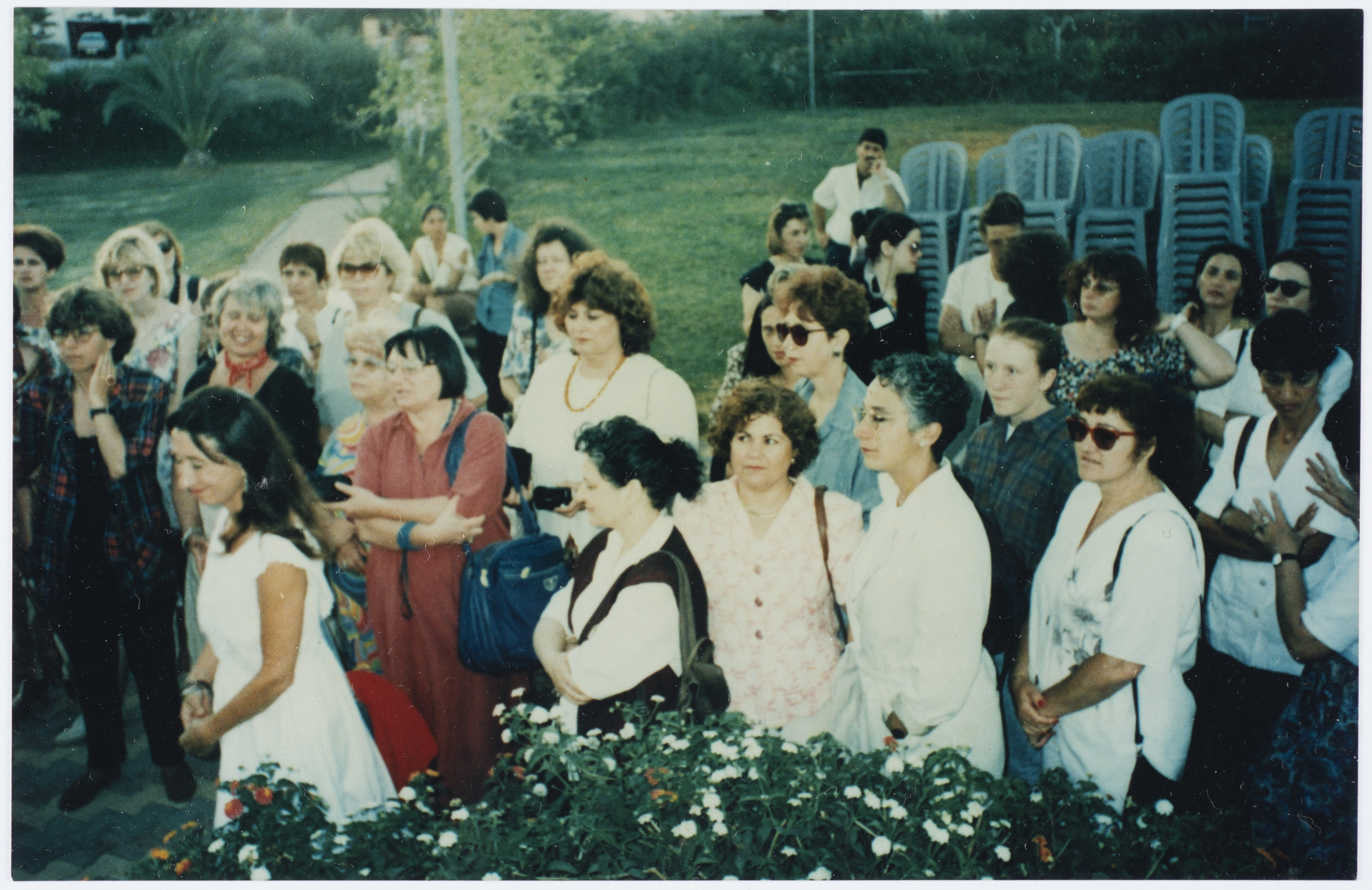 صورة ملونة، تظهر فيها يانا منتوف بلاند رئيسة جمعية نساء حوض البحر المتوسط ةلويزا مورجنتين عضوة البرلمان الاوروبي اثناء مؤتمر نساء حوض البحر المتوسط عام 1996