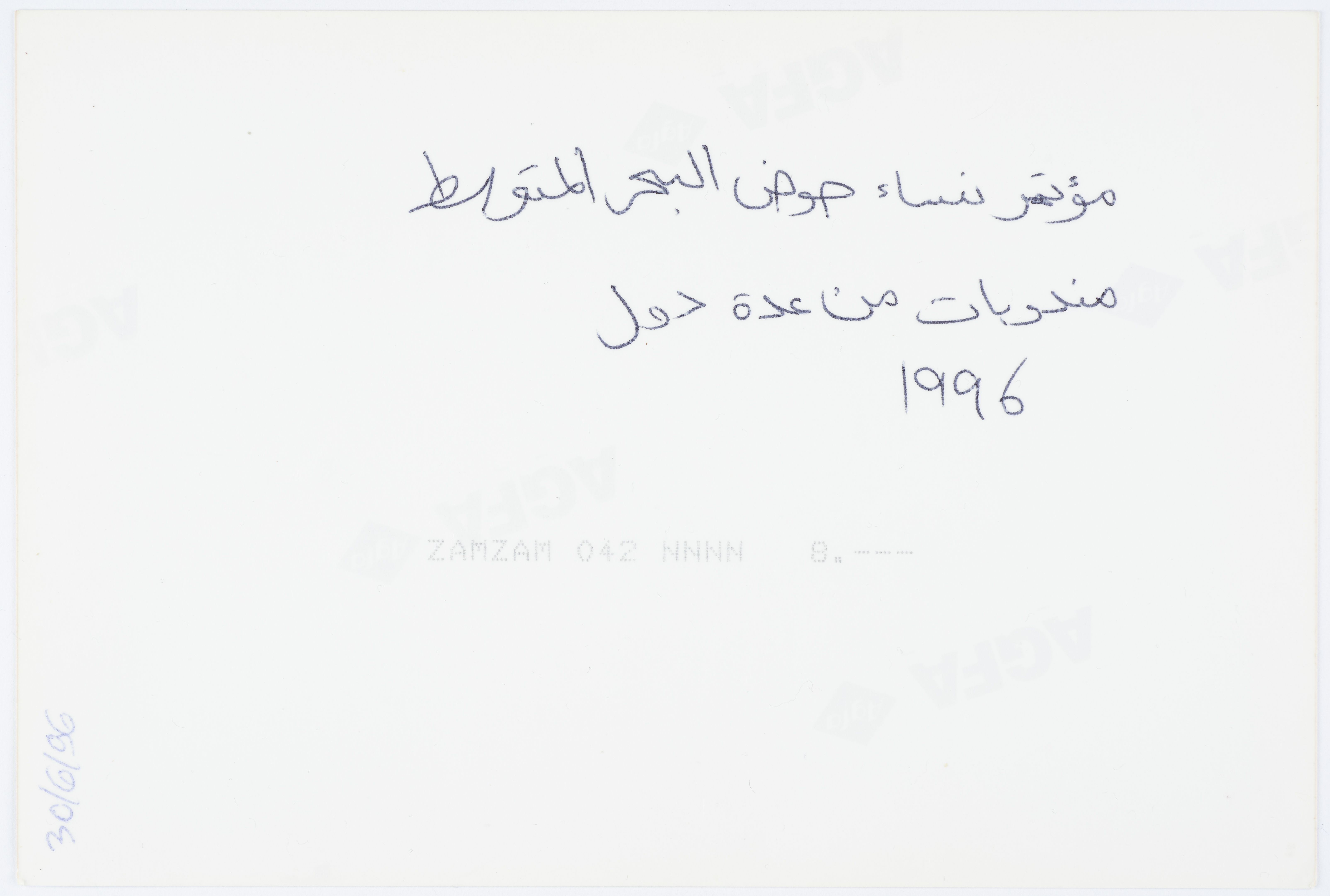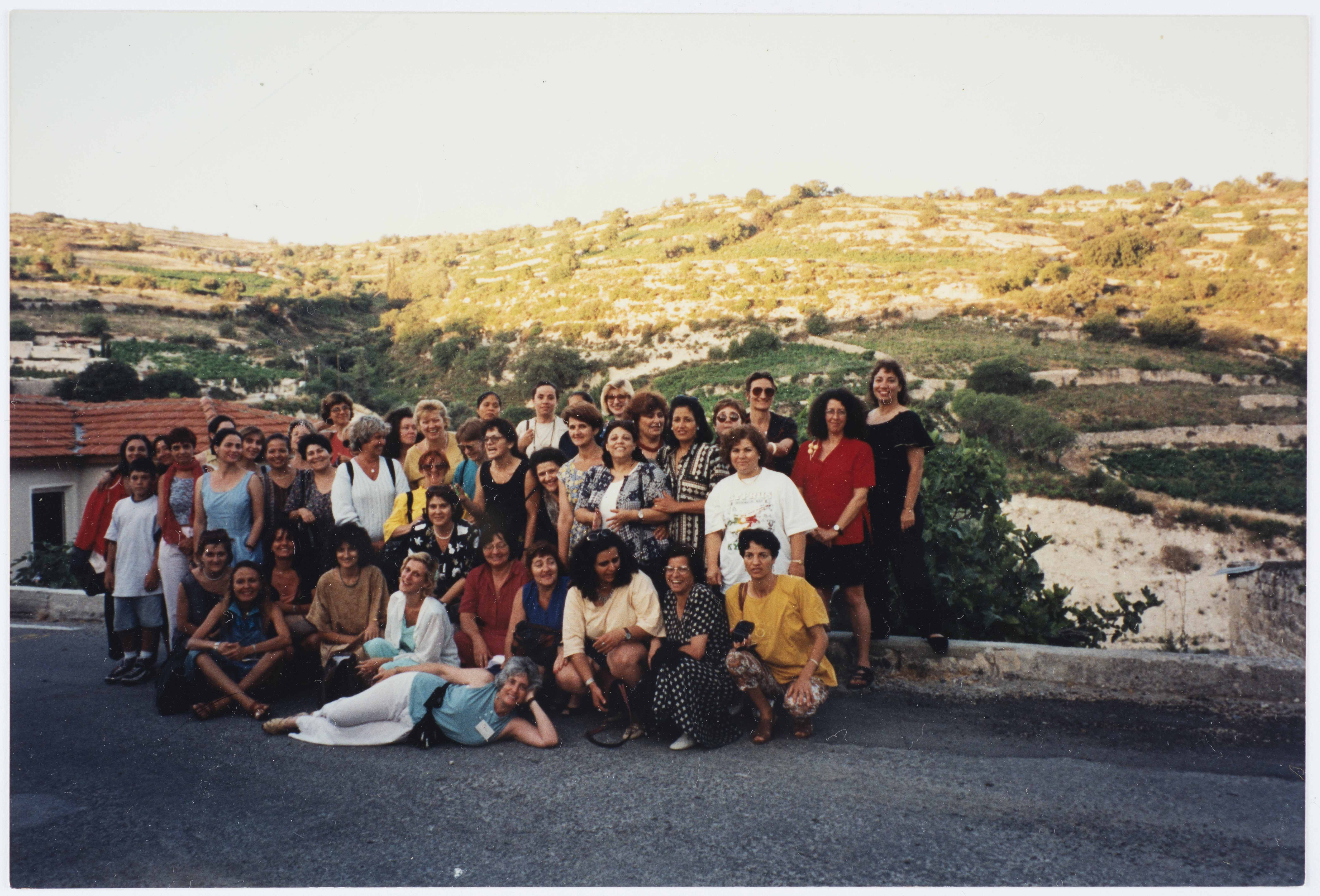 صورة ملونة، تظهر فيها مجموعة من النساء المندوبات من عدة دول اثناء مؤتمر نساء حوض البحر المتوسط عام 1996