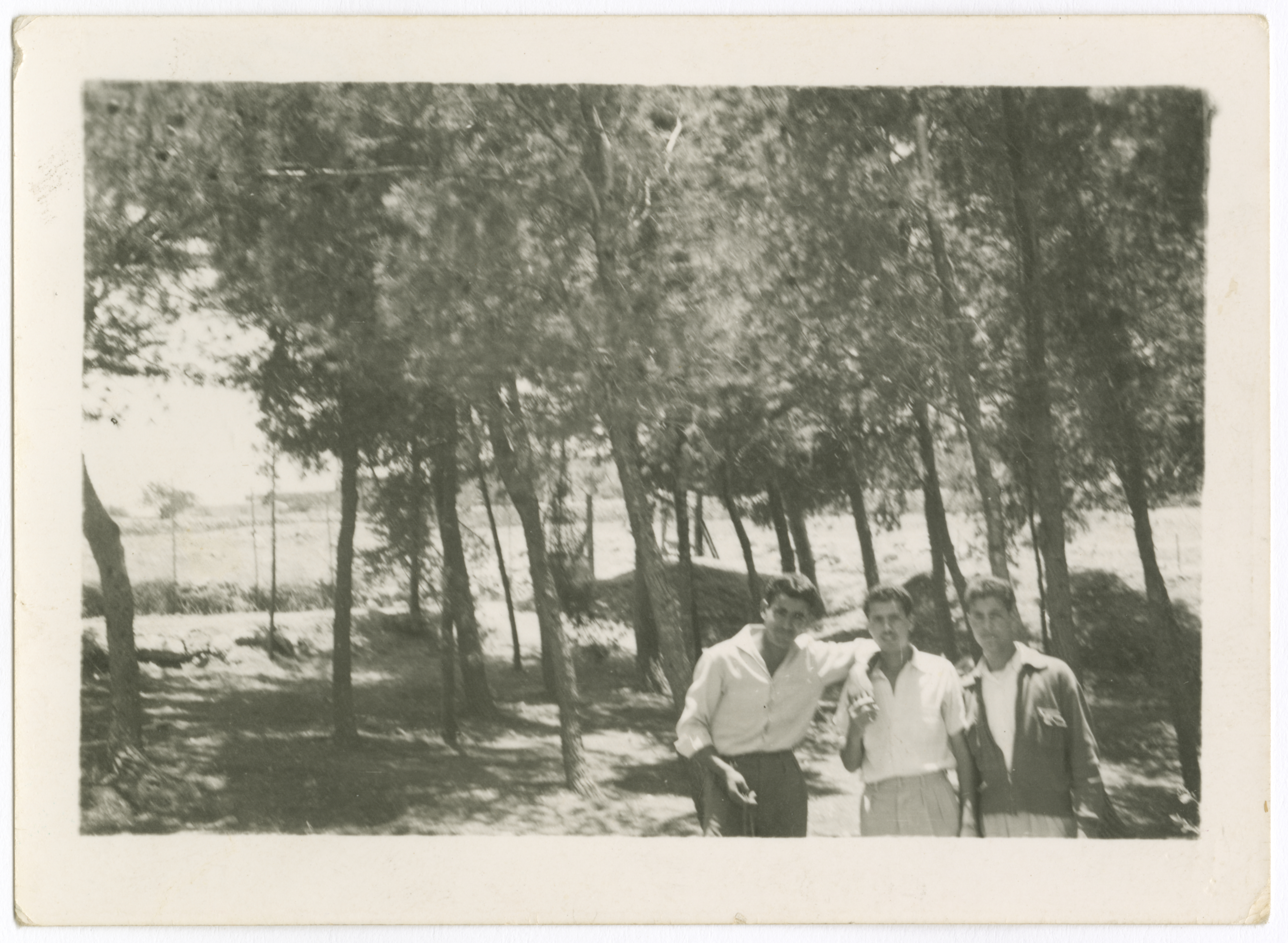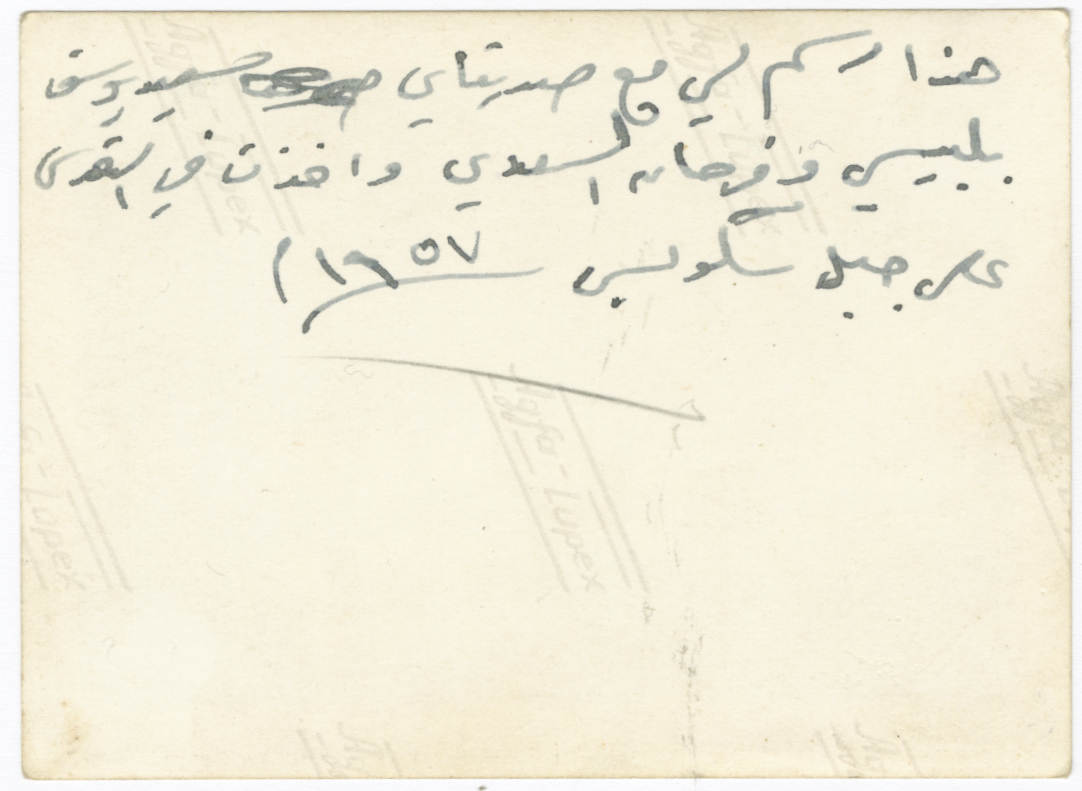 Taken on Mount Scopus in Jerusalem in 1957, this photograph shows Omar al-Qasim (first from the right) with his friends, Farhan al-Sa'di and Yousef Balbisi.