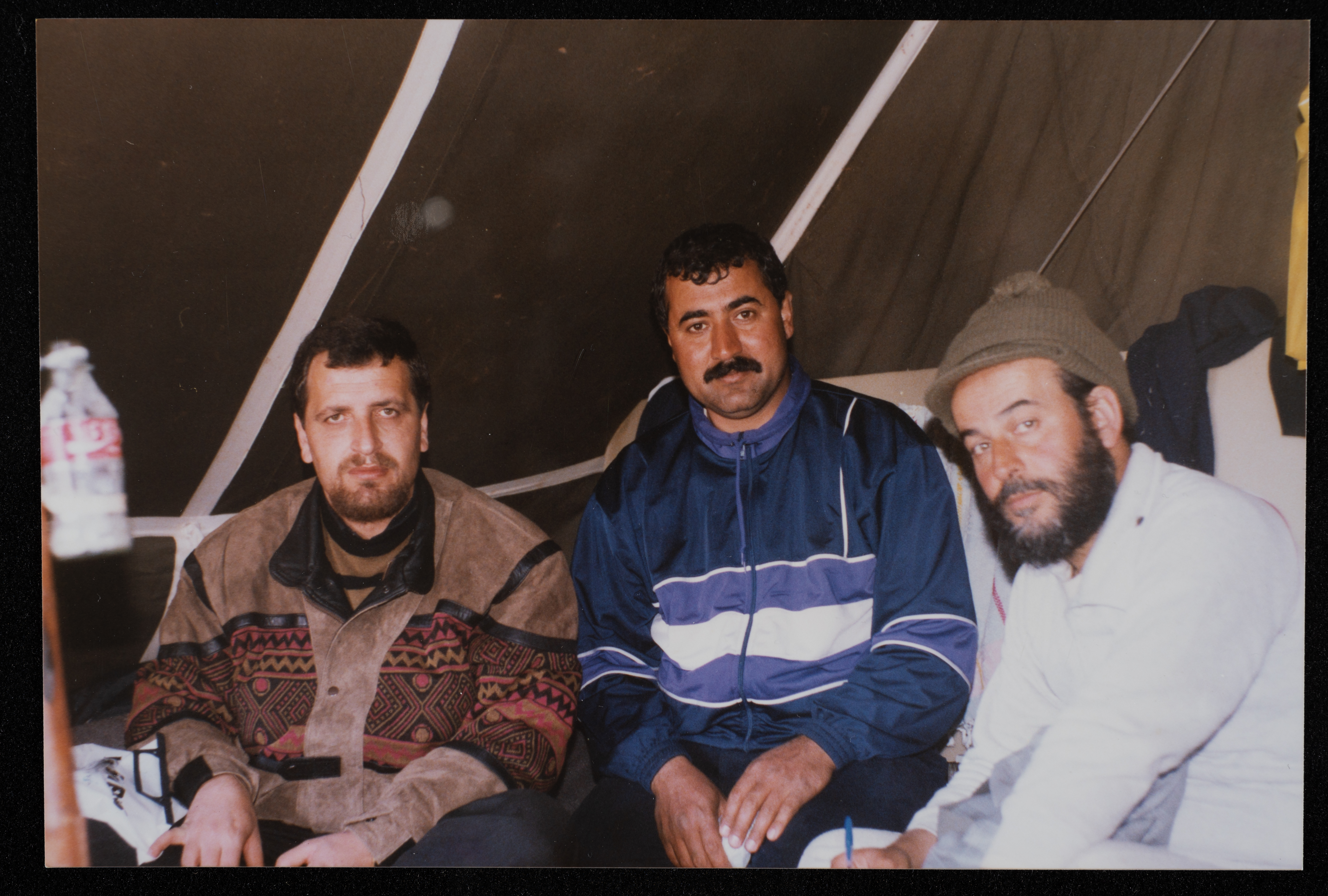 Taken in January 1993, this photograph shows three of the 416 Palestinians whom the Israeli Occupation Authorities deported to the Marj az-Zuhur town in South Lebanon on 17 December 1992.